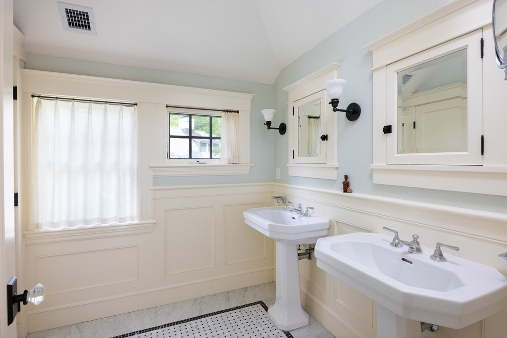 Great Brookline Village location by the high school, this home the was extensively renovated from 2014-15. It includes central AC, 4-5 bedrooms and 4 full bathrooms across two levels of living space, private front and back decks. An airy foyer opens to the spacious living room and a lovely family room with a fireplace. Open to the living room is a sun-filled dining room. At the back of the house is the renovated eat-in kitchen including high-end appliances and a bespoke walk-in pantry. A hallway leads to two privately located bedrooms, one with an en suite full bathroom, plus another full bathroom and a bedroom-sized laundry room/office with a custom built-in workstation. The upper level has a gorgeous landing that leads to the primary bedroom suite, including an amazing dressing room with two outfitted walk-in closets and a stylish primary bath and 4th bedroom with ensuite bath. One garage & 2 outdoor pkg spaces, 2 EV chargers, private storage in basement. Exclusive use of back yard.