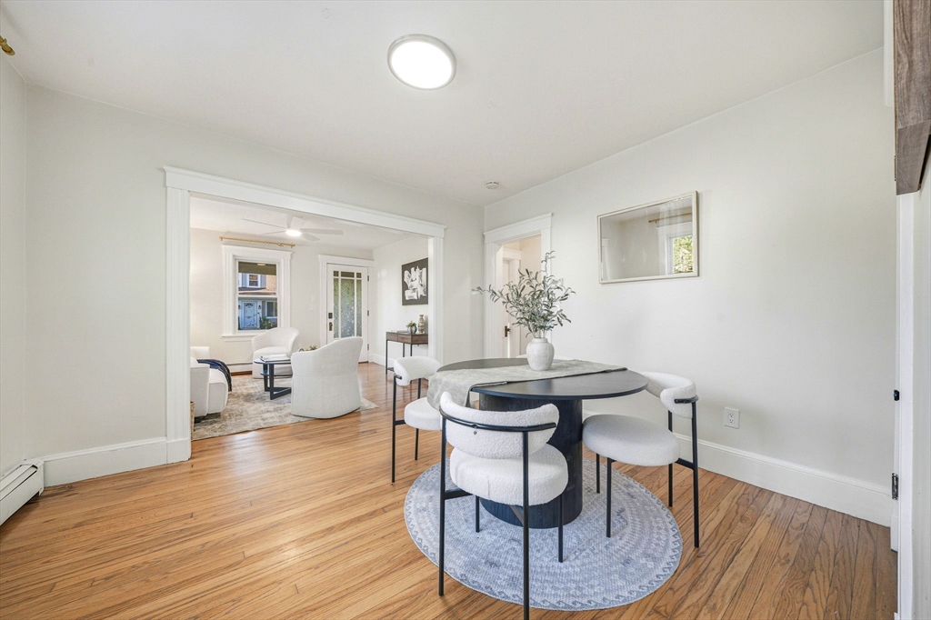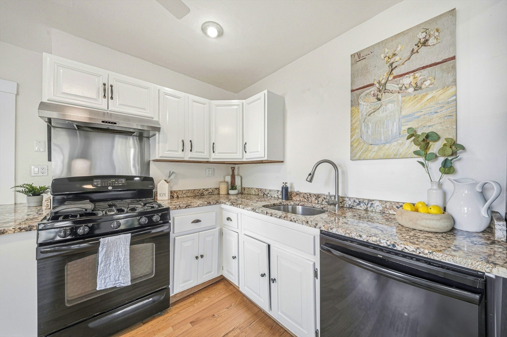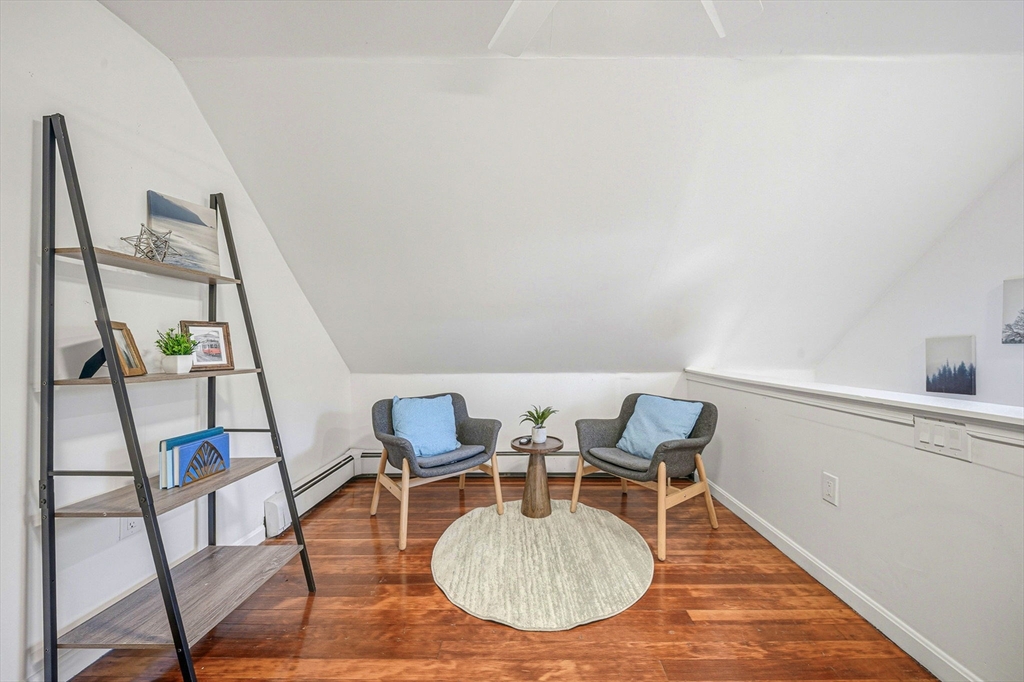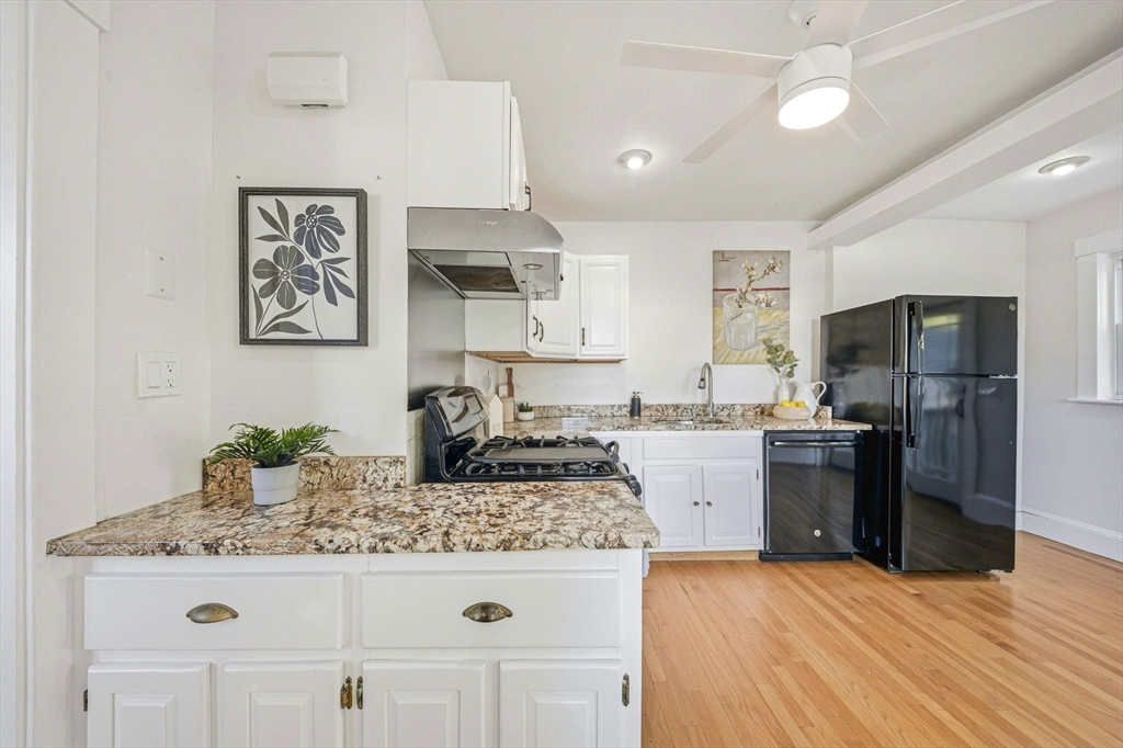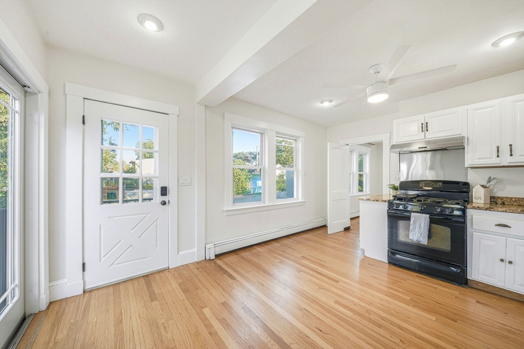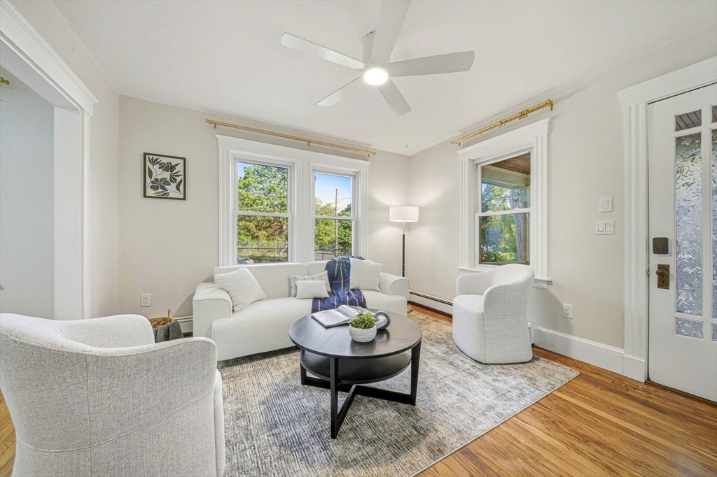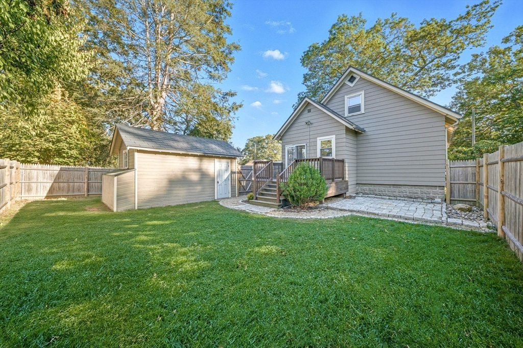 Magnificent 1361 SF single-family nestled in Randolph. Step onto the welcoming farmer’s porch and enter a bright, airy living room, and flowing into a formal dining room with a built-in hutch. The modern kitchen boasts granite countertops and a slider that opens to a rear deck, perfect for relaxing or entertaining. On the first floor, find a bedroom with a cozy office nook and a beautifully renovated full tile bath. Upstairs, you'll find a second bedroom, a second full bath, and a flexible loft space, ideal as a third bedroom, lounge, or creative retreat. The property also offers a 1-car detached garage, stone patio, a new private fence, gleaming hardwood floors, fresh interior paint, replacement windows with treatments, and major systems updates, including an aluminum roof and a Navien tankless hot water & anti-scale water filtration system. Conveniently located near shops, restaurants, and major highways.