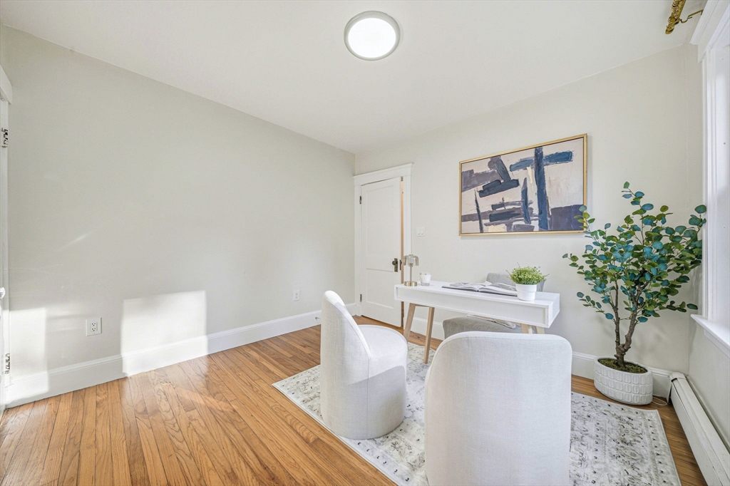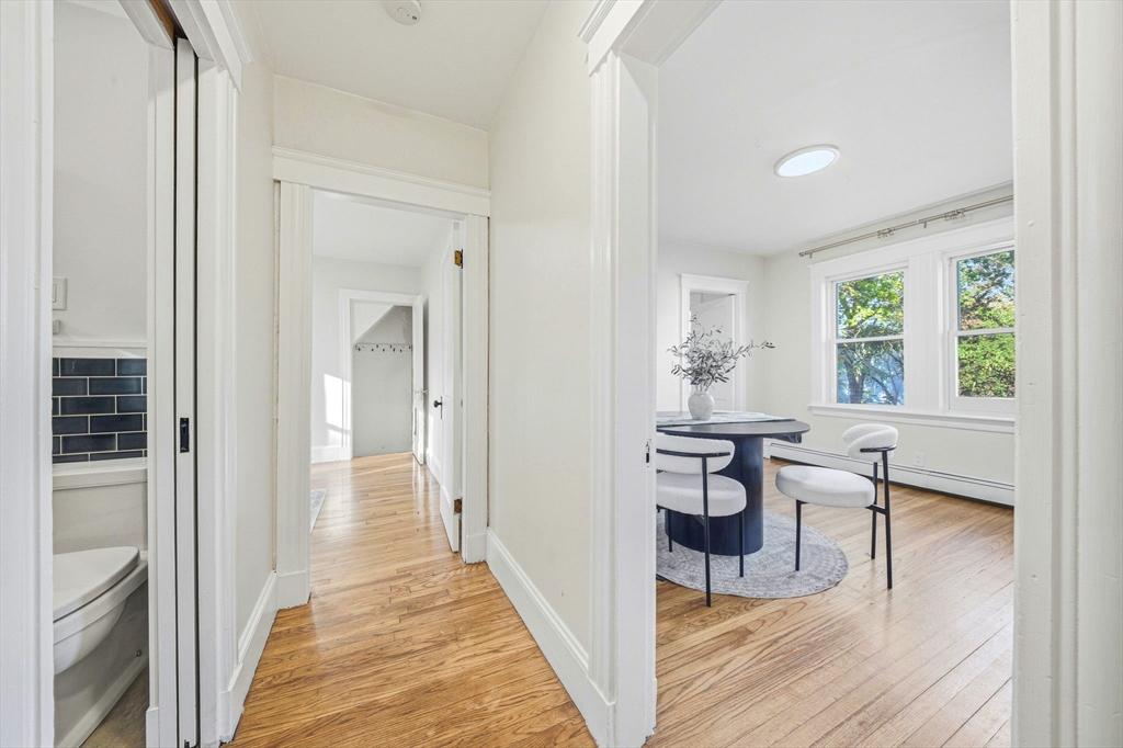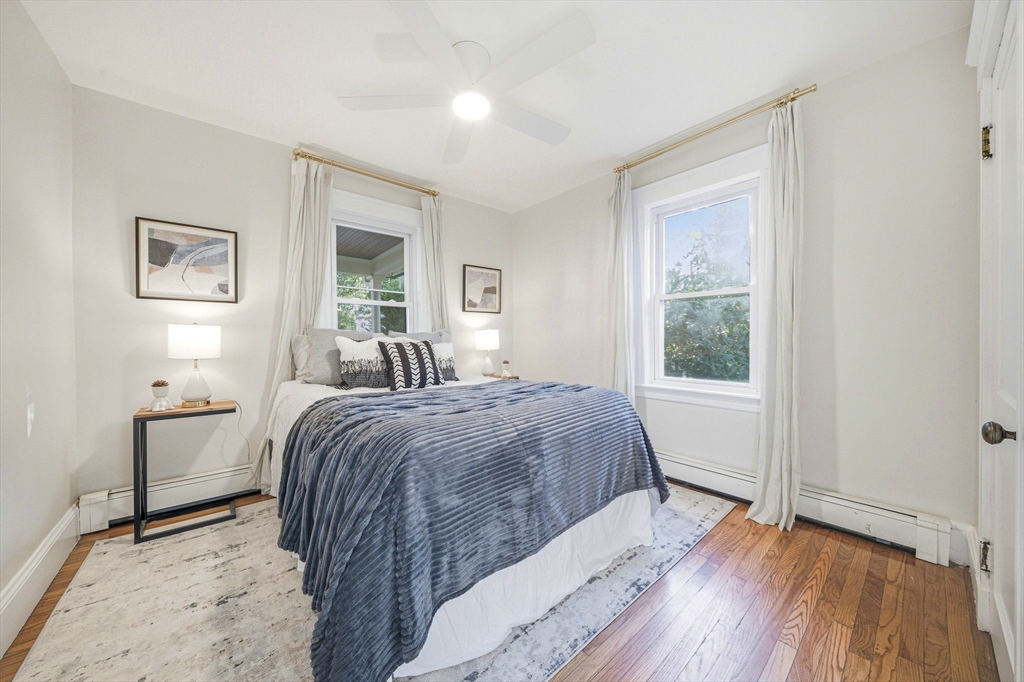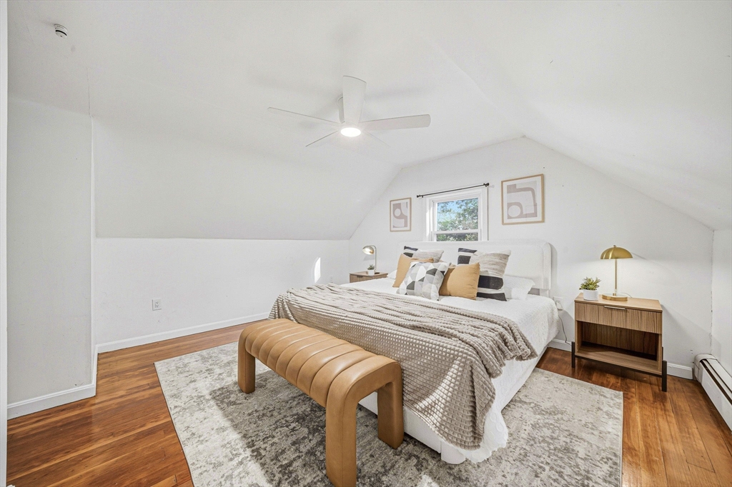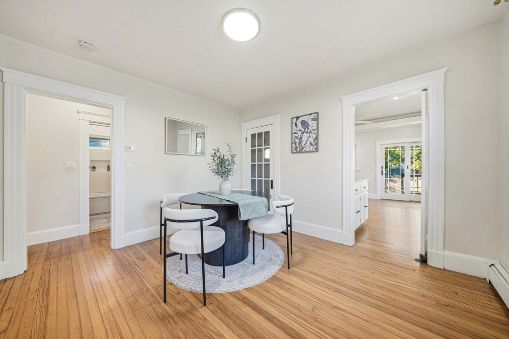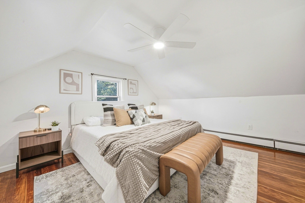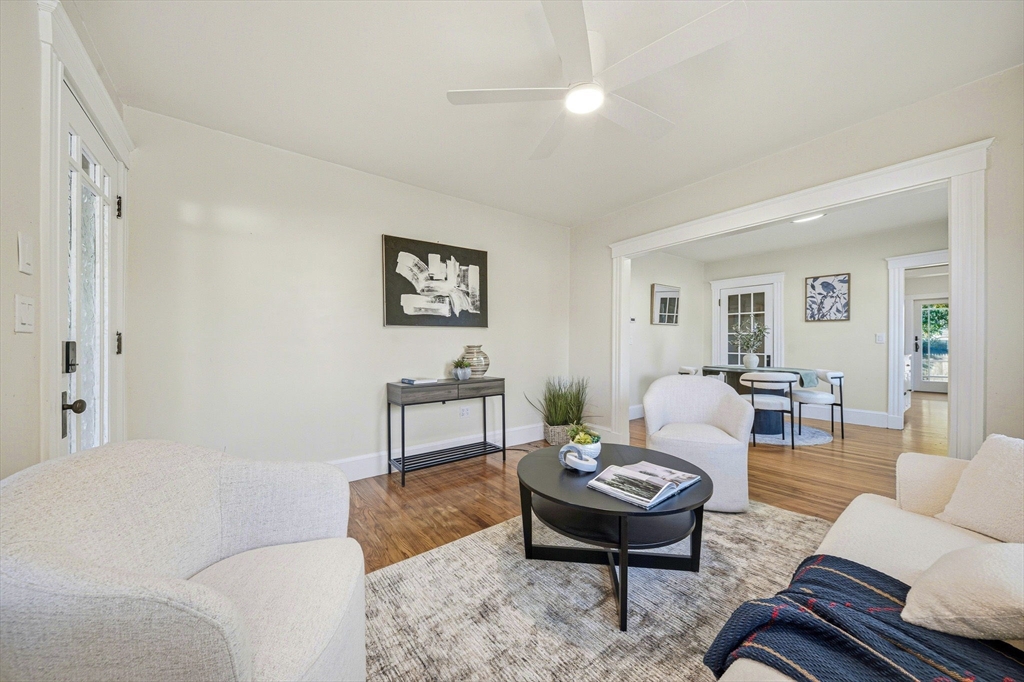 Magnificent 1361 SF single-family nestled in Randolph. Step onto the welcoming farmer’s porch and enter a bright, airy living room, and flowing into a formal dining room with a built-in hutch. The modern kitchen boasts granite countertops and a slider that opens to a rear deck, perfect for relaxing or entertaining. On the first floor, find a bedroom with a cozy office nook and a beautifully renovated full tile bath. Upstairs, you'll find a second bedroom, a second full bath, and a flexible loft space, ideal as a third bedroom, lounge, or creative retreat. The property also offers a 1-car detached garage, stone patio, a new private fence, gleaming hardwood floors, fresh interior paint, replacement windows with treatments, and major systems updates, including an aluminum roof and a Navien tankless hot water & anti-scale water filtration system. Conveniently located near shops, restaurants, and major highways.