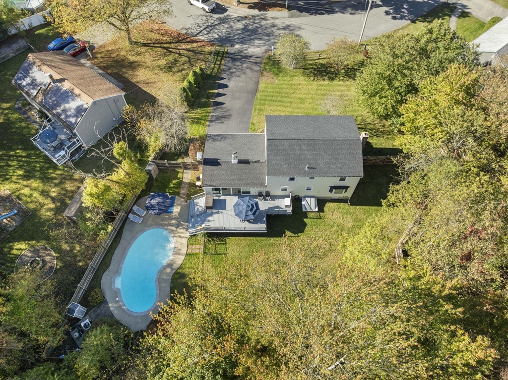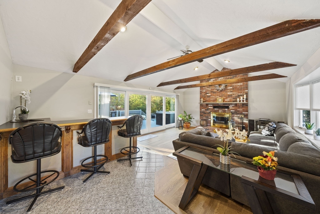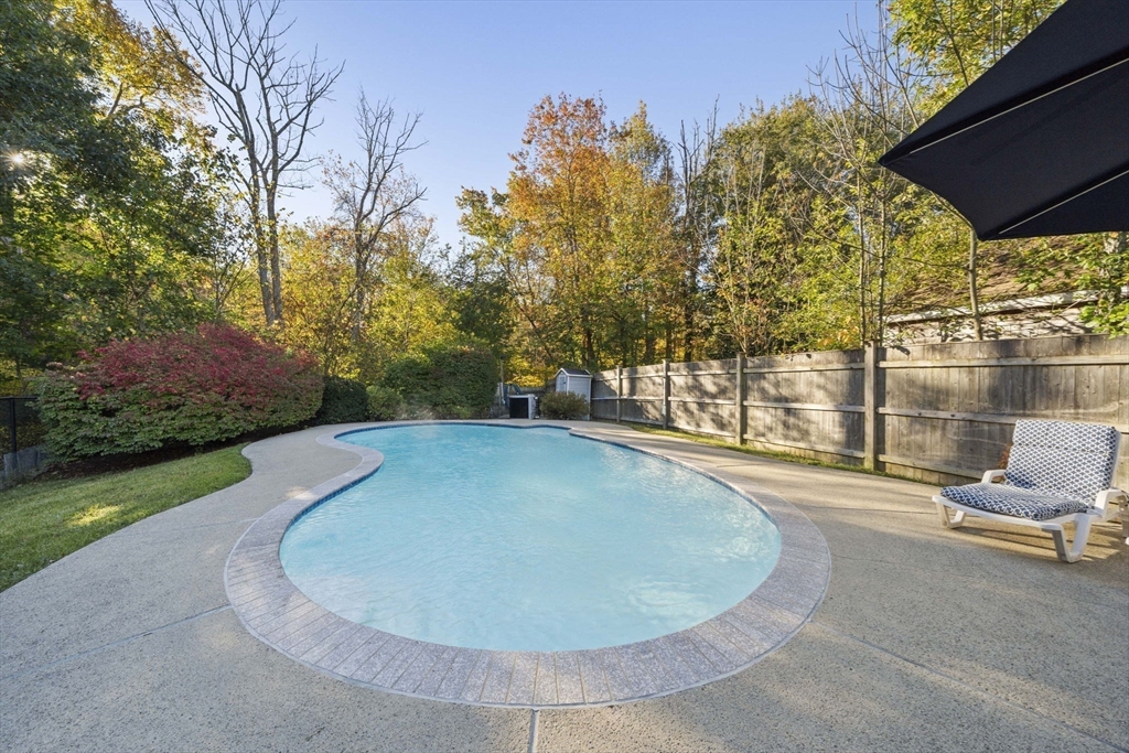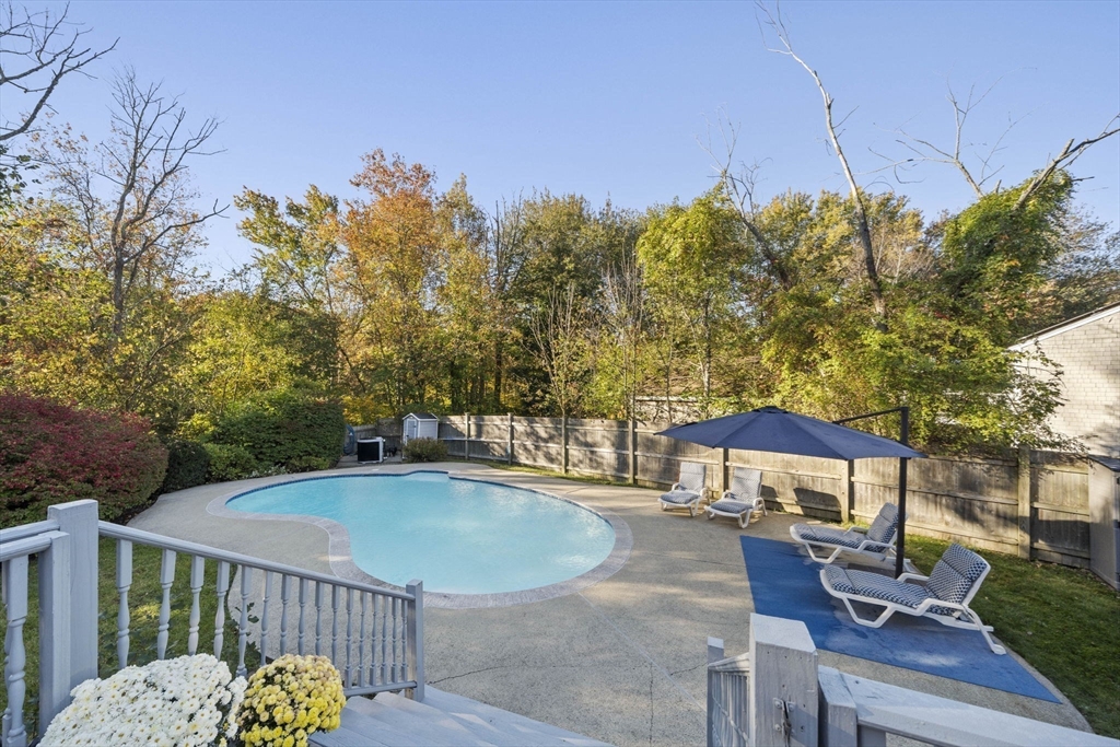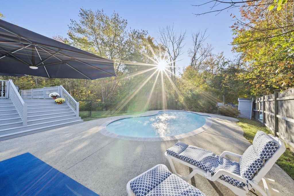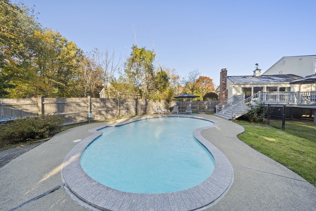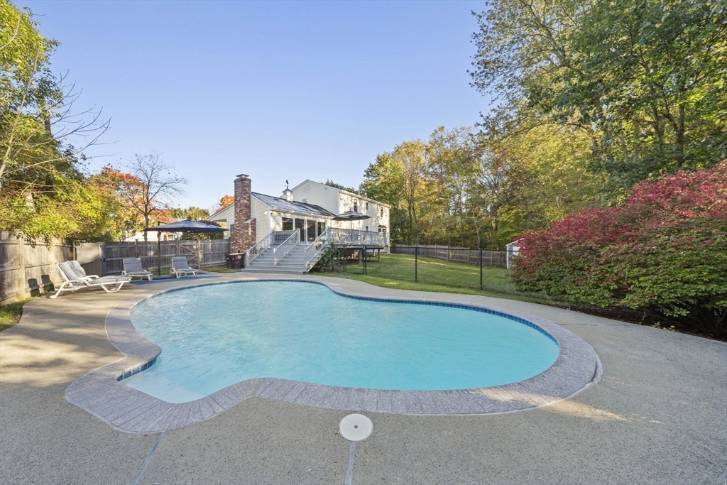 Lovingly cared for by the same family for 22 years, this inviting South Weymouth Colonial is ready for its next chapter. Designed for entertaining, this home welcomes you with a charming composite porch leading into a bright, updated kitchen and dining area. The spacious family room features vaulted ceilings, exposed beams, a wood-burning fireplace, and a wet bar, perfect for gatherings. A new oversized slider opens to an expansive deck overlooking the in-ground gunite heated swimming pool and large yard. A cozy living room offers another spot to relax, and a half bath with laundry completes the main level. Upstairs, you’ll find four bedrooms, including a primary with double closets, plus a full bath. The finished lower level offers bonus space ideal for a home office, gym, or playroom. Central air and a new roof add to its appeal. This prime location is minutes to the highway, Derby Street shops, and restaurants, and perfectly combines comfort, style, and convenience.