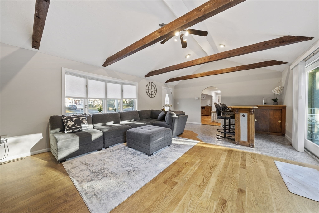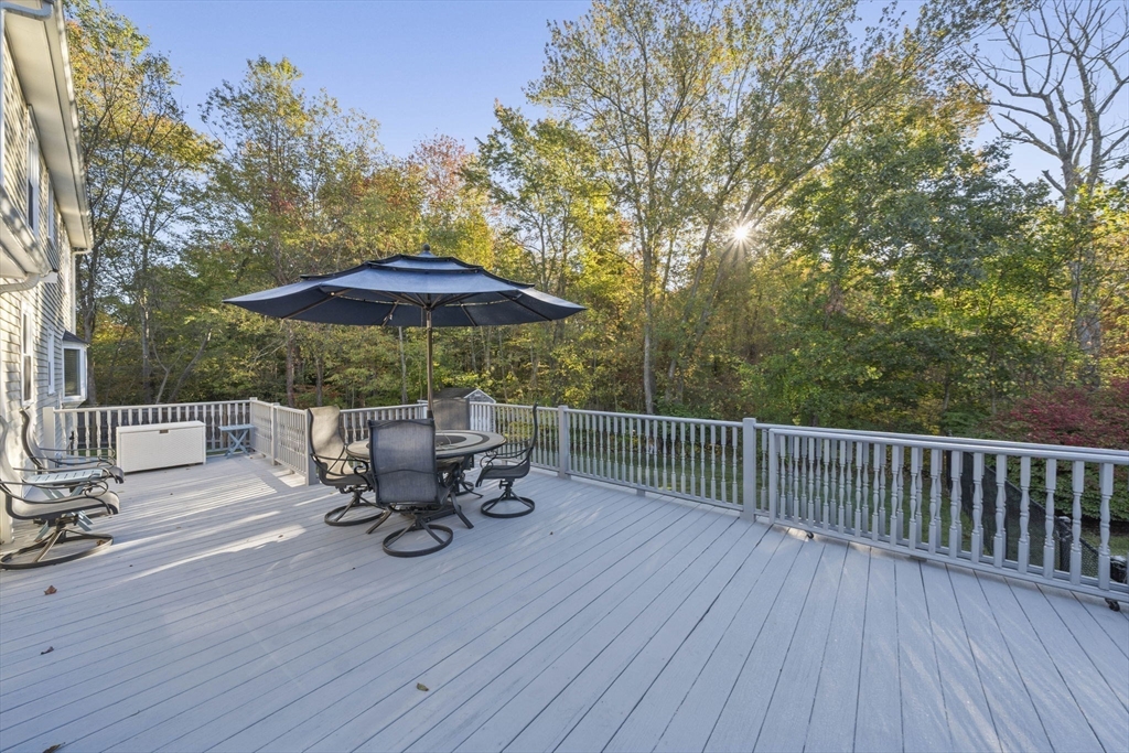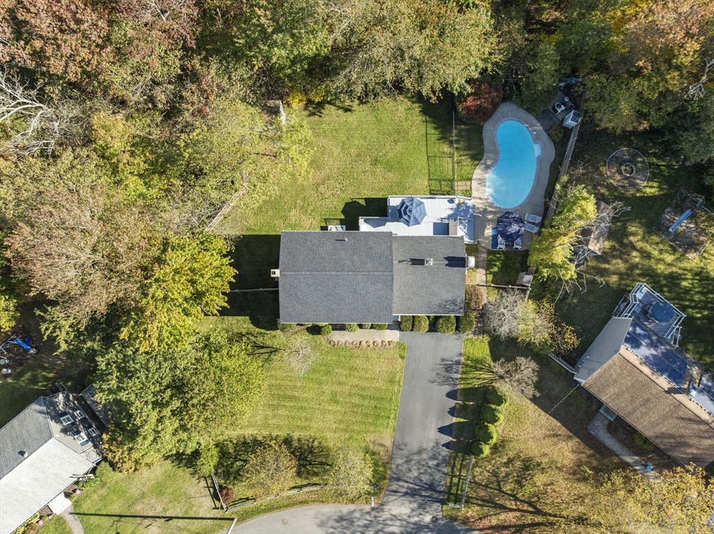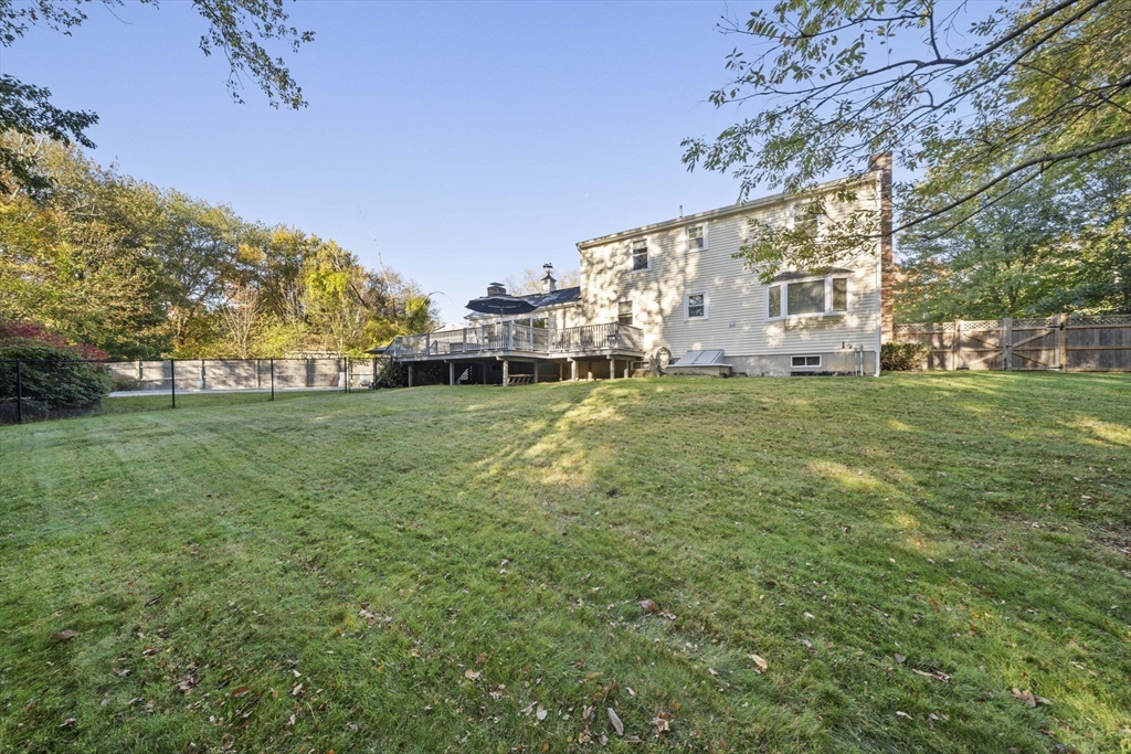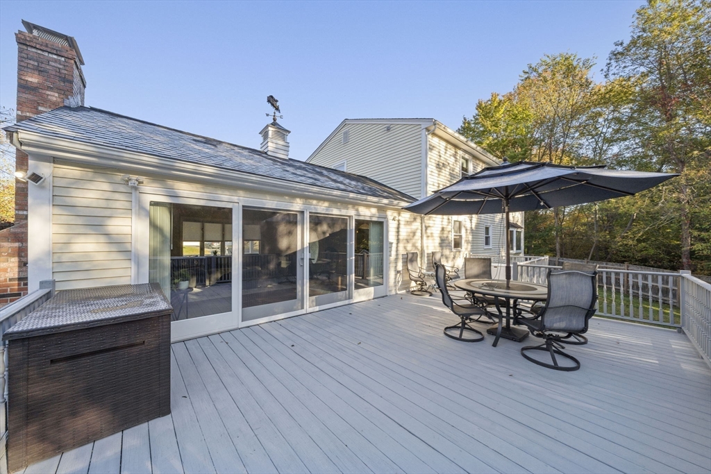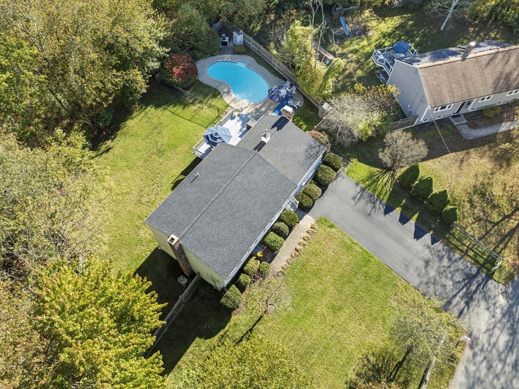 Lovingly cared for by the same family for 22 years, this inviting South Weymouth Colonial is ready for its next chapter. Designed for entertaining, this home welcomes you with a charming composite porch leading into a bright, updated kitchen and dining area. The spacious family room features vaulted ceilings, exposed beams, a wood-burning fireplace, and a wet bar, perfect for gatherings. A new oversized slider opens to an expansive deck overlooking the in-ground gunite heated swimming pool and large yard. A cozy living room offers another spot to relax, and a half bath with laundry completes the main level. Upstairs, you’ll find four bedrooms, including a primary with double closets, plus a full bath. The finished lower level offers bonus space ideal for a home office, gym, or playroom. Central air and a new roof add to its appeal. This prime location is minutes to the highway, Derby Street shops, and restaurants, and perfectly combines comfort, style, and convenience.