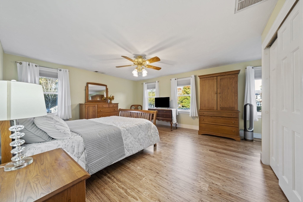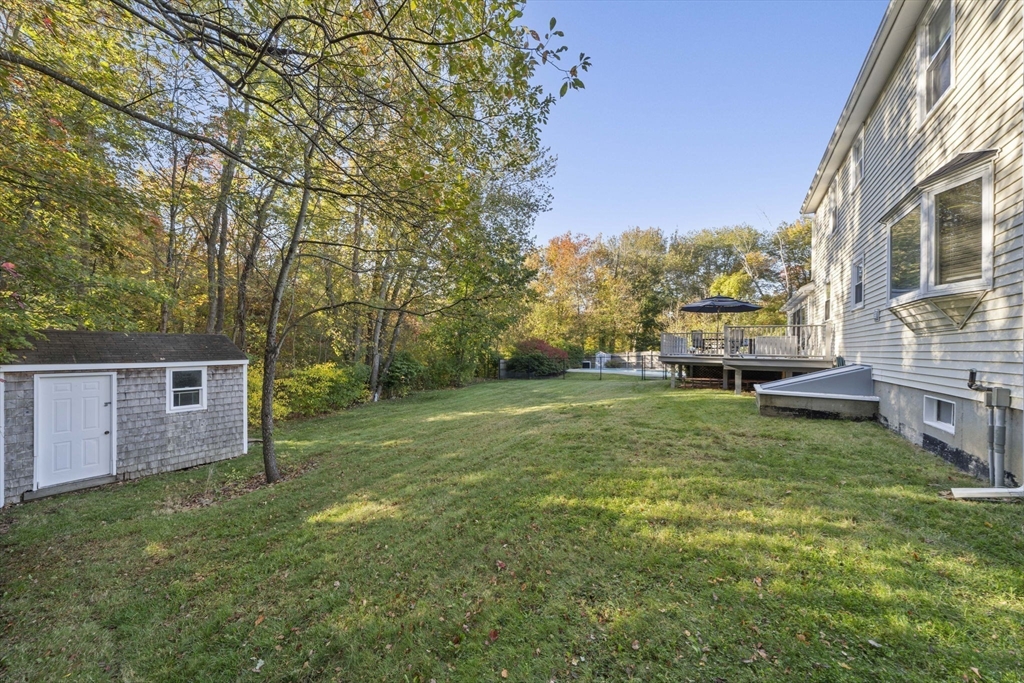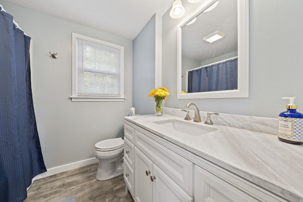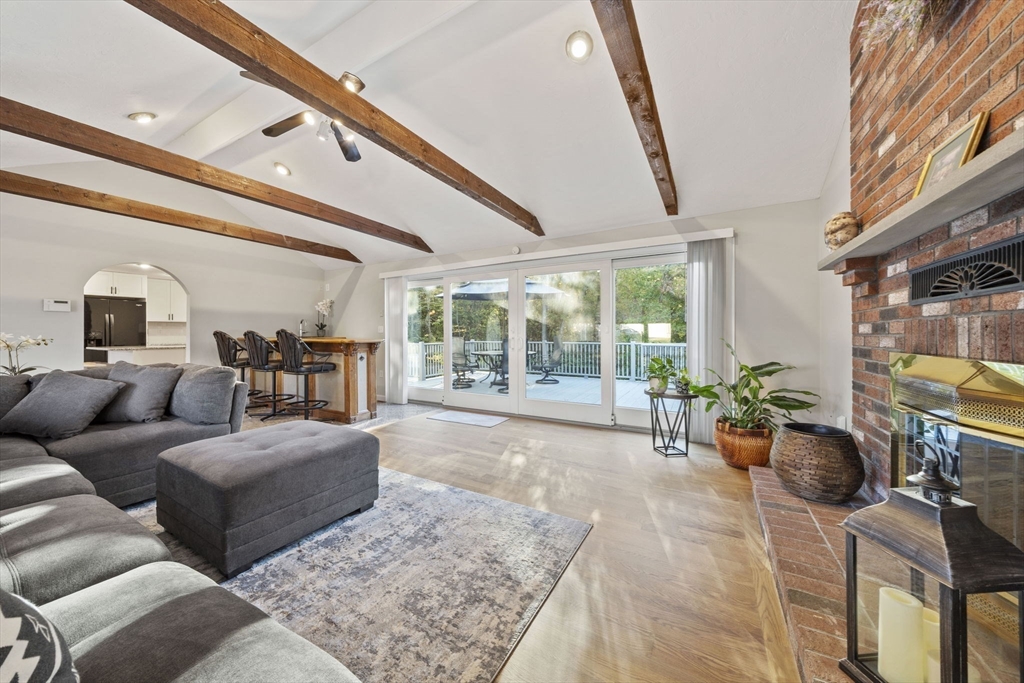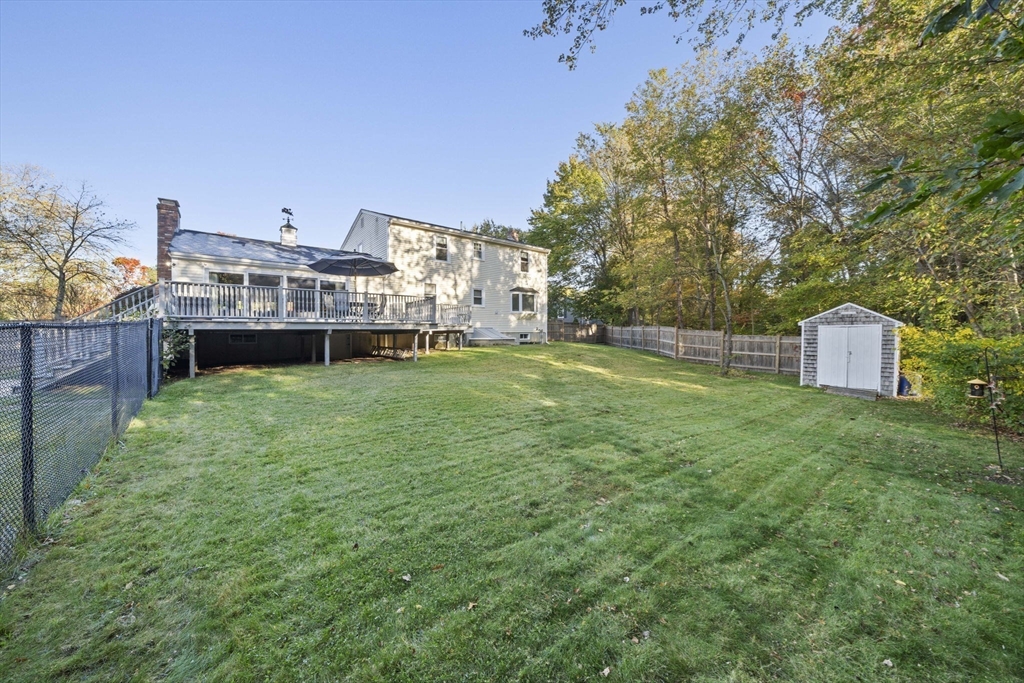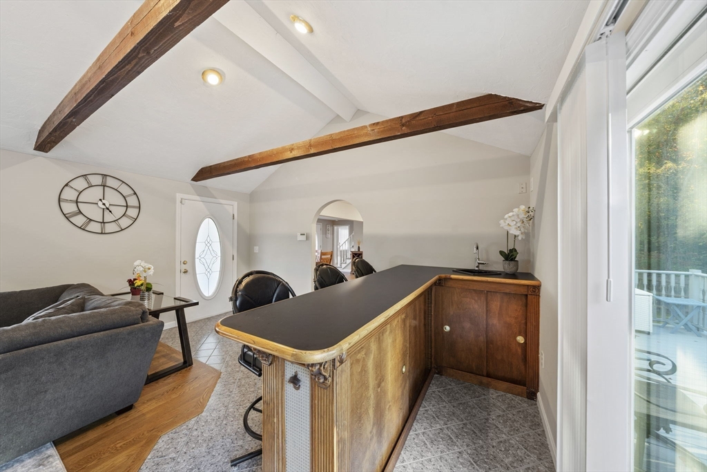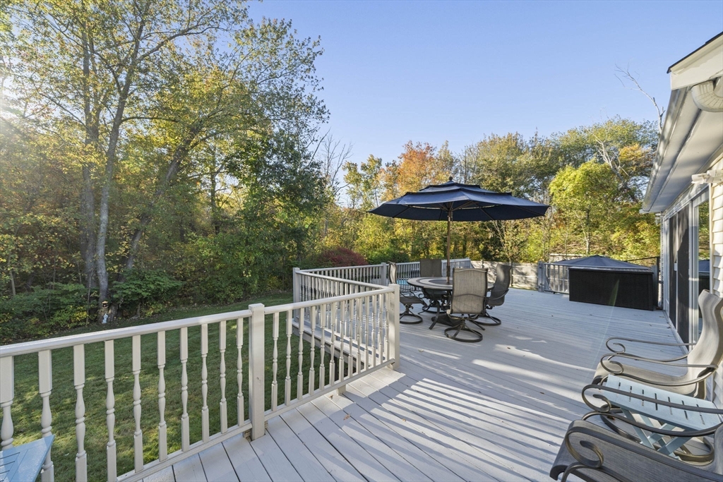 Lovingly cared for by the same family for 22 years, this inviting South Weymouth Colonial is ready for its next chapter. Designed for entertaining, this home welcomes you with a charming composite porch leading into a bright, updated kitchen and dining area. The spacious family room features vaulted ceilings, exposed beams, a wood-burning fireplace, and a wet bar, perfect for gatherings. A new oversized slider opens to an expansive deck overlooking the in-ground gunite heated swimming pool and large yard. A cozy living room offers another spot to relax, and a half bath with laundry completes the main level. Upstairs, you’ll find four bedrooms, including a primary with double closets, plus a full bath. The finished lower level offers bonus space ideal for a home office, gym, or playroom. Central air and a new roof add to its appeal. This prime location is minutes to the highway, Derby Street shops, and restaurants, and perfectly combines comfort, style, and convenience.