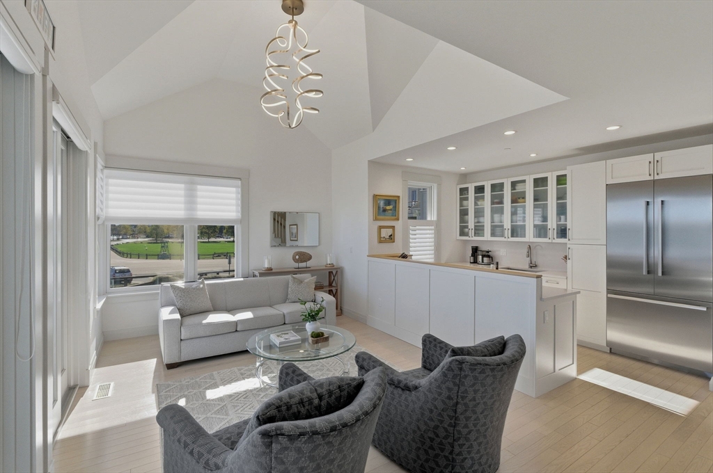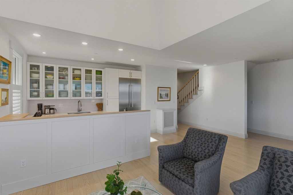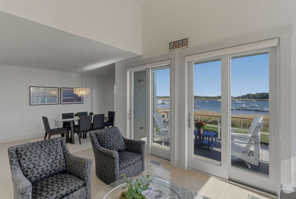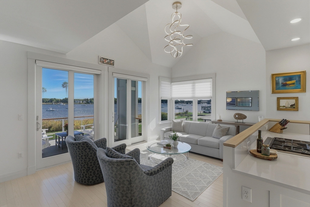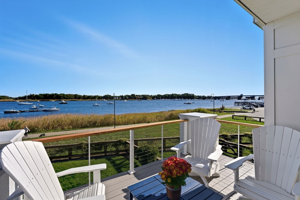 Highly desirable and rarely available — a Newburyport Landing treasure! Enjoy year-round vacation living with breathtaking Merrimack River views. This luxurious 3-bedroom, 2.5-bath townhome offers an open-concept design with bright, airy living and dining areas and a sleek white kitchen with high-end appliances. The deck extends from the living room, creating a seamless indoor-outdoor flow perfect for relaxing and watching the boats go by. The first-floor primary suite is conveniently located off the main living area, combining ease and elegance for everyday living. A walk-out lower level offers flexible bonus space ideal for a home office, gym, or guest retreat. Outside, a fenced-in backyard with patio is perfect for entertaining. Stroll the Rail Trail to downtown boutiques, award-winning restaurants, and the vibrant waterfront. Complete with a two-car garage, this rare offering defines Newburyport luxury — where every day feels like a getaway.