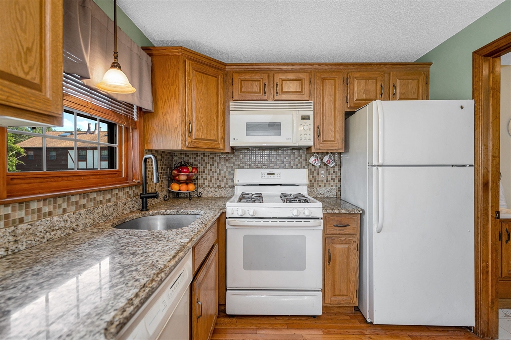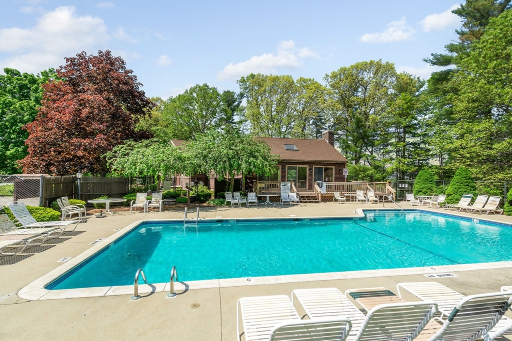 Nestled in the serene town of Chelmsford, this charming townhouse offers a unique blend of modern comforts and natural beauty. This END UNIT boasts 2 bedrooms and 2 bathrooms across 1138 square feet of living space, providing a cozy yet spacious atmosphere. The property features elegant granite counters in the kitchen, with a breakfast bar, a luxurious GAS fireplace in the living room, and residents can enjoy the picturesque views of nature from every window. The townhouse's prime location allows for easy access to the secluded green space next to the unit, perfect for relaxation and tranquility. In addition, the community amenities include an inviting inground swimming pool, tennis courts, and walking trails meandering through the lush surroundings, making it an ideal retreat for those seeking both convenience and natural charm.
