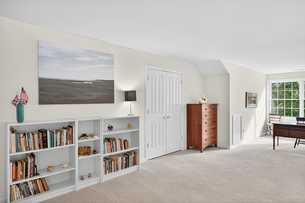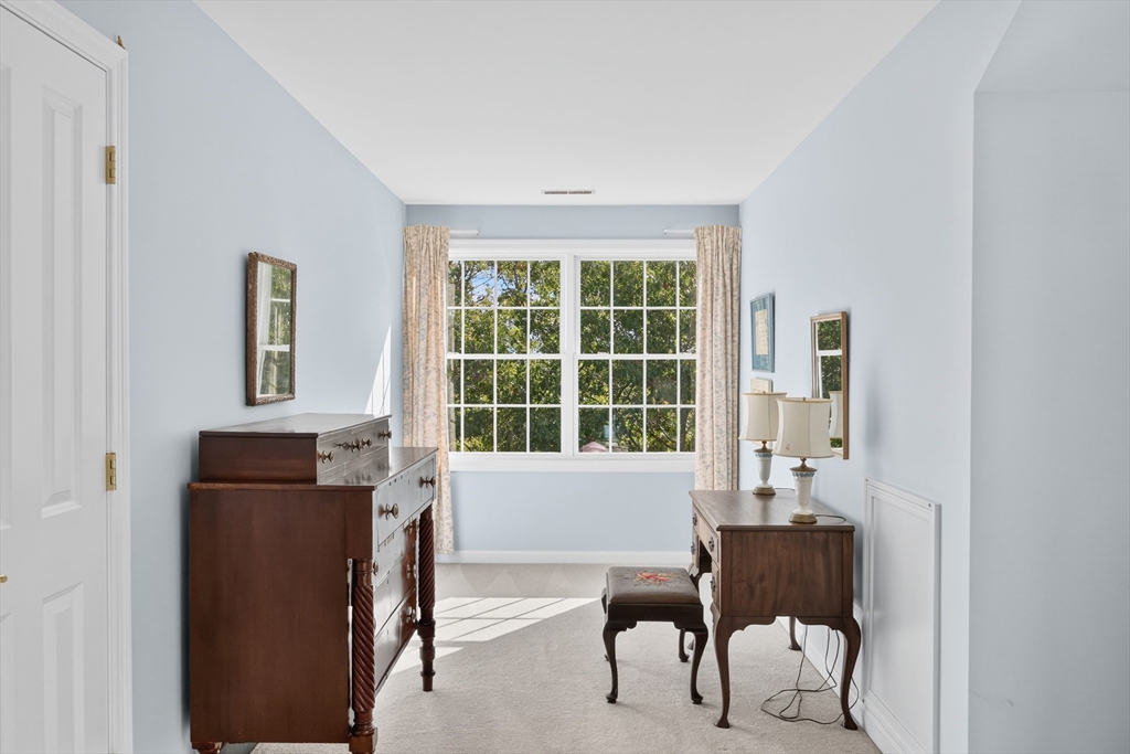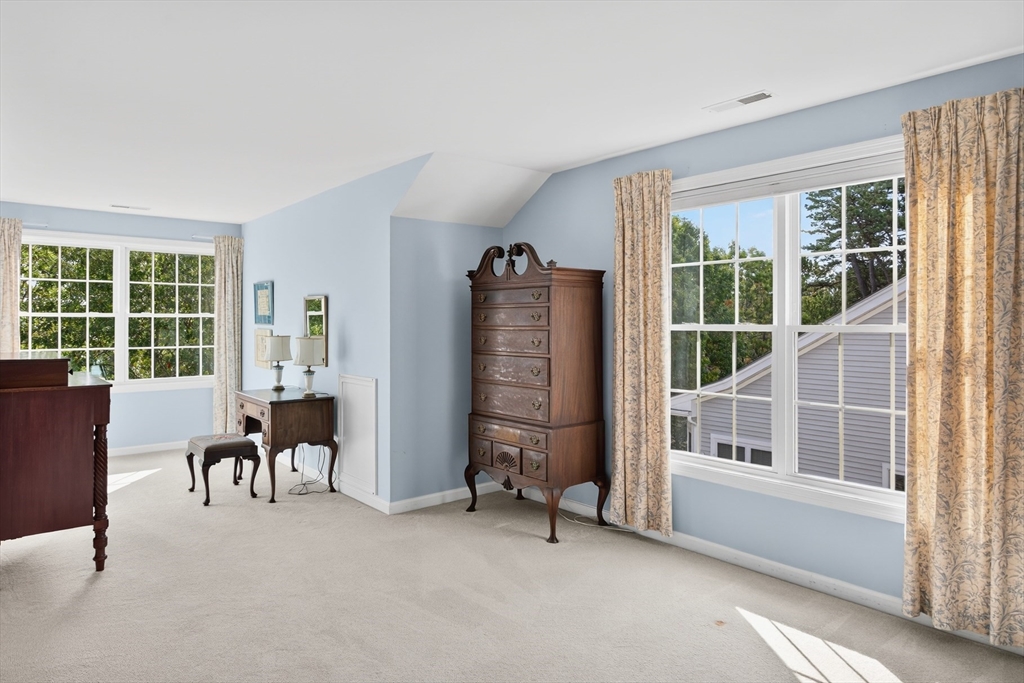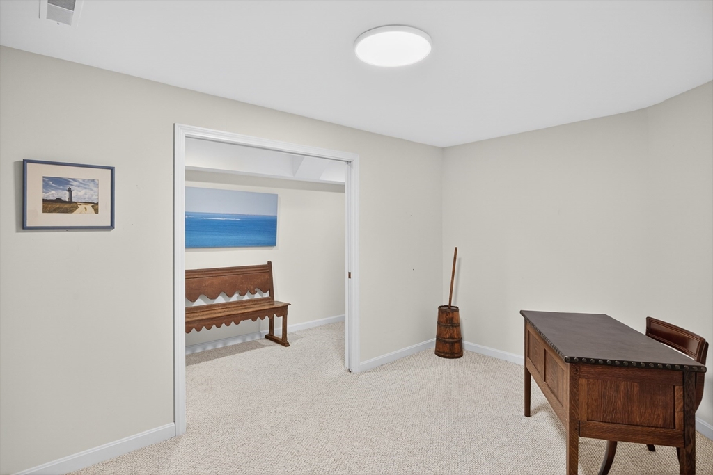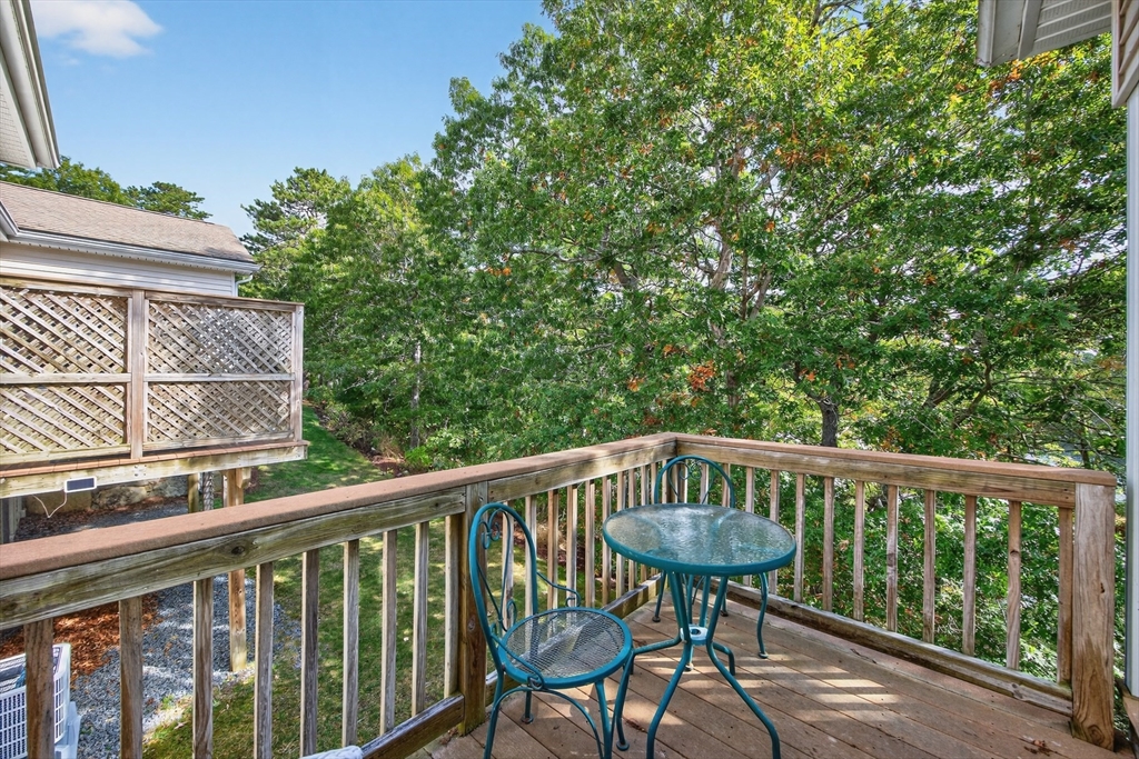 Stunning + bright "Milton" home w/custom window treatments located in the 55+ Great Island neighborhood in The Pinehills. Elegant dining room w/ hardwood flooring, crown trim + chair-rail w/a bay window. Living room w/ feature wall, hardwood flooring + slider to spacious trex deck w/private pond views. First floor primary suite has ensuite bath + shower + walk-in closet. The laundry room + office add to the first level living. Dine in kitchen w/SS appliances. Lovely staircase greets you at the front door and leads you to second floor guest suite w/ expansive den + bedroom w/ensuite bath and plenty of privacy. Bright walkout basement w/glass slider + 2 large windows and a bedroom and additional flex space. Enjoy amenities nearby at Overlook Clubhouse (1 min stroll via walking path) with indoor pool + jacuzzi, gym, billiards room, walking trails, tennis, pickle ball and bocce. Great Island Pond (.2 miles) & Stonebridge Club all part of HOA, w/ snow + trash removal. Tesla charger inc.