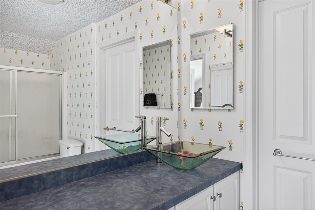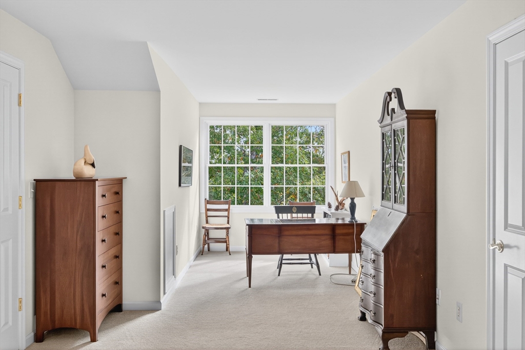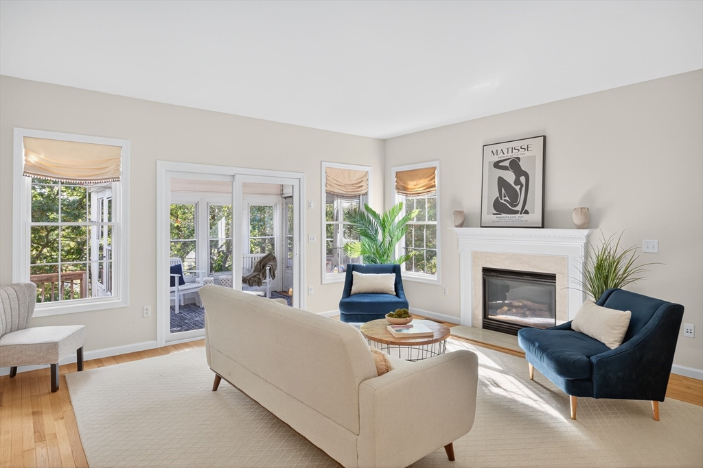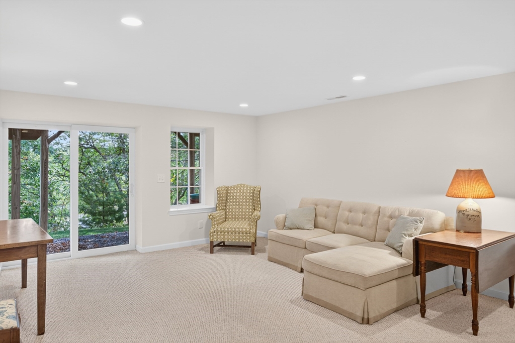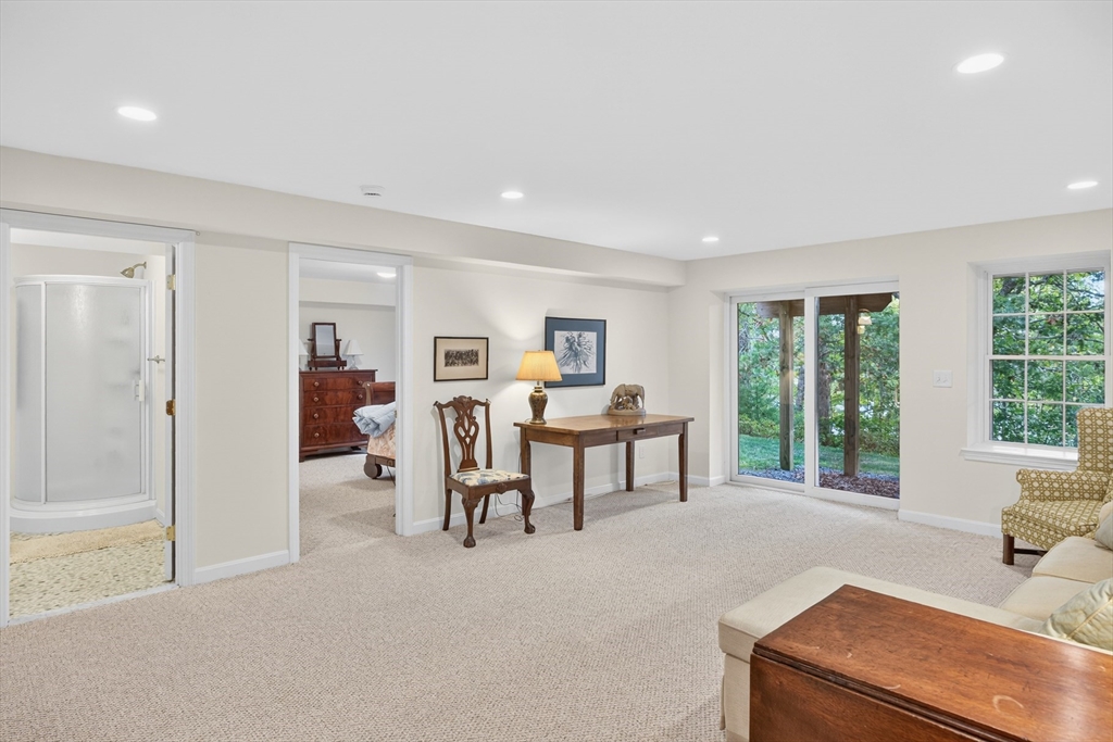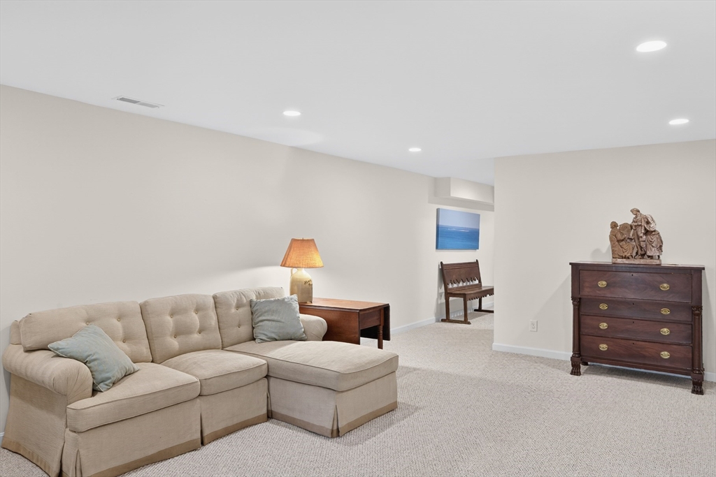 Stunning + bright "Milton" home w/custom window treatments located in the 55+ Great Island neighborhood in The Pinehills. Elegant dining room w/ hardwood flooring, crown trim + chair-rail w/a bay window. Living room w/ feature wall, hardwood flooring + slider to spacious trex deck w/private pond views. First floor primary suite has ensuite bath + shower + walk-in closet. The laundry room + office add to the first level living. Dine in kitchen w/SS appliances. Lovely staircase greets you at the front door and leads you to second floor guest suite w/ expansive den + bedroom w/ensuite bath and plenty of privacy. Bright walkout basement w/glass slider + 2 large windows and a bedroom and additional flex space. Enjoy amenities nearby at Overlook Clubhouse (1 min stroll via walking path) with indoor pool + jacuzzi, gym, billiards room, walking trails, tennis, pickle ball and bocce. Great Island Pond (.2 miles) & Stonebridge Club all part of HOA, w/ snow + trash removal. Tesla charger inc.