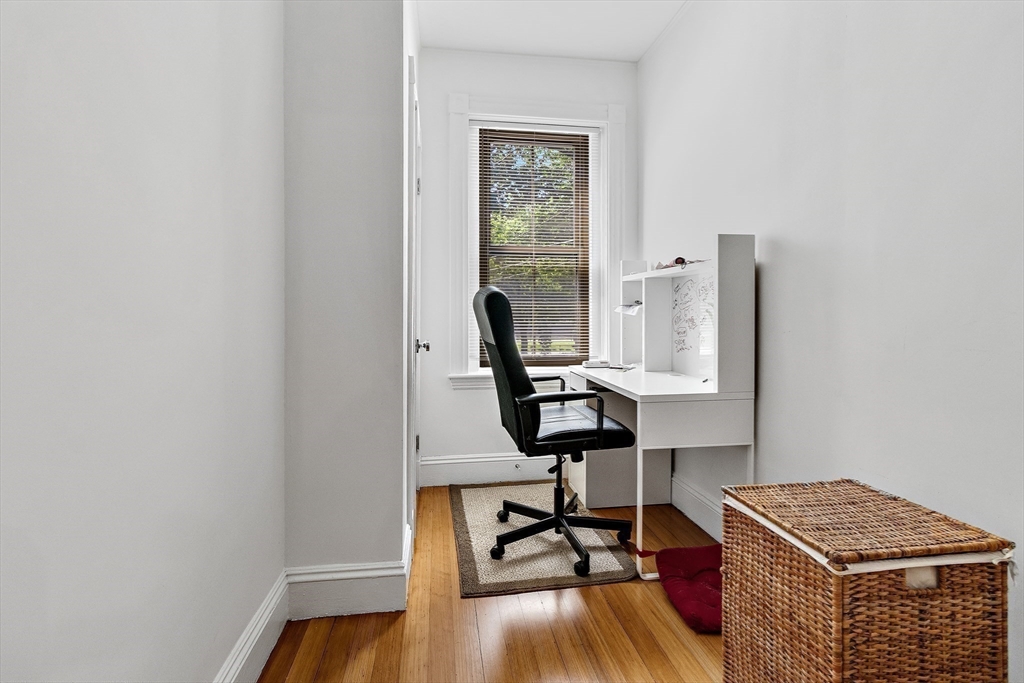 Quintessential Brookline/ Back Bay style floor through, in a beautiful brick row house building. Completely freshly painted! This sunny, spacious 3-4 bedroom plus 12x6 office/study features. Features a large, updated eat-in kitchen, as well as a large formal dining room. There are huge insulated replacement windows and hardwood flooring throughout. There is a private 11x9, 3-season, newer deck.. Great light and high ceilings. Located in the Corey Hill /Washington Square area. Minutes to T, C, and D lines, Whole Foods, Trader Joe's. Barcelona Wine and Grill.....Behind the building is the very desirable/appreciated Waldstein Park, with a field, tennis courts, and a basketball court. Easy access to Longwood Medical, Fenway, and downtown Boston. There is rental parking available at the paved lot directly behind the building, not included in the unit rent. There is laundry in the building. Available November 1, 2025 or flex date. Minimum 6-month lease term available. In lead compliance