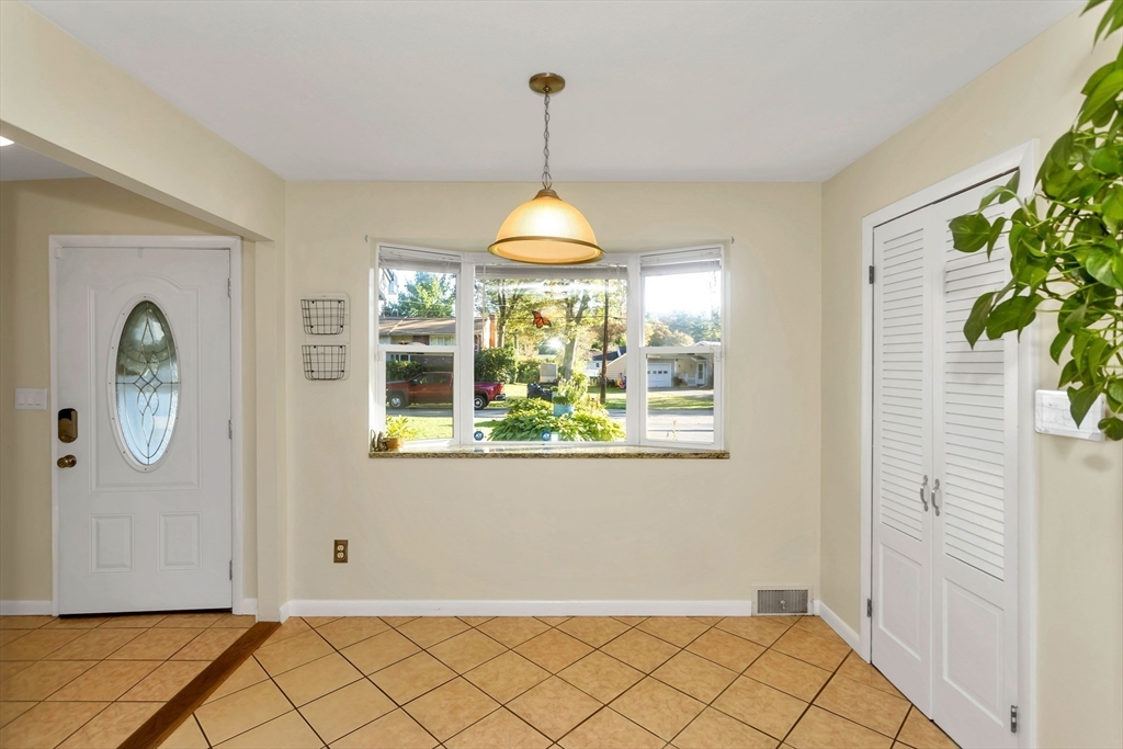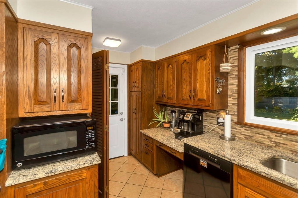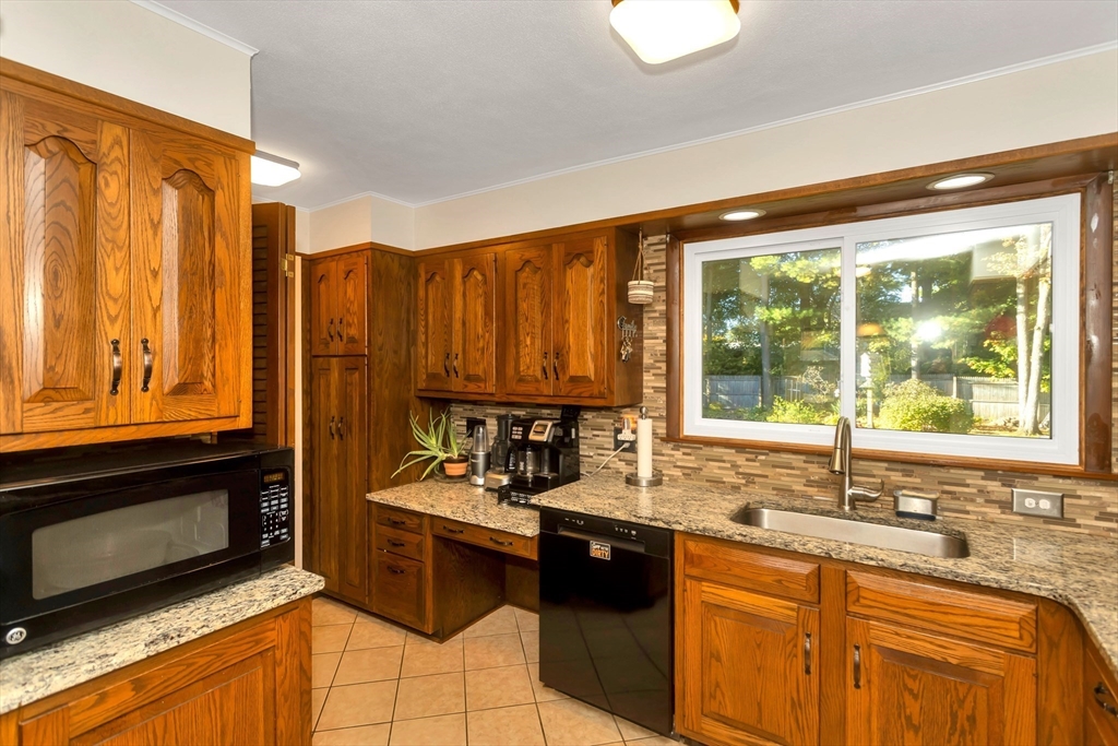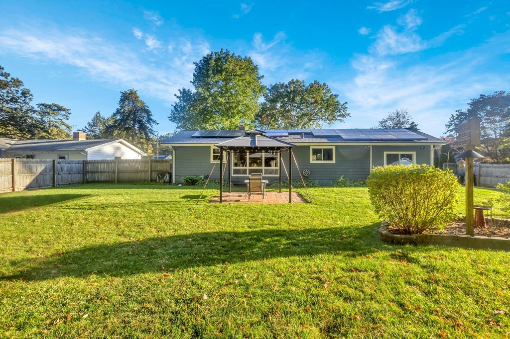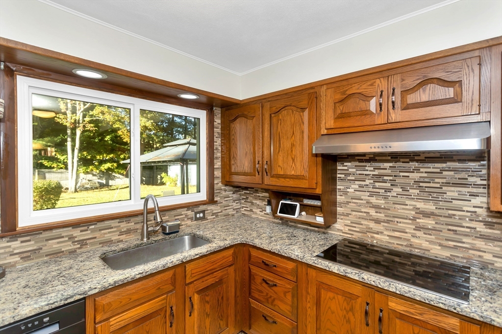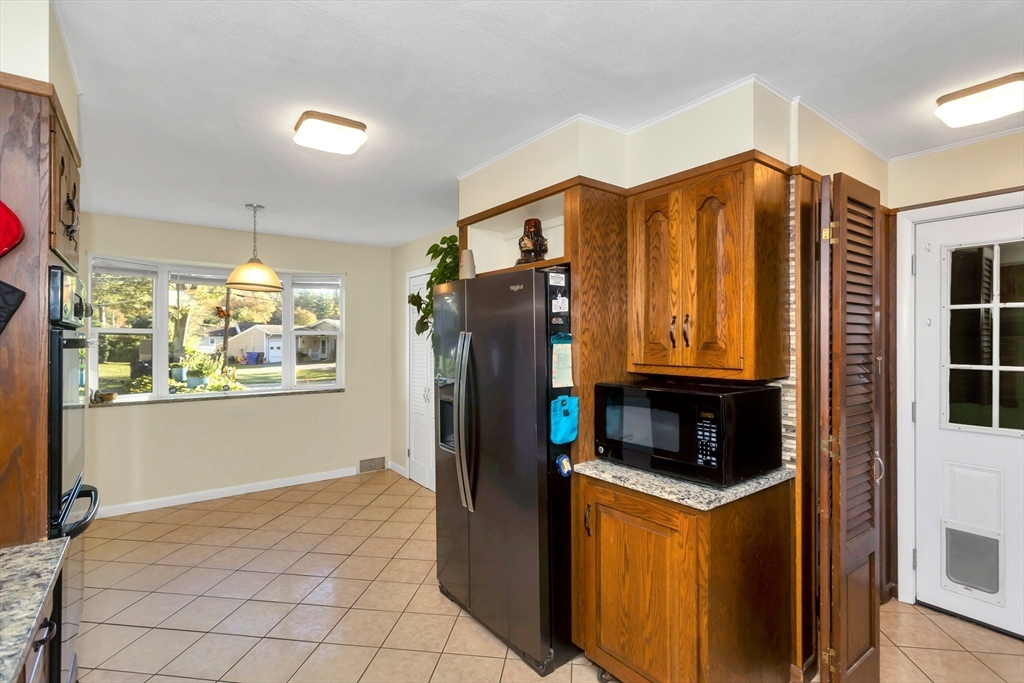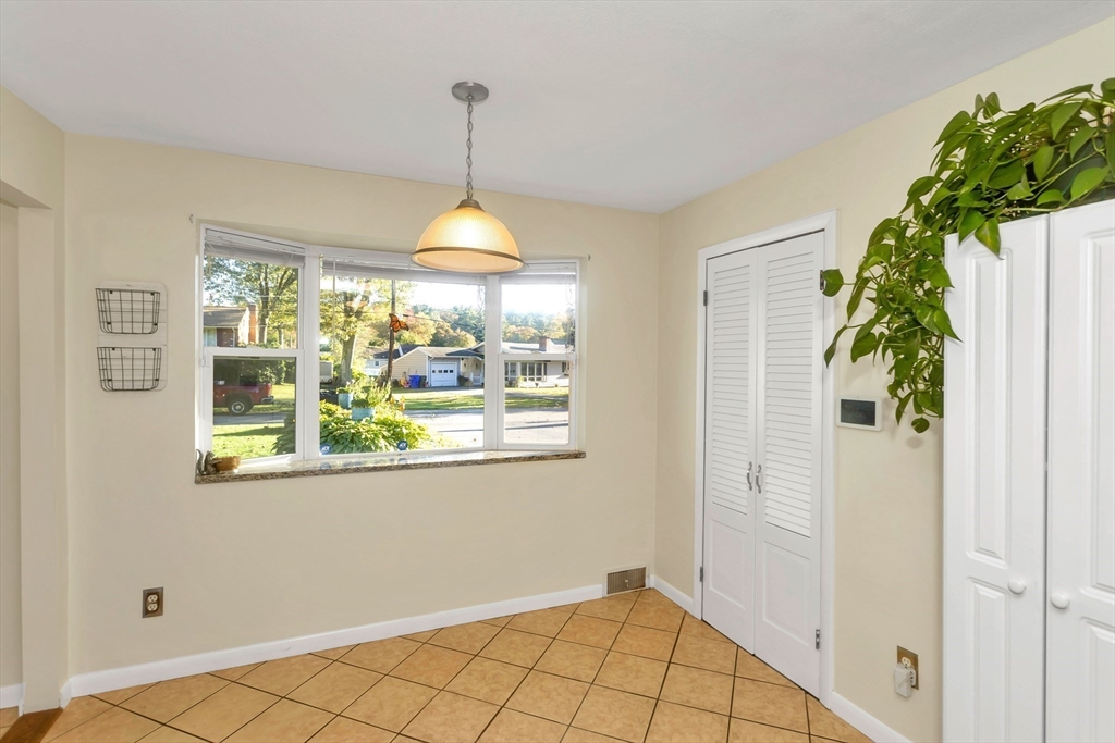 Situated in a quiet, highly sought-after neighborhood on the East Longmeadow line! 3 Bedroom, 1.5 bath ranch is ready for you, energy-efficient CENTRAL AC, gas forced-air heating, freshly painted interior and recently updated custom windows, this home is maintenance-free and affordable to own with solar panels. The tastefully updated eat-in kitchen features granite counters, a stylish back splash and tile floors with the convenience of a double oven. A beautiful bay window in the living room overlooks the gigantic, partially fenced yard. The master bedroom is equipped with an additional 1/2 bathroom. Additional highlights include a generator hook-up, brand new roof (2025), newer water heater and dishwasher, sprinklers, bonus room located next to Kitchen with sliders on each side(not included in square footage), that could be transformed into garage and an unfinished basement that has been framed and sheet-rocked with , a bar, and a sink—ready to be transformed into your ideal space.