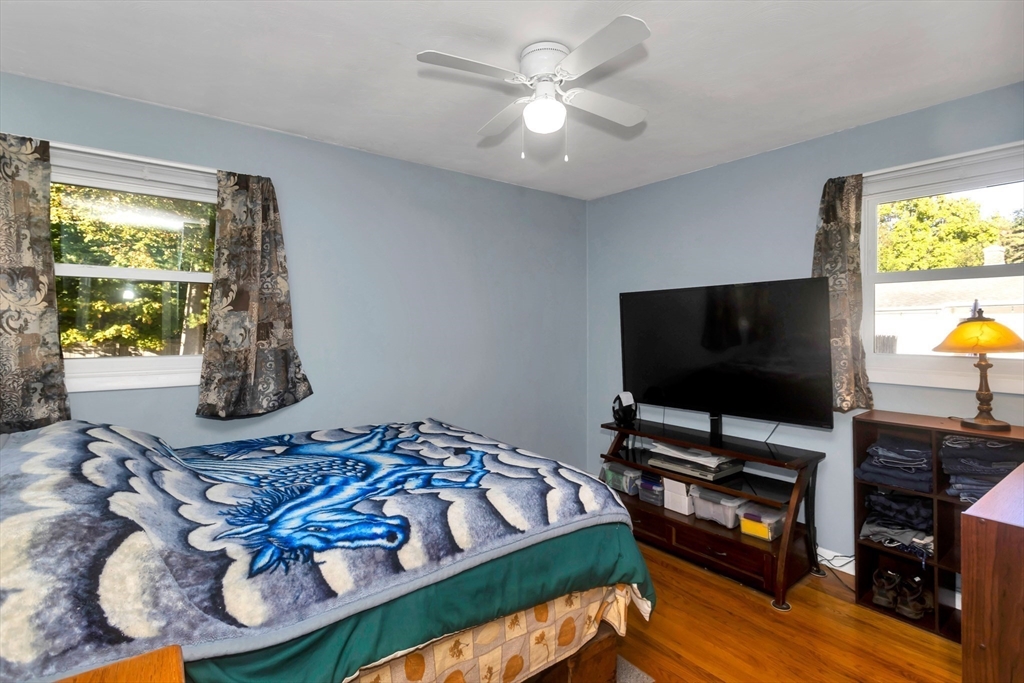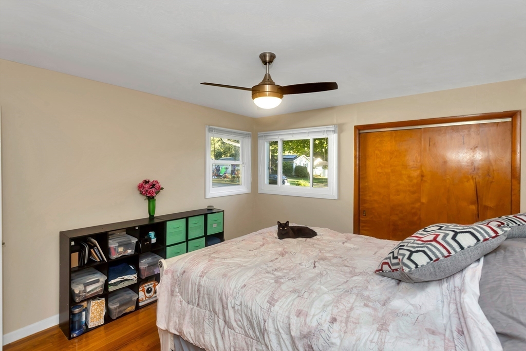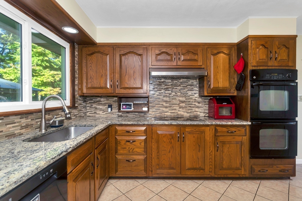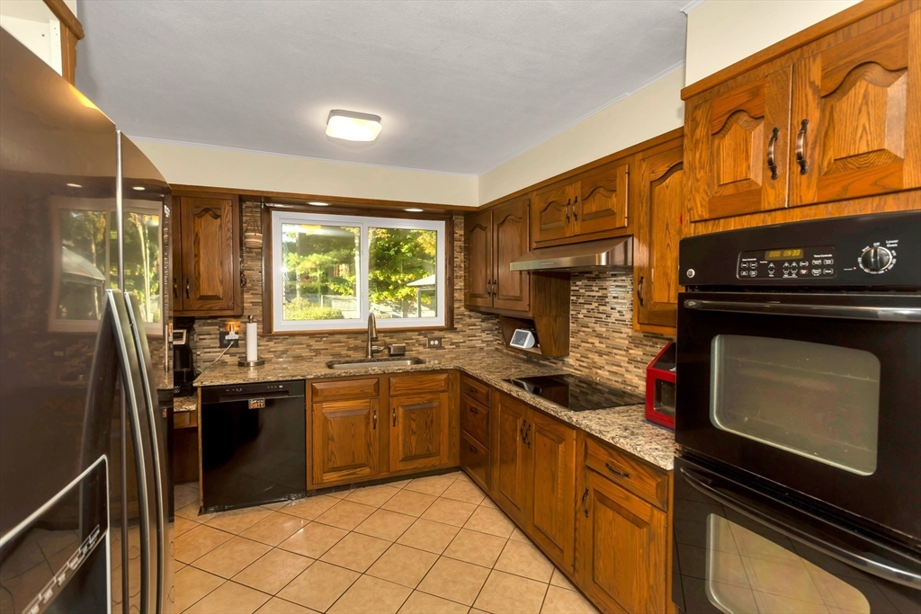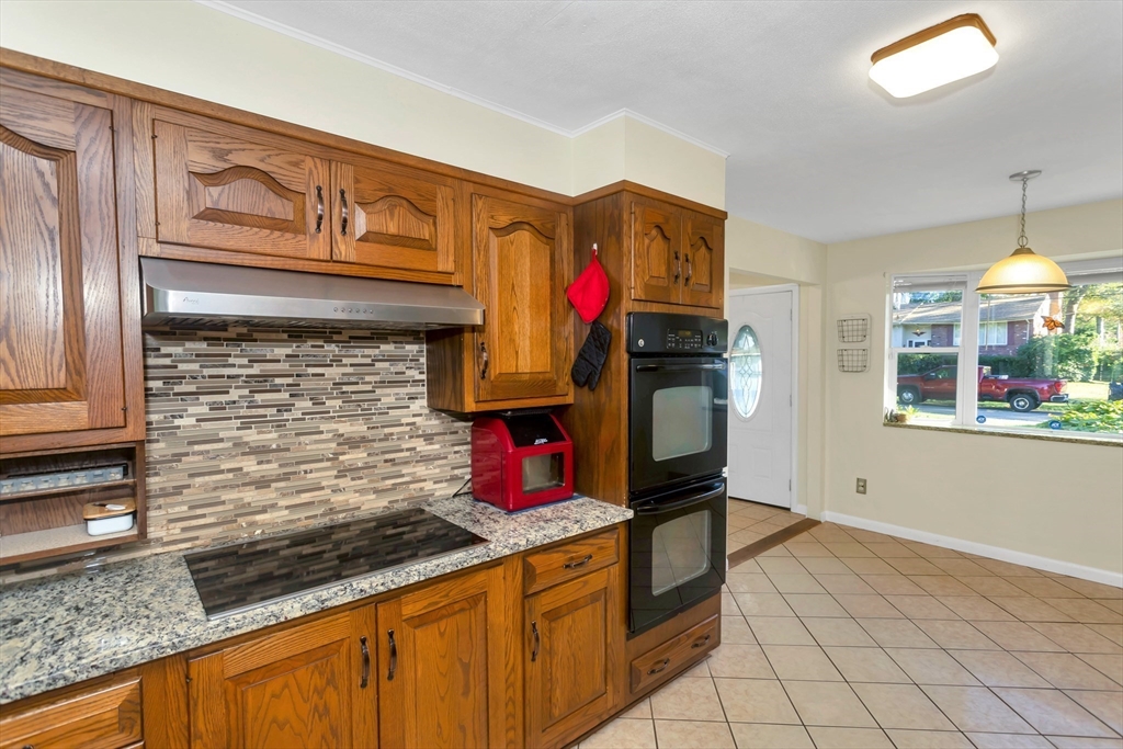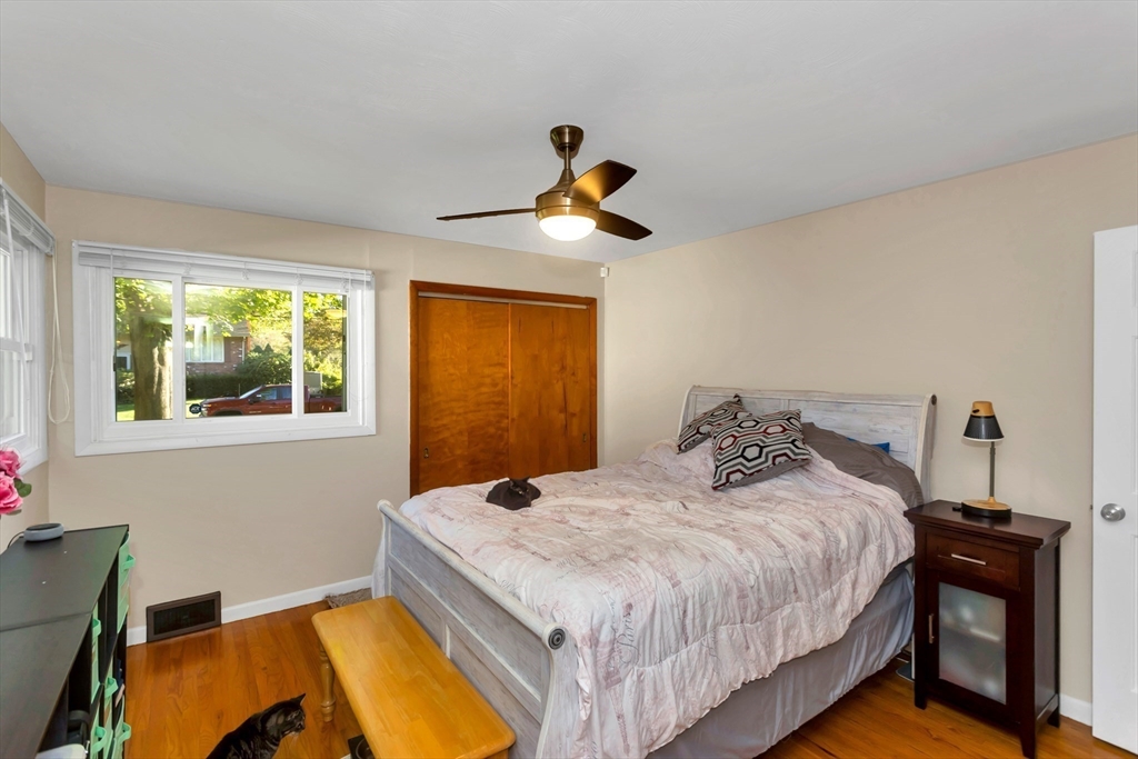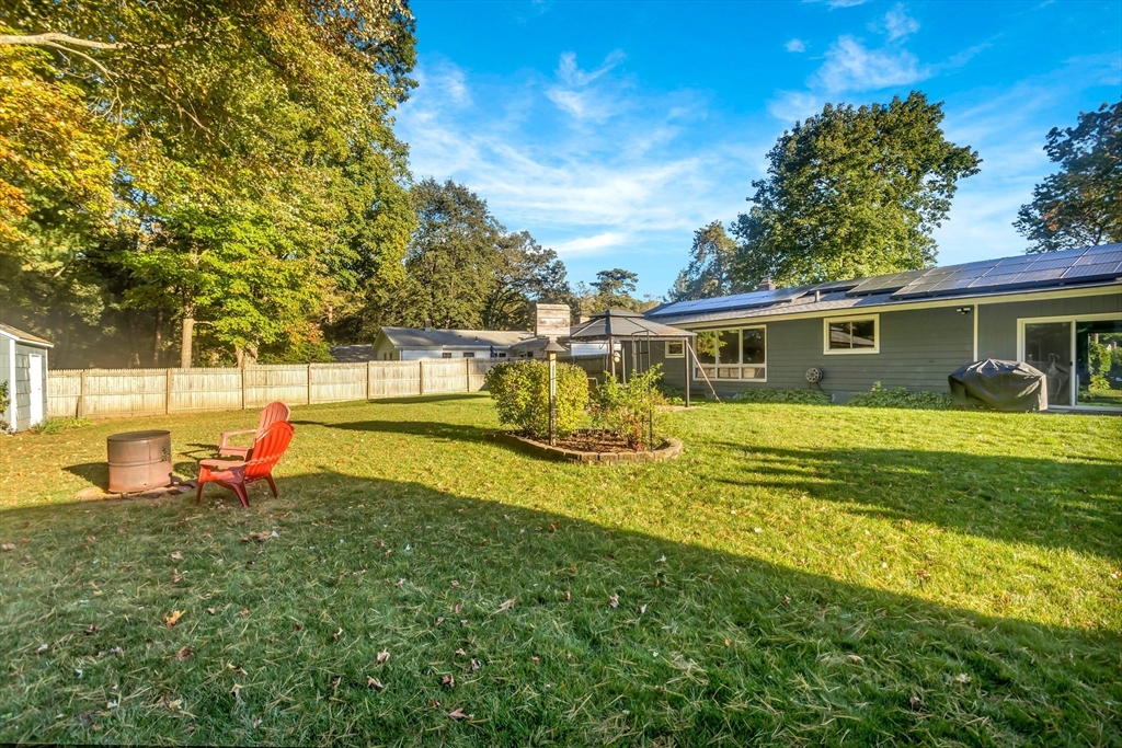 Situated in a quiet, highly sought-after neighborhood on the East Longmeadow line! 3 Bedroom, 1.5 bath ranch is ready for you, energy-efficient CENTRAL AC, gas forced-air heating, freshly painted interior and recently updated custom windows, this home is maintenance-free and affordable to own with solar panels. The tastefully updated eat-in kitchen features granite counters, a stylish back splash and tile floors with the convenience of a double oven. A beautiful bay window in the living room overlooks the gigantic, partially fenced yard. The master bedroom is equipped with an additional 1/2 bathroom. Additional highlights include a generator hook-up, brand new roof (2025), newer water heater and dishwasher, sprinklers, bonus room located next to Kitchen with sliders on each side(not included in square footage), that could be transformed into garage and an unfinished basement that has been framed and sheet-rocked with , a bar, and a sink—ready to be transformed into your ideal space.