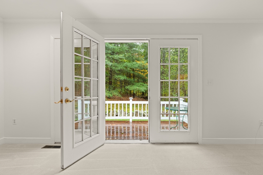 Fabulous ranch style condominium on one level of living at Quisset Brook Condominiums! This spacious unit has two good-sized bedrooms, two full baths and plenty of closet space, plus large pull down attic storage. This end unit has lots of privacy, with a beautiful, wooded lot set in the Blue Hills. Large living room with a fireplace and french doors leading to an outside deck, enjoy the sun and this perfect location. The past owner enjoyed gardening in this wonderful yard. Garage parking with lots of extra storage....Super community with little or no upkeep, let the condo association do the work! It is great location and accessible to major highways, close to the airport and shopping. Move right in and enjoy Quisset Brook and all it has to offer!!