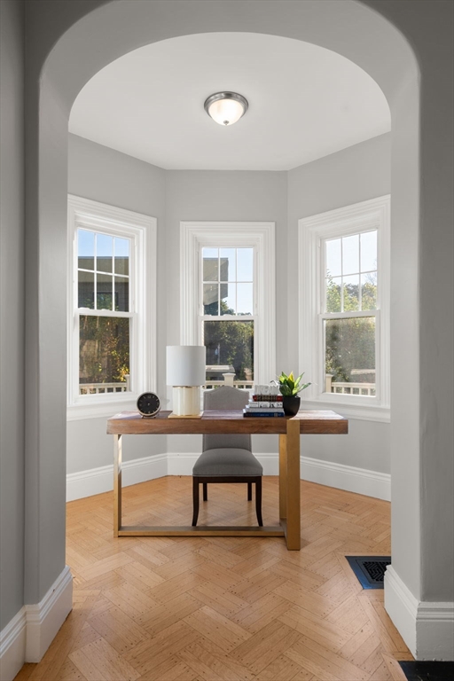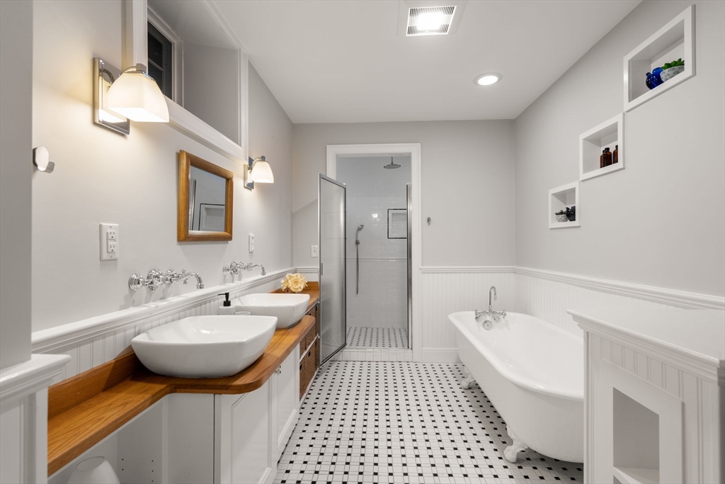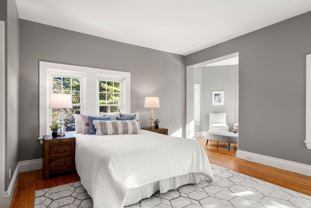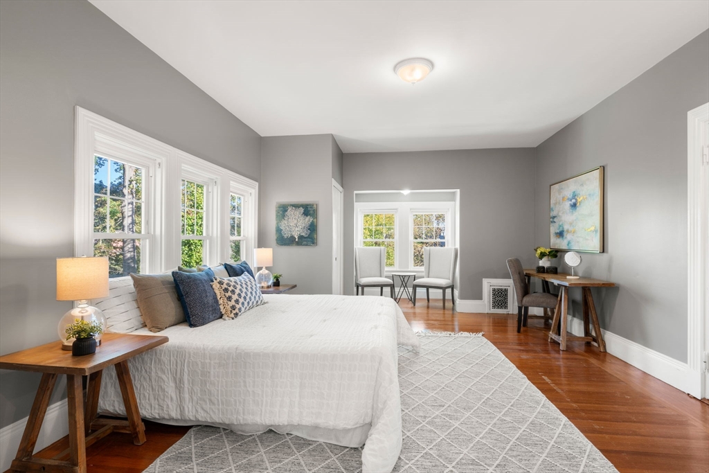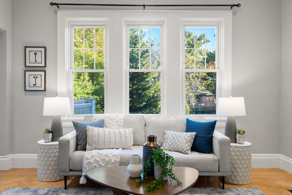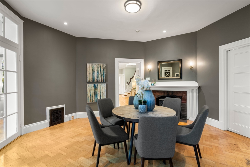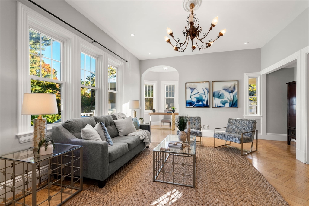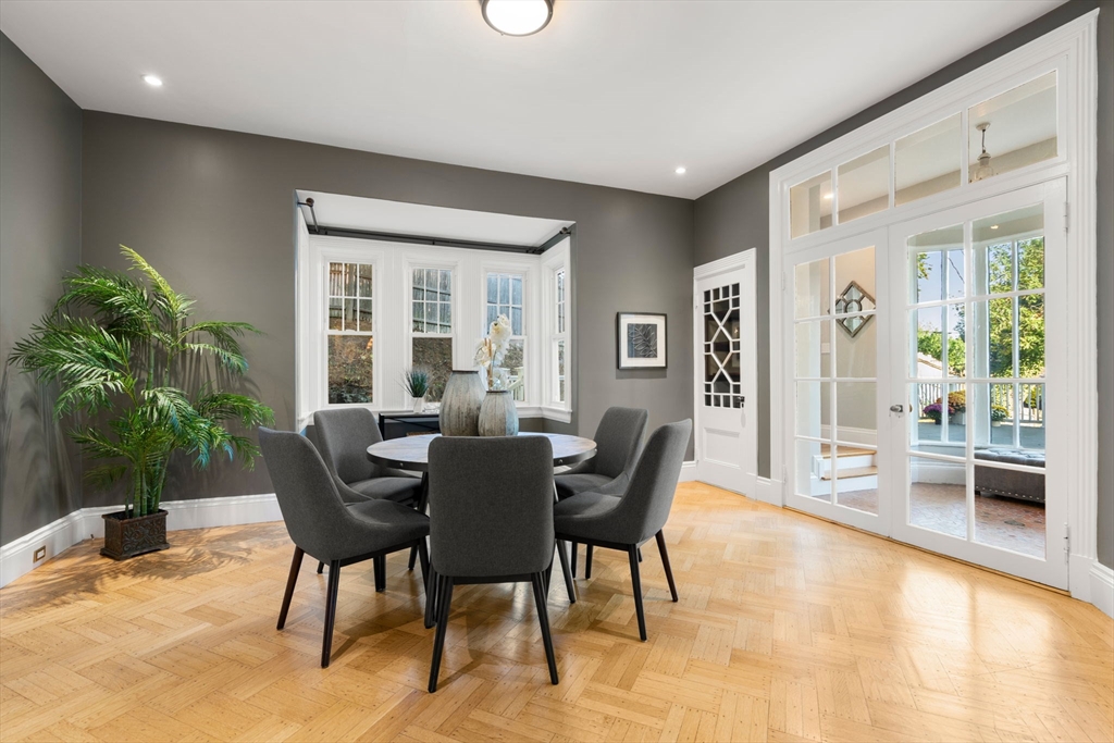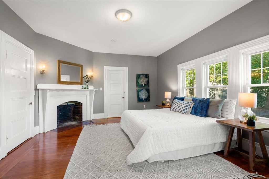 This elegant 1893 Victorian home w/ 5 beds and 4.5 baths is sited on beautifully landscaped grounds near Washington Square. Inviting wrap-around porch leads to gracious entry hall featuring original mahogany staircase, magnificent stained glass windows, wainscoting, grand fireplace. First floor features large living room w/fireplace and reading alcove, family room, dining room w/fireplace and solarium overlooking large deck, large eat-in kitchen, and screened porch that leads to private rear yard w/gardens, large patio and in-ground pool. Second floor offers primary bedroom w/ en suite bath, 3 more bedrooms, 2 more bathrooms. Third floor has bedroom and game / bonus room. Finished lower level features media rm, exercise rm, office, kitchenette, full bath, mudroom area. Two-car direct-entry garage plus 4 driveway parking spaces. Updated systems. Conveniently located near shops and restaurants, schools, parks, green MBTA C/D lines. Short commute to Longwood Medical, downtown Boston.