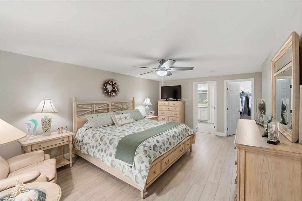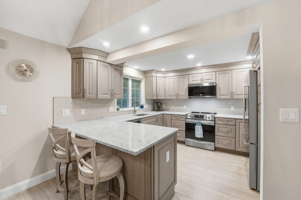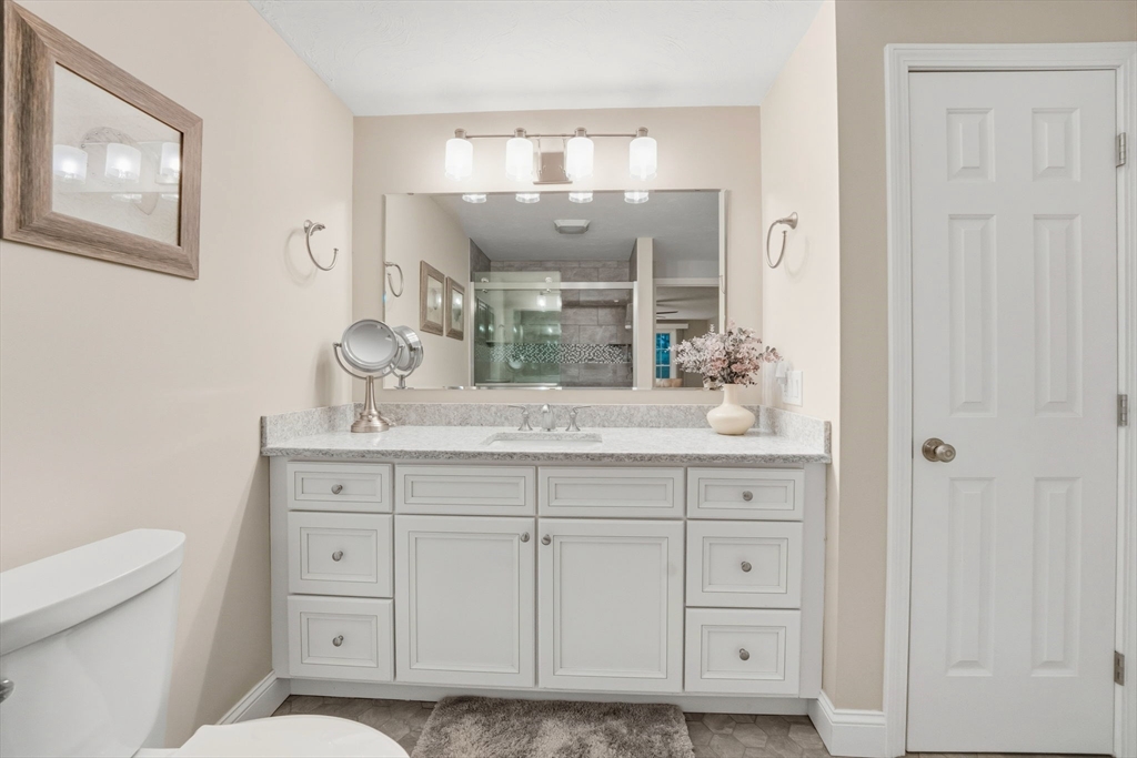 RARE 55+ FIND! Updated End-Unit w/1st Floor Primary Suite & Nature Views out your back deck in much sought after Olde Colony Village! This unit was beautifully updated in 2021 including luxury vinyl plank flooring (throughout)! Enter through your front porch or the garage into your open foyer which flows info your living room w/gas fireplace. Your open floor plan continues into your dining room w/vaulted ceilings & skylight which flows into your chef's kitchen updated in 2021 w/high-end cabinets, granite counters & SS appliances. Down the hall is your HUGE primary bedroom/suite w/walk-in closet and luxury full bath w/tiled shower. A half bath & separate laundry room round out the 1st floor. Your 2nd level has a spacious loft area, 2nd bedroom with/closet, bonus 3rd bedroom/home office and another full bath. The lower-level is waiting to be finished or great for storage/workshop. Gas furnace & central AC units replaced in 2019! Toss in a 2-car garage and you'll fall in love! Don't wait!