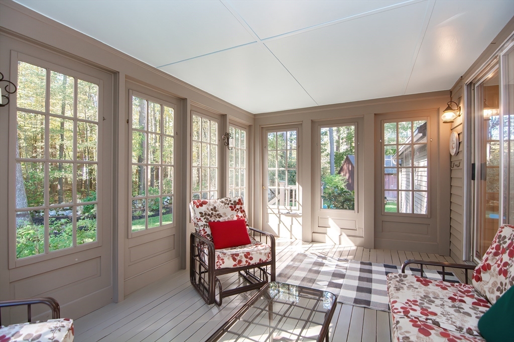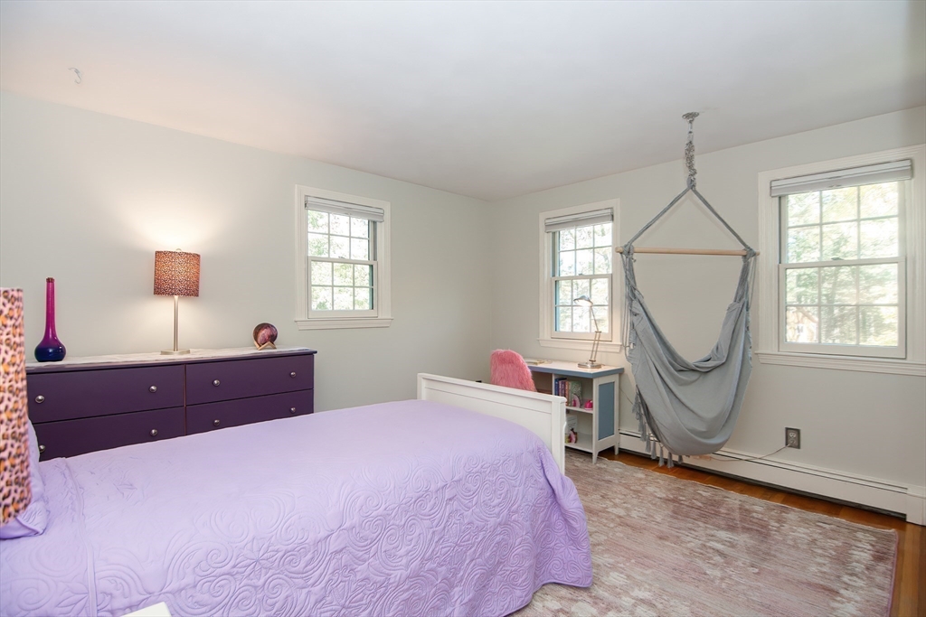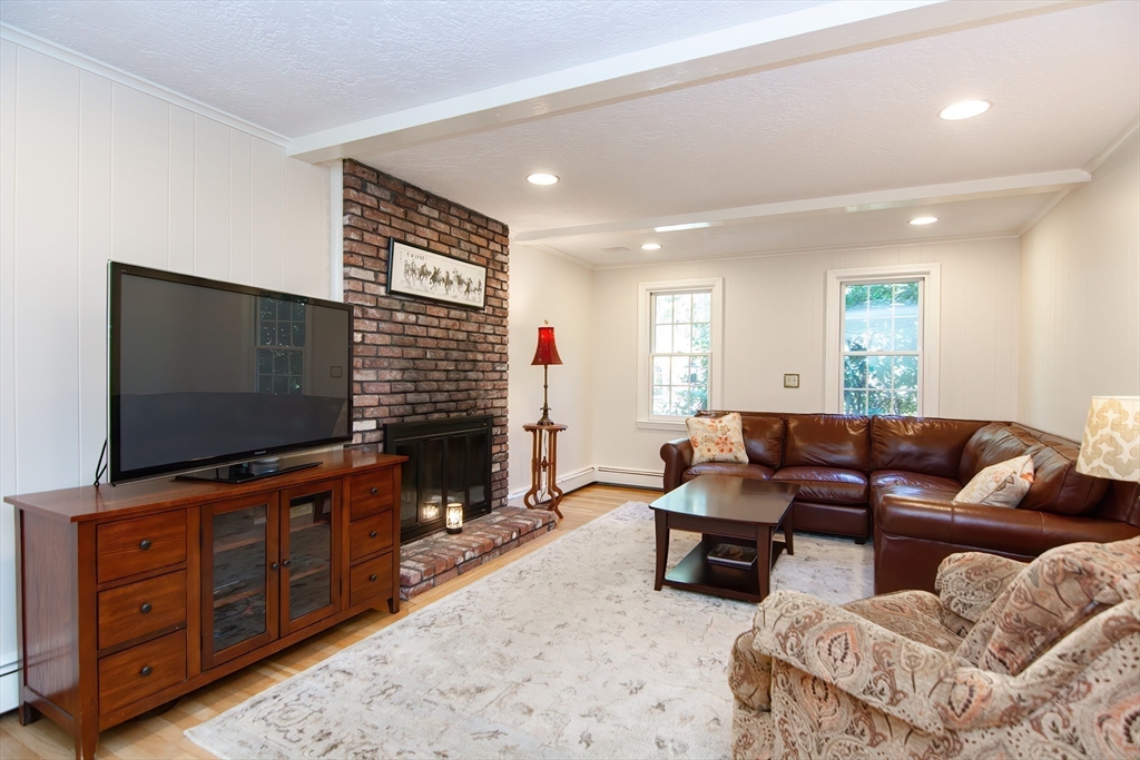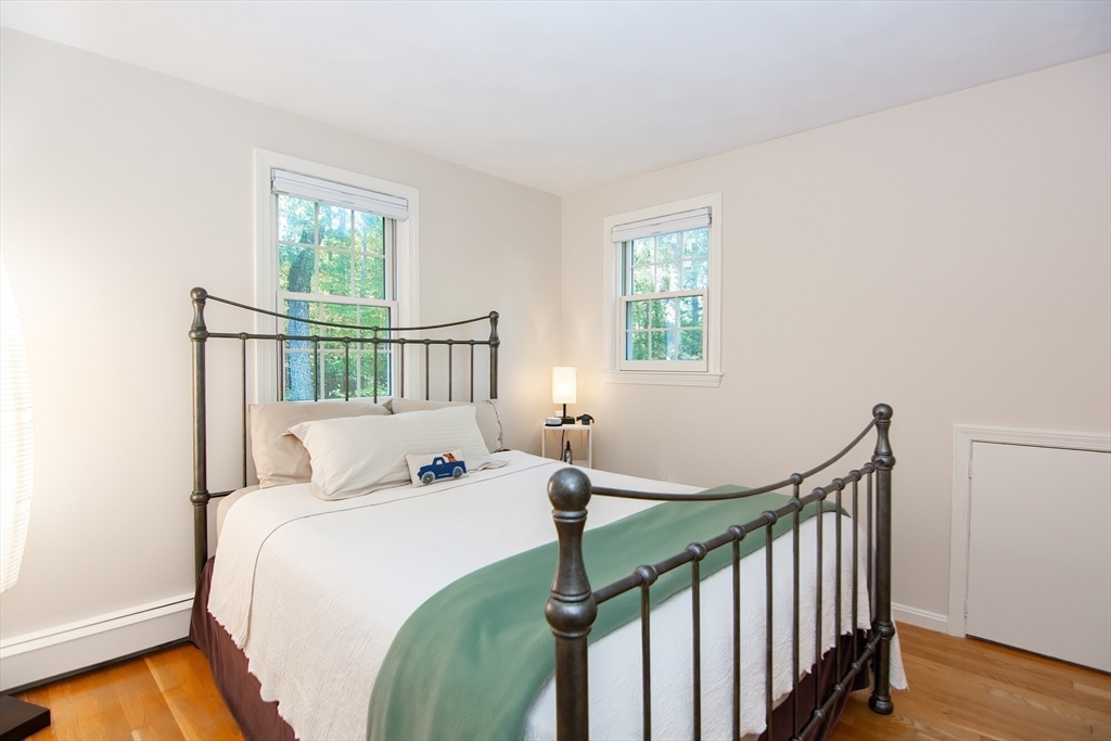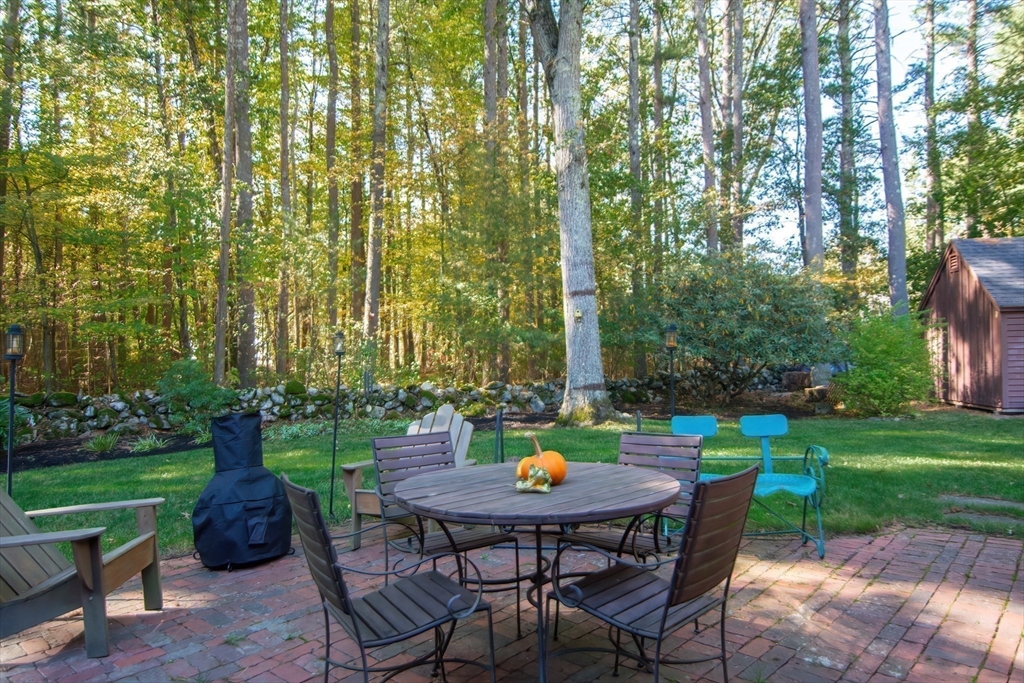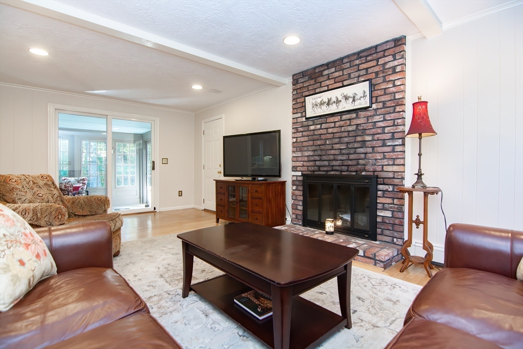 RARE FIND!!! This Classic Colonial is tucked away in a North Sudbury neighborhood cul-de-sac on the border of Concord. Relax in the beautifully landscaped level yard with stone walls, brick patio, custom 12x16 shed and lovely gardens that look out onto protected woods and nature. The interior features a traditional floor plan with an elegant office with cathedral ceilings, front to back fireplaced living room, formal dining room, eat-in kitchen, half bath and fireplaced family room which opens to a 3 season porch as well as a 2-car attached garage. The second floor boasts 4 bedrooms and 2 full bathrooms. The lower level has a spacious finished playroom. Close to schools, rail trail, quaint shops, restaurants, rich history and access to major routes and commuter rail.