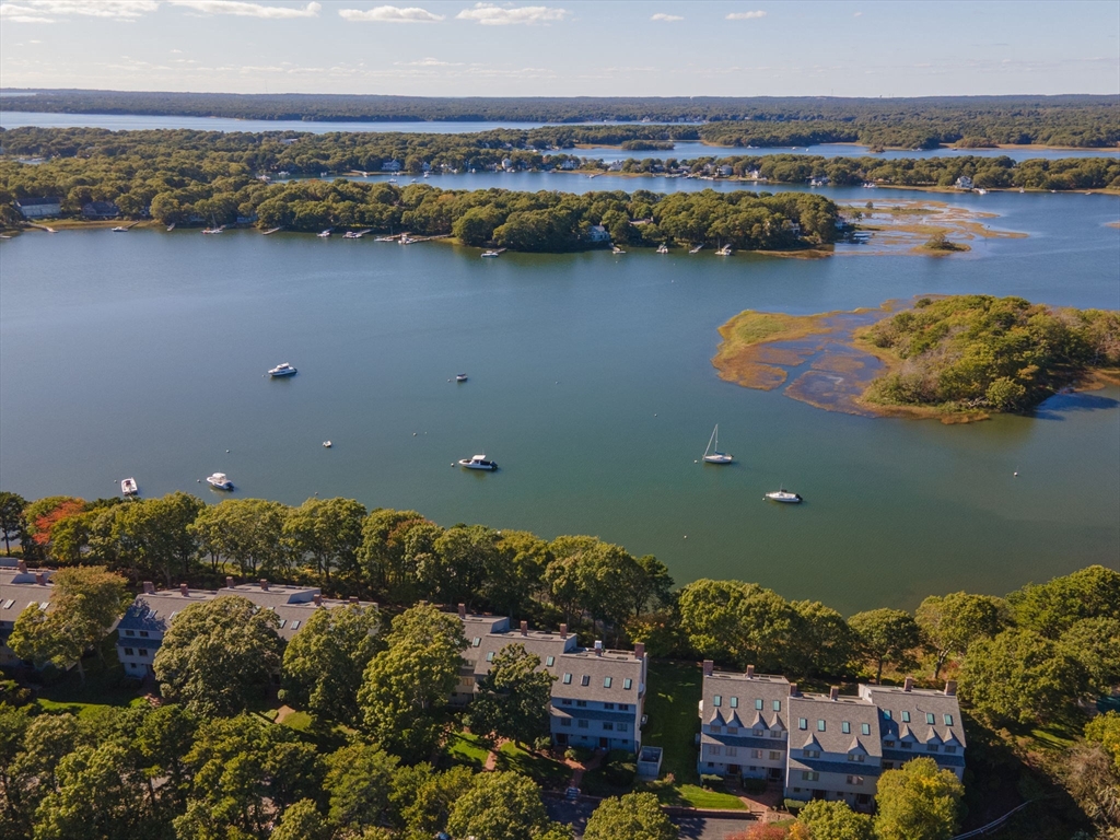 Discover waterfront luxury at 381 Great Oak Road, Unit 9, in Mashpee’s premier Bayview Association. This stunning residence blends modern upgrades with breathtaking views and resort-style amenities, including a private dock, pool, and tennis courts—all within a secure, gated community.The bright, open layout features a white designer kitchen with elegant finishes, a built-in dining area, and soaring ceilings. Step down to the waterfront living room with a gas fireplace and slider to a private patio overlooking the water—perfect for coffee or cocktails by sunset.Upstairs, the primary suite offers a private balcony and full en-suite bath, while a second bedroom and hall bath complete the level. The top floor includes a sitting area, wet bar, and roof deck ideal for entertaining. A cathedral-ceiling great room, ample storage, and basement add function to this beautifully designed home—offering the perfect blend of comfort, style, and Cape Cod coastal living.