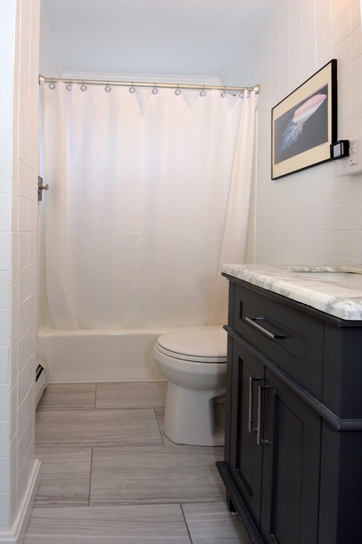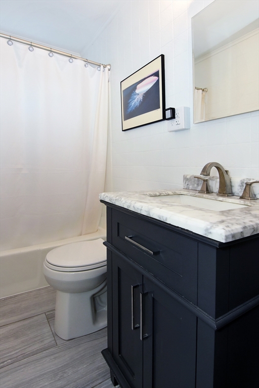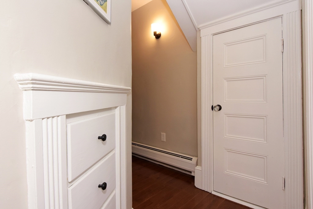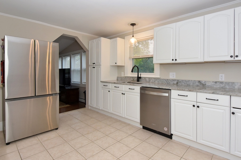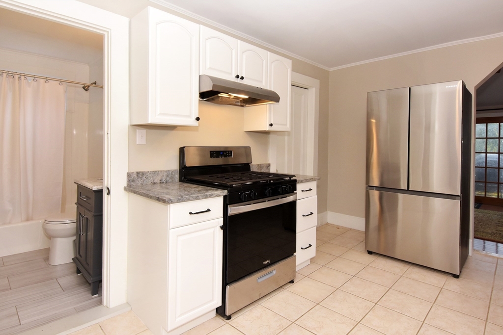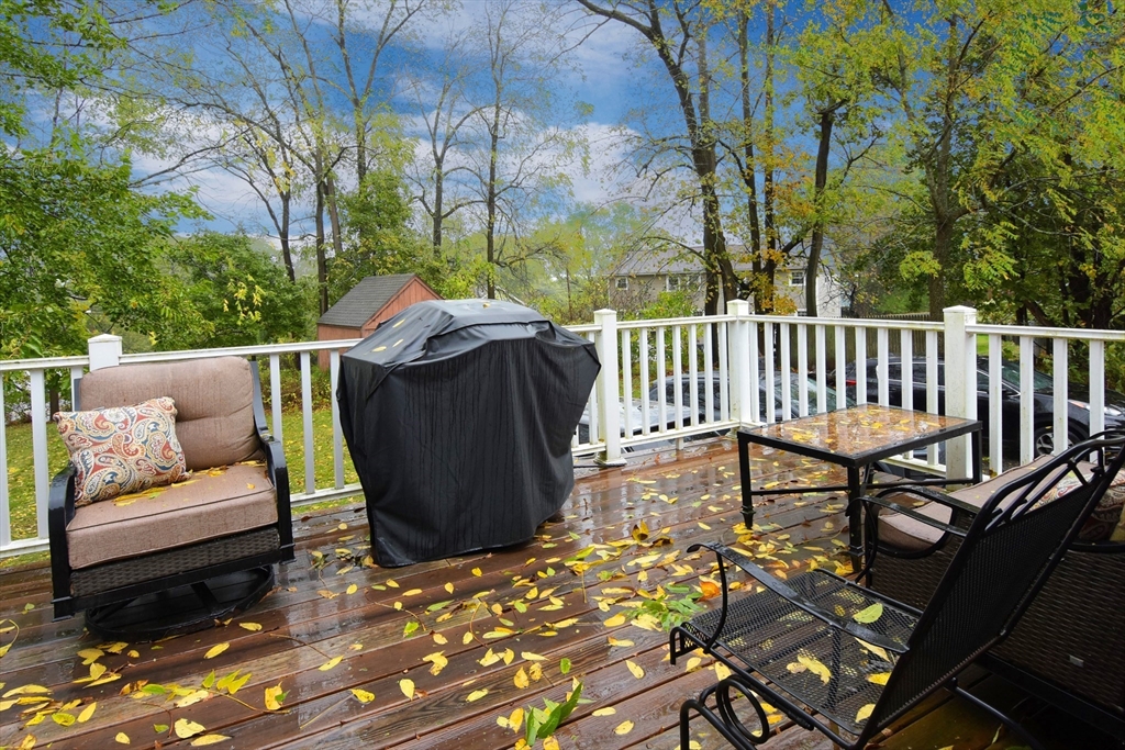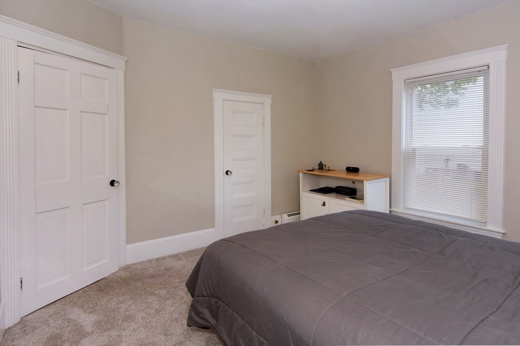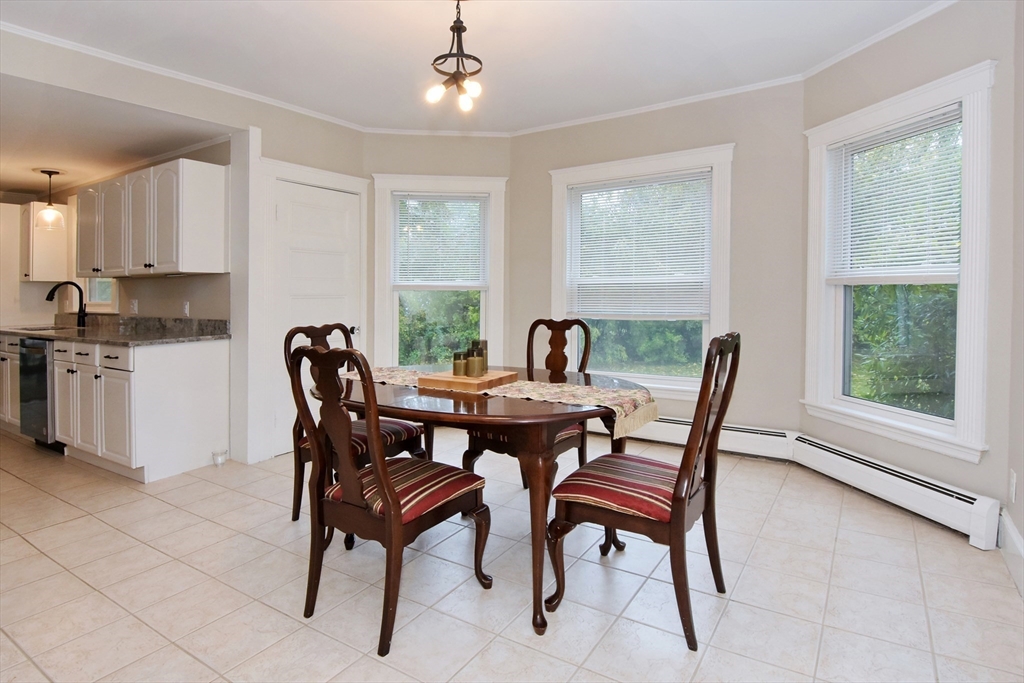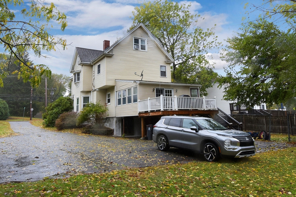 1900's Victorian has character and charm; converted 2003 to 2 condo units in the Bradford area of Haverhill. Front door entry is secure via lockbox code; entry hall has additional built-in drawers and wall sconce lighting. Enjoy 1st fl living in this 2 BR, garden style unit w/open concept floorplan. Front room is described as main BR features fireplace, wall inset mirror, 2 pocket doors, ceiling fan/light and closet (now used as music room). Kitchen is fully updated w/SS sink/appliances plus granite counters, pendant lighting and abundant cabinetry. Full bathroom w/tub/shower/granite countertop. Rear room featured as livingroom has ceiling fan/French doors leading to spacious deck. Window blinds found throughout. Interior access to basement for laundry. Top of the line on-demand water/heater. Country style living w/Bradford Ski Hill and farms nearby and close to urban amenities and public transit. Beautiful front porch and stairsteps w/rear deck lead to common outdoor area to enjoy!