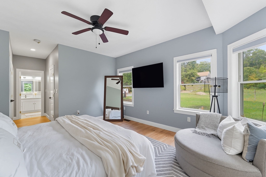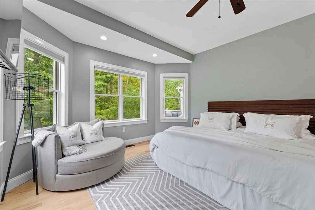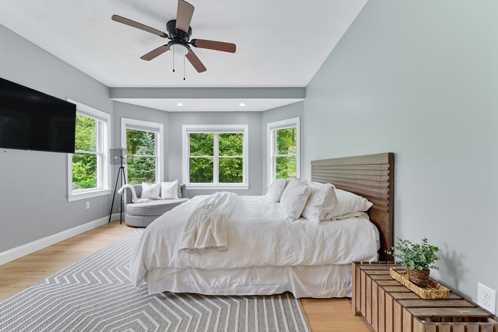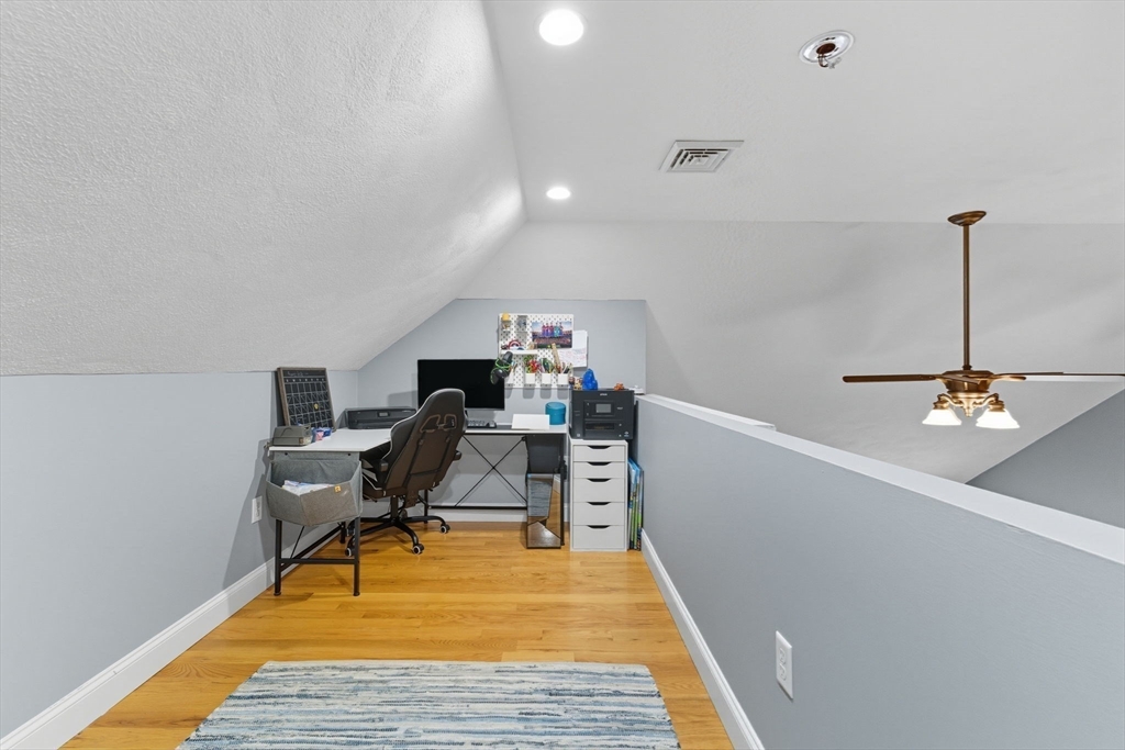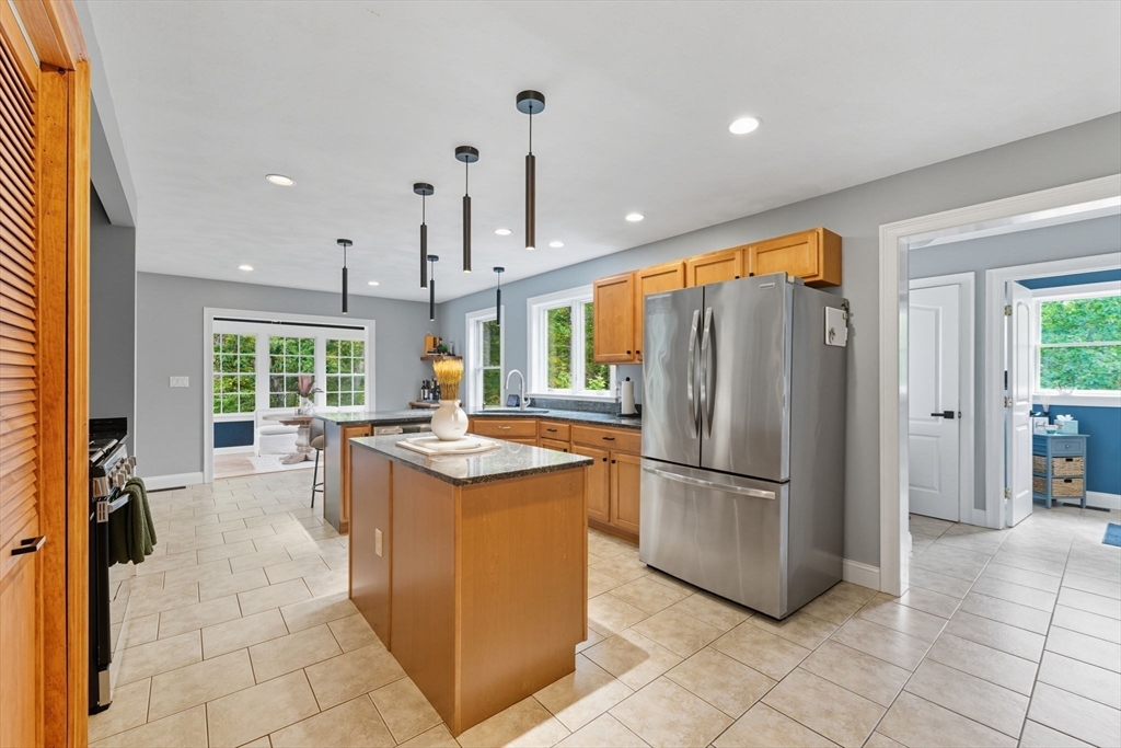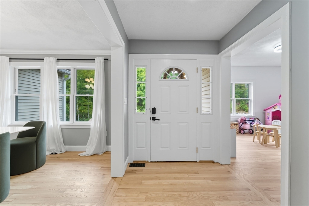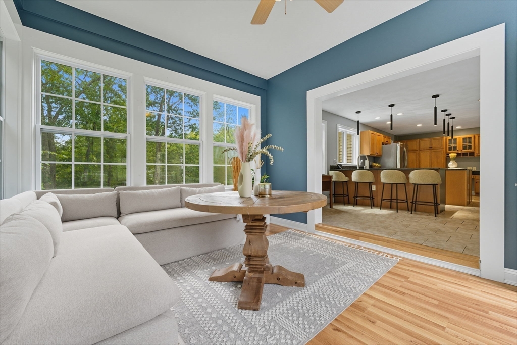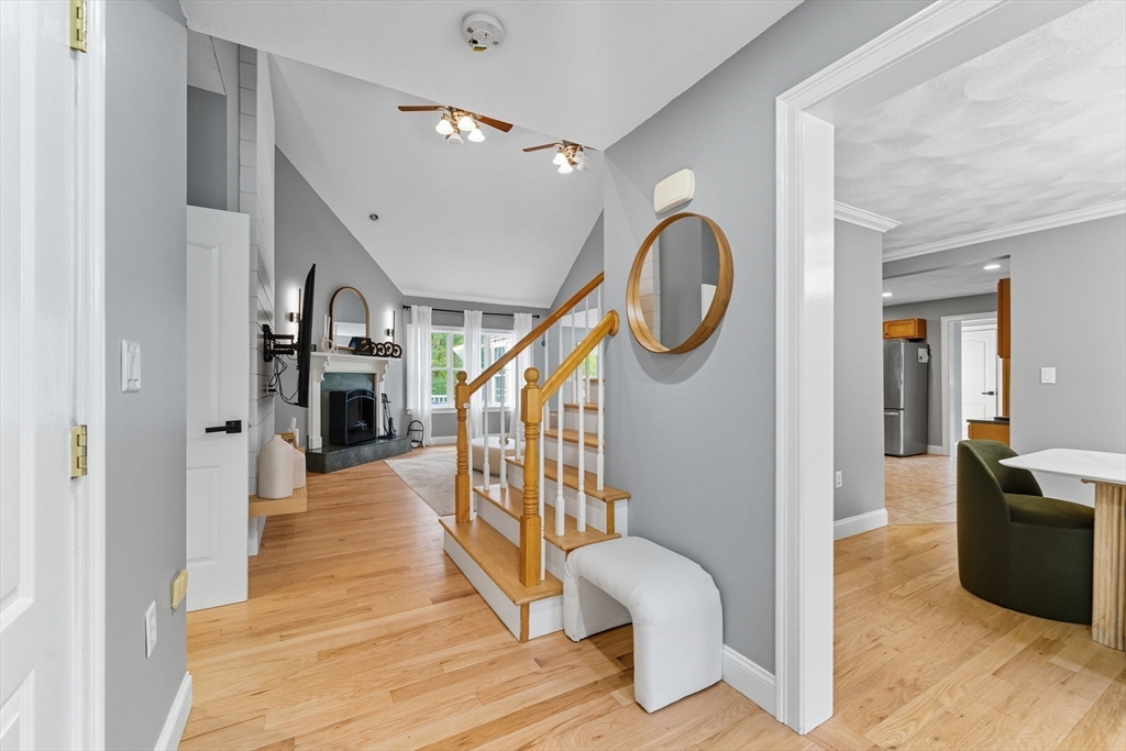 This beautifully maintained 4-bed, 2.5-bath home features a first-floor primary suite, cathedral ceilings in the expansive family room, and beautifully refinished hardwood floors throughout. Enjoy every season in the bump out sunroom where the trees paint a serene picture from every angle. The open layout is perfect for everyday family living and also entertaining. Upstairs offers 3 more bedrooms and a full bath, including a with a cozy loft overlooking the living area- perfect for a homework nook! The walkout basement offers amazing potential for future living space s well. Outside, enjoy the lush, well-kept yard supported by a brand new sprinkler system. Located just 2 minutes from I-95 and a short drive to the restaurants and shops of downtown Newburyport, this home offers the perfect blend of a practical home and North Shore tranquility. Nothing to do but move in and enjoy low-maintenance living!