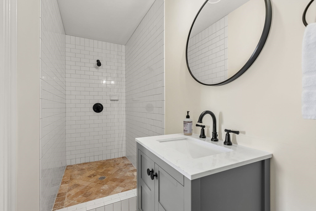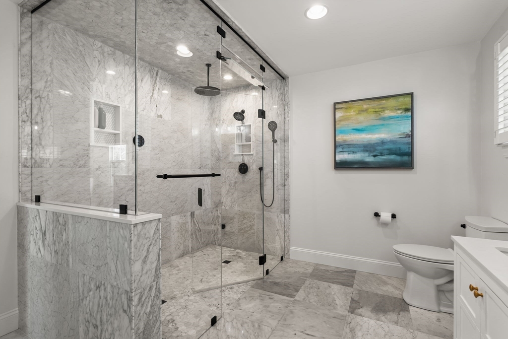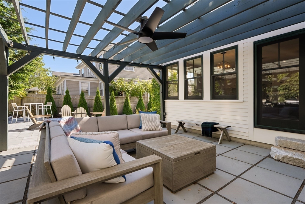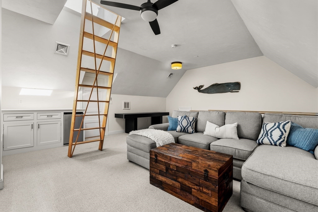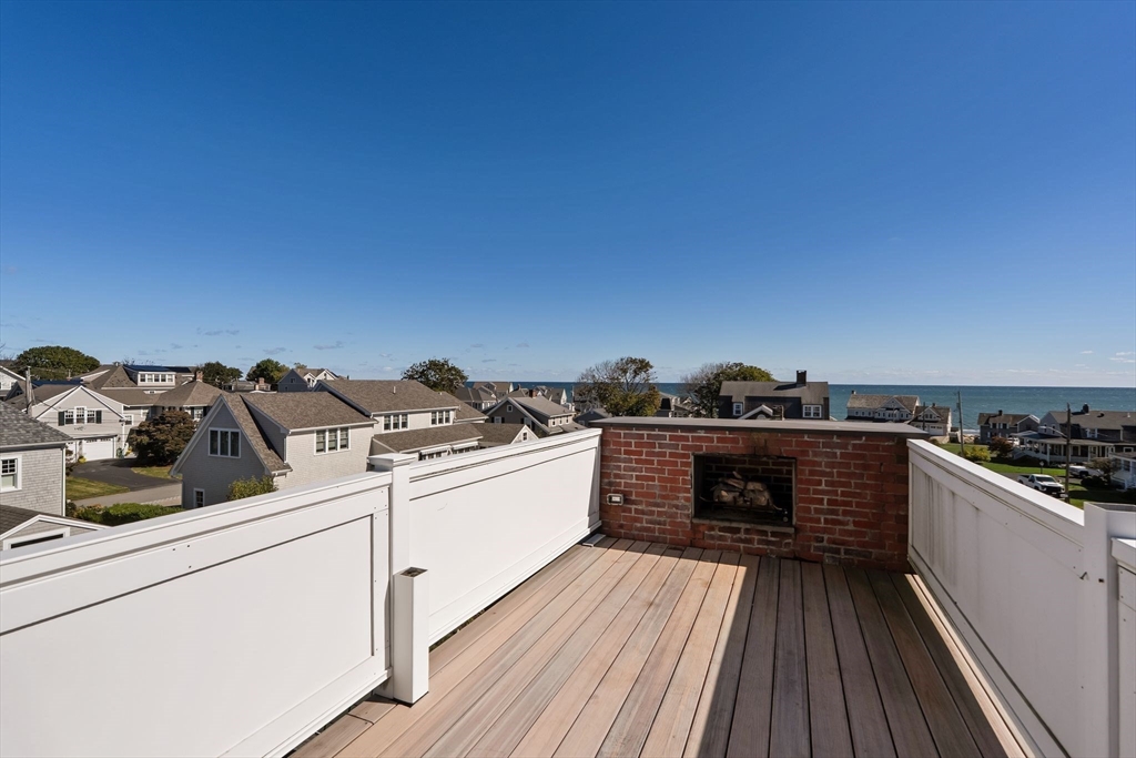Welcome to your coastal dream home! This beautifully (and significantly - see list) updated home features a stunningly renovated kitchen with inlay cabinets, quartz countertops and high-end appliances. The refreshing layout offers flow from the indoors to the outside. Relax on the inviting wrap-around farmer’s porch which steps onto the grassy yard, or head out back to your private veranda/courtyard oasis—perfect for entertaining with a built-in fire pit, outdoor living room, and mounted TV, ideal for fall football nights. Turnkey inside from new paint to lighting to bathrooms and a vaulted-ceiling primary suite complete with a spa-like steam shower, heated floors, and a generous walk-in closet. Two other en-suite bedrooms plus a second floor loft offer a unique layout for any age. A third floor bonus room plus access to the ROOF DECK where you can enjoy fireworks, sunsets and stargazing. Superb location with views, just steps to The Spit and minutes to Scituate Harbor & Commuter Rail.