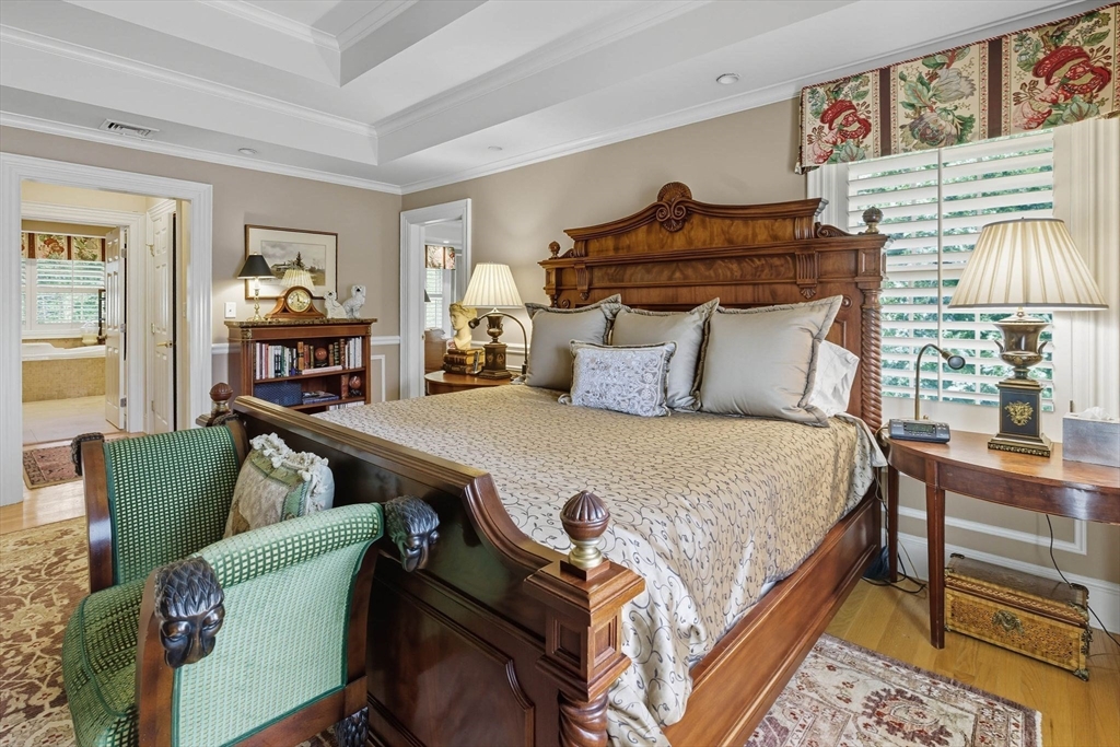 Located on a private cul-de-sac in the prestigious Smith’s Crossing neighborhood, 3 Warren Drive offers refined living on a beautifully landscaped lot with a heated saltwater pool, spa, and maintenance-free deck, perfect for indoor-outdoor entertaining. This 5-bedroom, 5.5-bath Colonial features over 5,000 sq ft of thoughtfully designed space. Inside, custom millwork, hardwood floors, and plantation shutters add warmth and character. A two-story family room with floor-to-ceiling windows and gas fireplace opens to a high-end chef’s kitchen. Formal living and dining rooms, a private office, den, and mudroom with laundry provide everyday function and elegance. The walk-out lower level includes a second kitchen, exercise room, steam shower, and direct access to the backyard oasis. The luxurious primary suite offers two walk-in closets, spa bath, fireplace, and private balcony. Located in the top-rated Masconomet school district. Recent system upgrades offer added comfort and efficiency.