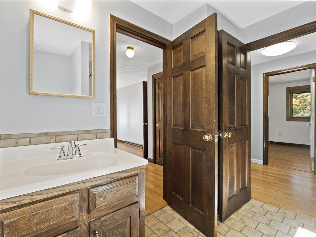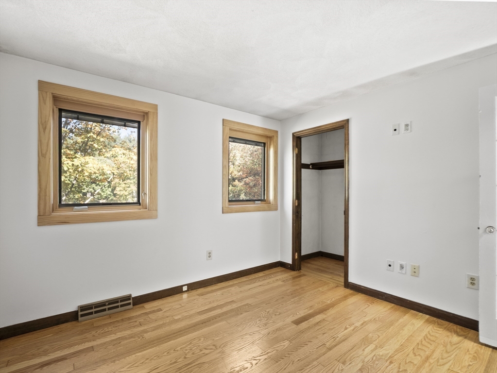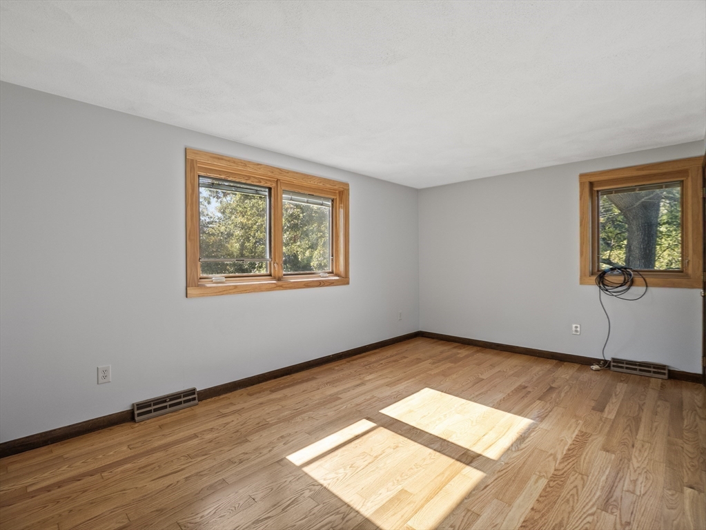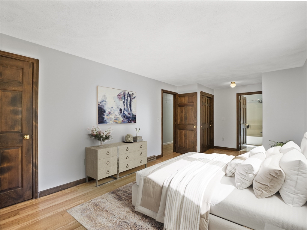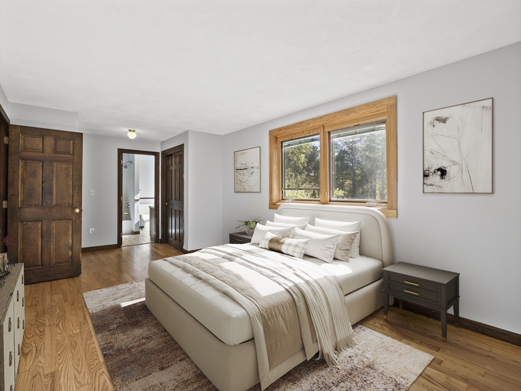 Warm & Inviting Colonial in a Prime Location, ideally situated at the end of a quiet cul-de-sac, just minutes from the bike path, shopping, and major highways! This home offers the perfect blend of comfort, and convenience. Enjoy peace of mind with many recent updates, including a newer roof, furnace, windows, hot water heater, and seller-owned solar panels—a great way to save on energy costs. The interior has been freshly painted. Fall in love with the gorgeous, mint-condition hardwood floors throughout. The bathroom features dual access from both the primary bedroom and the hallway for added convenience. Full walk-out basement with daylight windows gives the potential for more living space! Oversized composite deck overlooks a serene 2 acre plus lot where you can enjoy the amazing outdoor space, cook-outs & gatherings . Who doesn't want a whole house generator and central air! See Floor plan on the clip in MLS. Book your showing today!