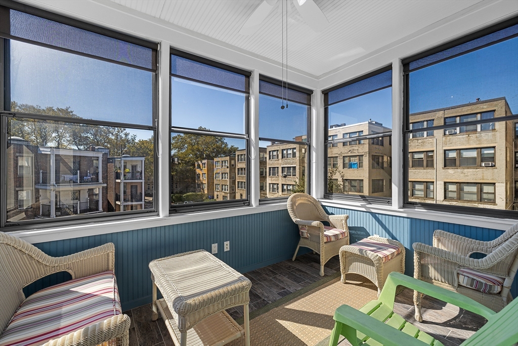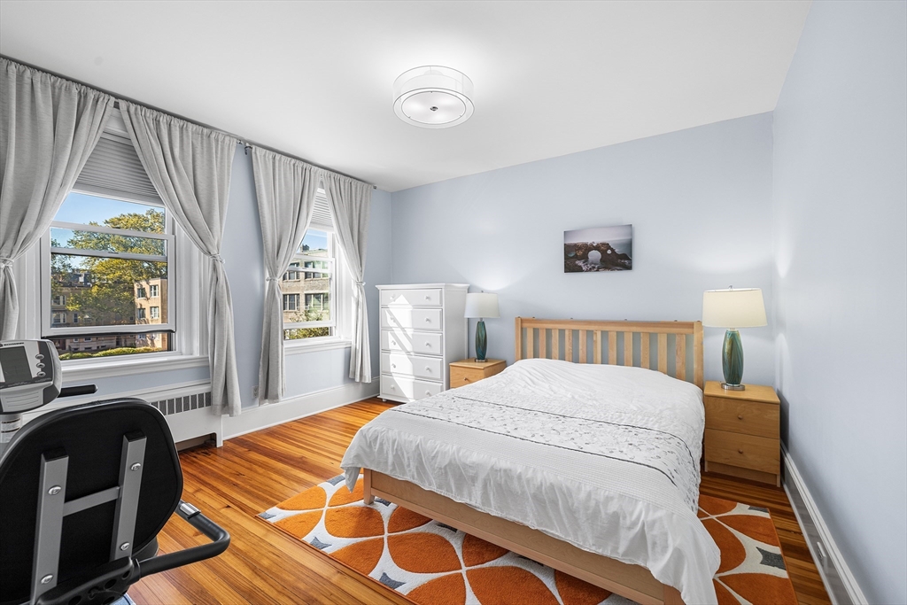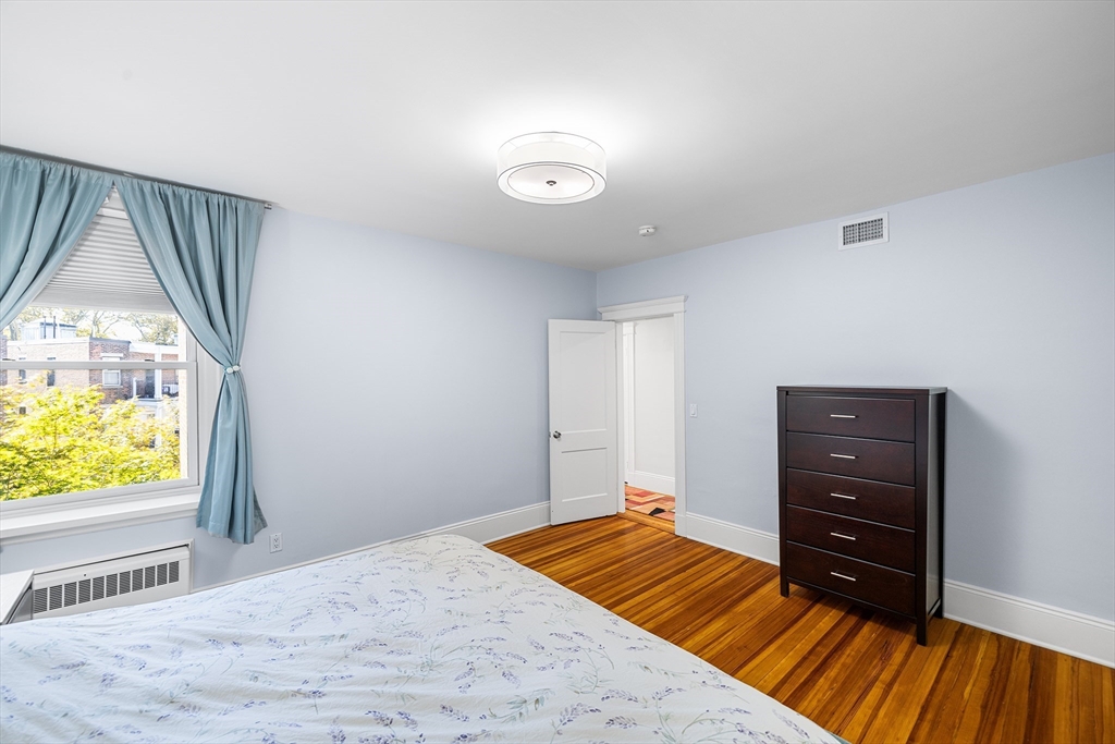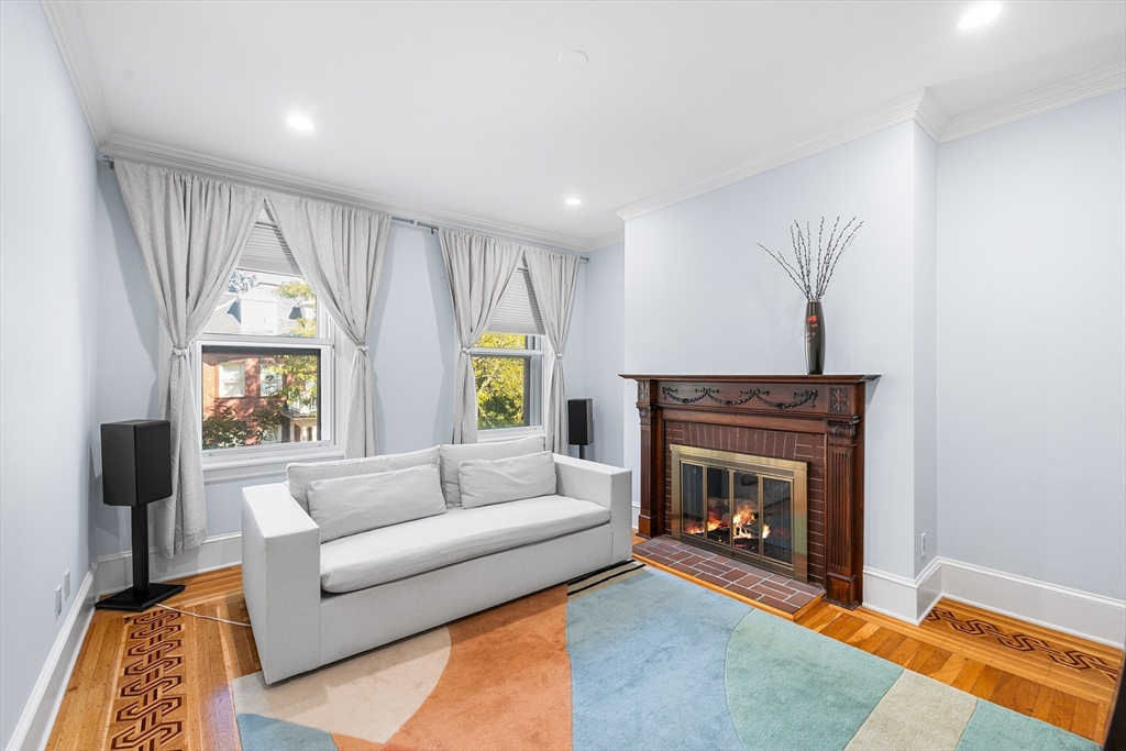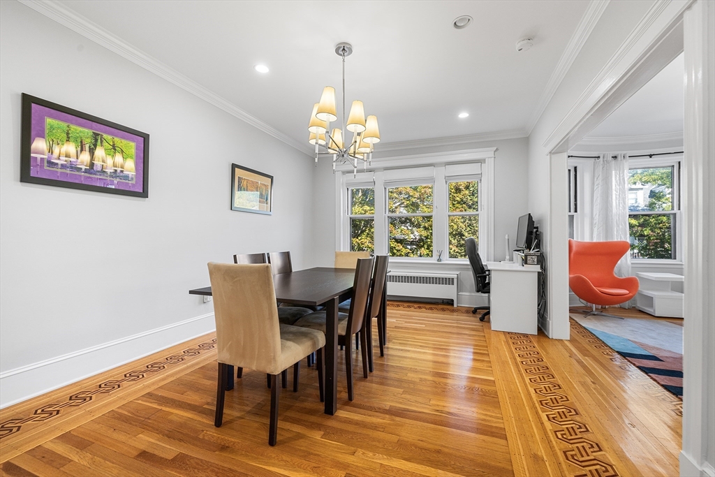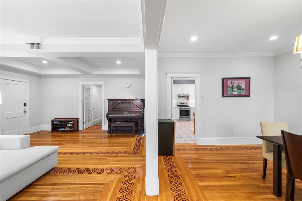 Tucked away on tree-lined Browne Street near Coolidge Corner, this rare and expansive floor-through 4-bedroom home includes an exclusive 2-car garage plus an additional off-street space—three dedicated parking spots in total. A gracious foyer opens to sunlit, generously scaled rooms, including a fireplaced family room and oversized living and dining areas. The updated eat-in kitchen features new appliances, stone countertops, and ample storage. A private hallway leads to four bedrooms, two full baths, and a peaceful three-season porch ideal for a home office or reading nook. With central air, high ceilings, large private storage in the basement, and original architectural details, this home blends classic charm with modern comfort. Set in a well-maintained, 100% owner-occupied building with a newer roof, boiler, and updated electrical. Just moments to the B & C lines, top schools, local parks, and Coolidge Corner's shops and restaurants—this is Brookline living at its best!