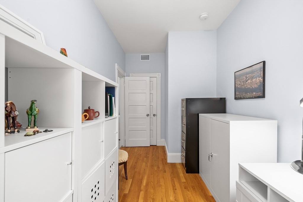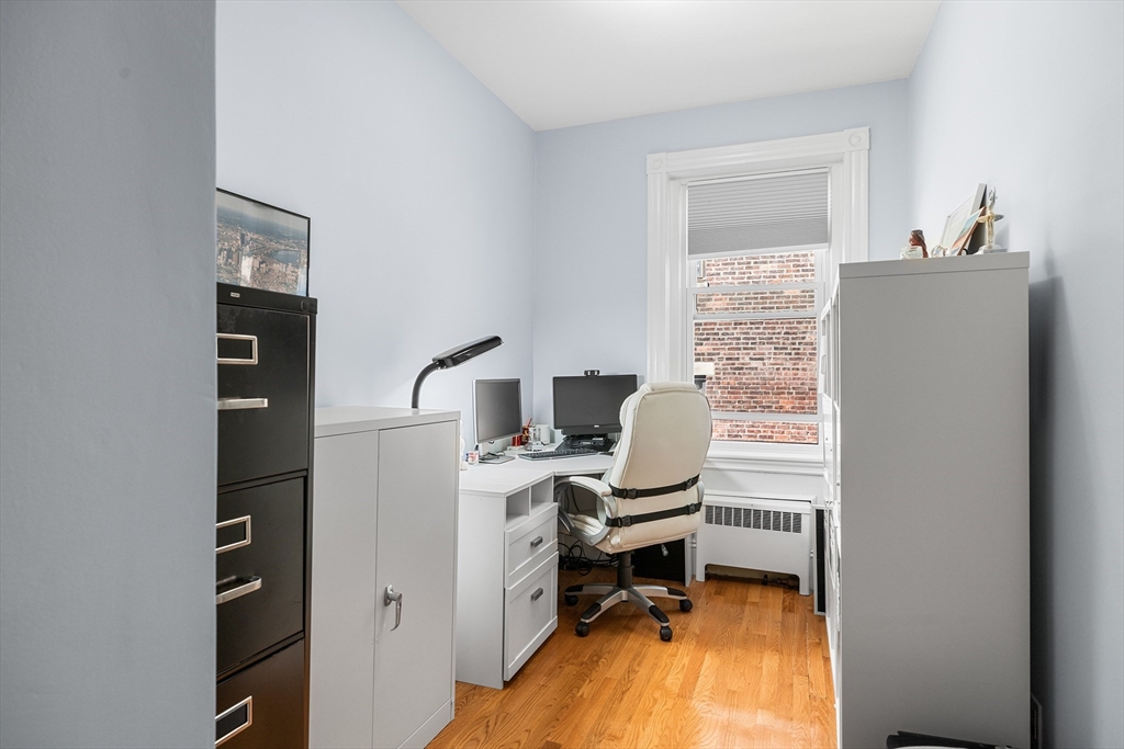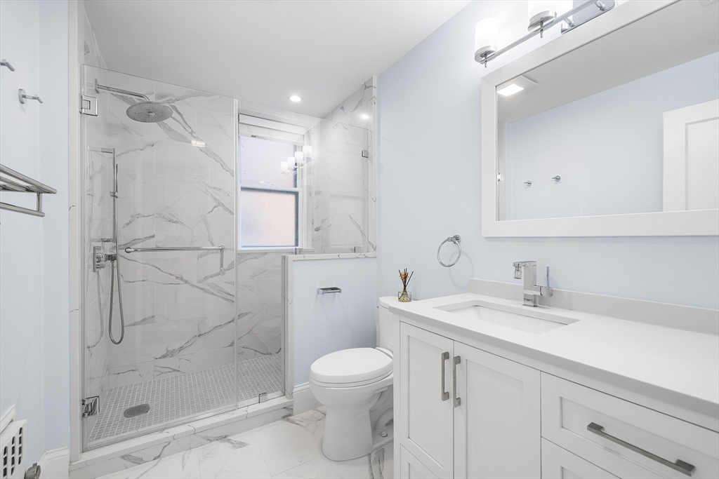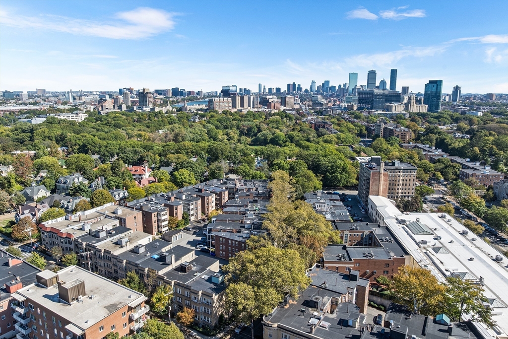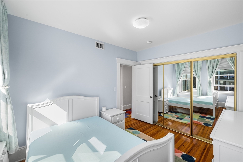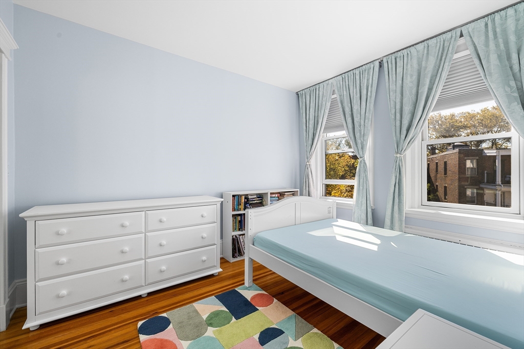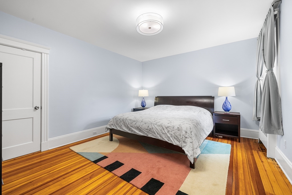 Tucked away on tree-lined Browne Street near Coolidge Corner, this rare and expansive floor-through 4-bedroom home includes an exclusive 2-car garage plus an additional off-street space—three dedicated parking spots in total. A gracious foyer opens to sunlit, generously scaled rooms, including a fireplaced family room and oversized living and dining areas. The updated eat-in kitchen features new appliances, stone countertops, and ample storage. A private hallway leads to four bedrooms, two full baths, and a peaceful three-season porch ideal for a home office or reading nook. With central air, high ceilings, large private storage in the basement, and original architectural details, this home blends classic charm with modern comfort. Set in a well-maintained, 100% owner-occupied building with a newer roof, boiler, and updated electrical. Just moments to the B & C lines, top schools, local parks, and Coolidge Corner's shops and restaurants—this is Brookline living at its best!