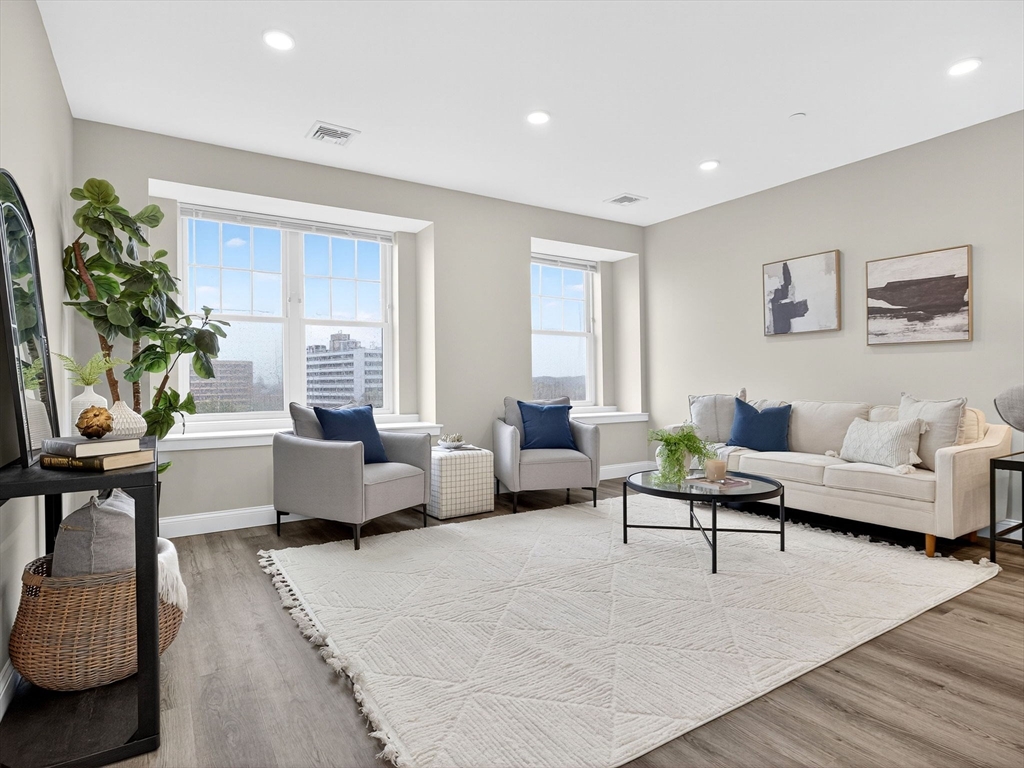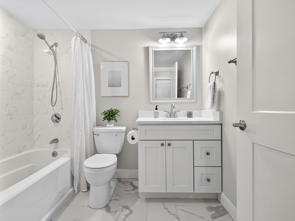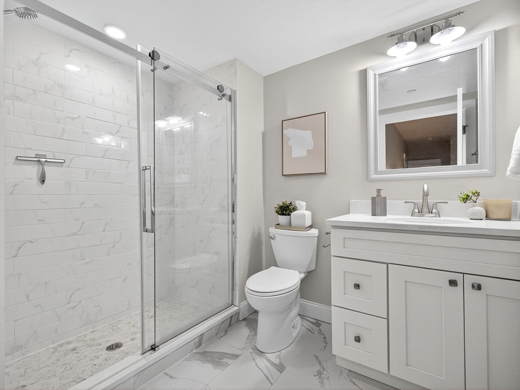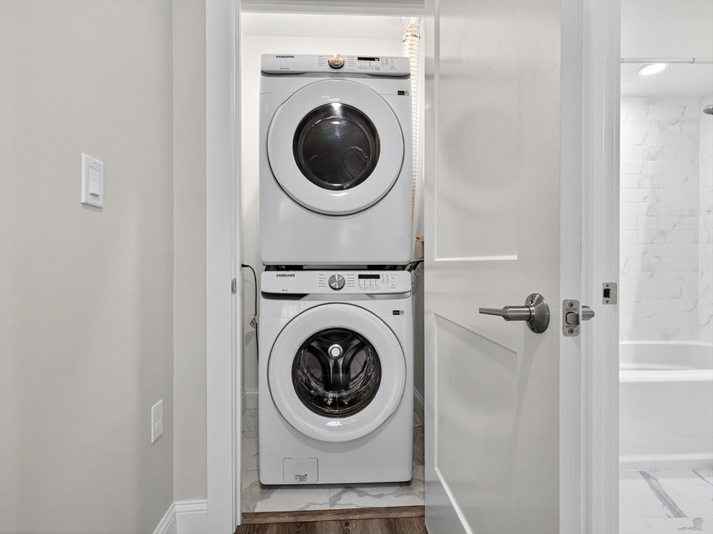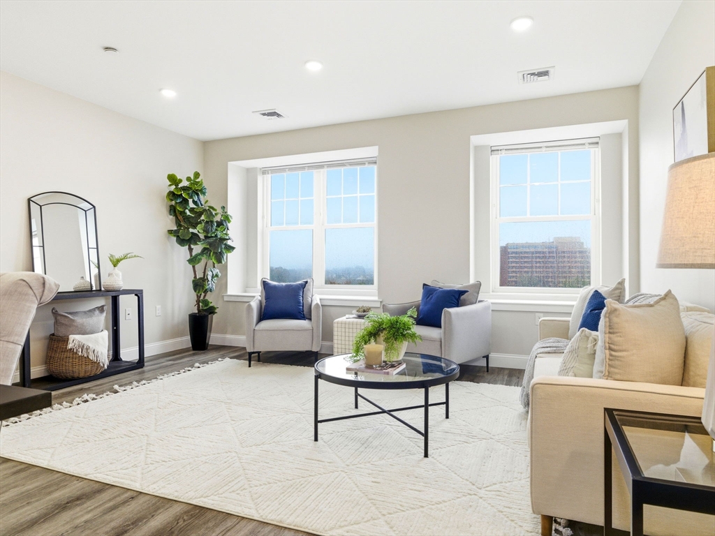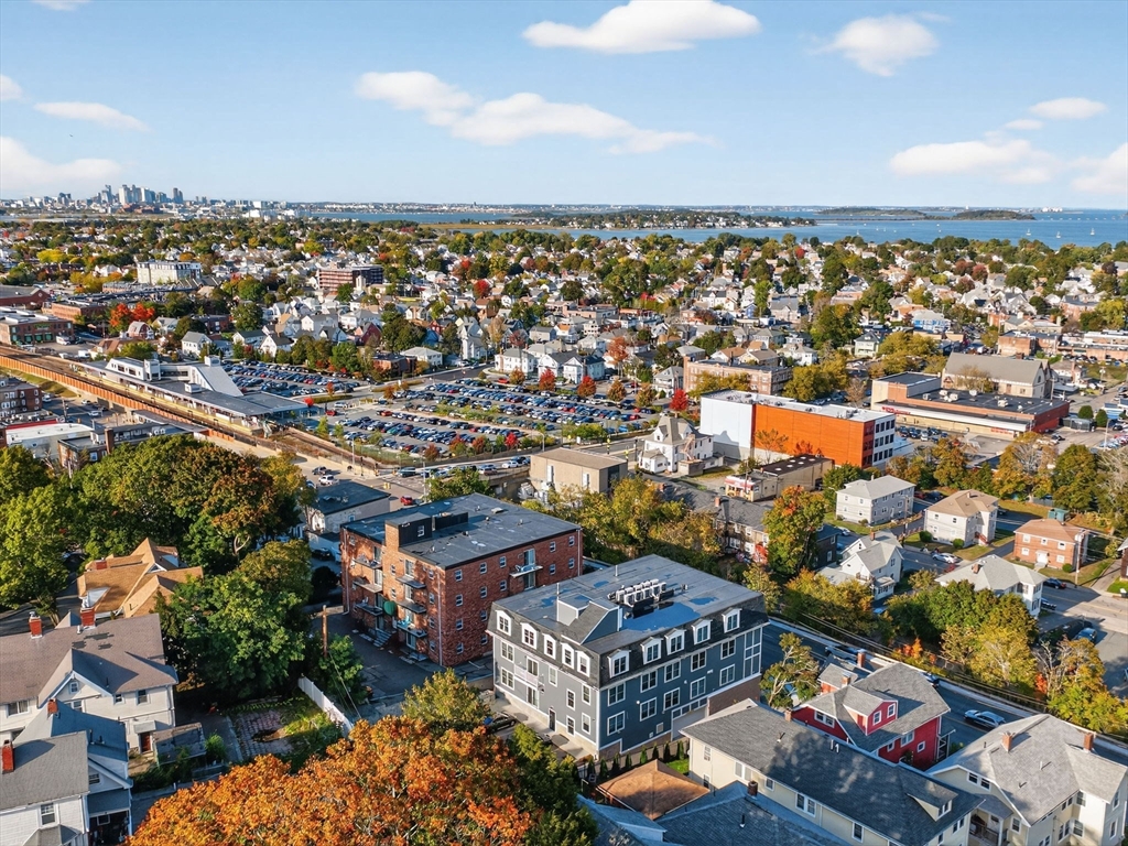 This centrally located Quincy condo perfectly suits a work-from-home lifestyle while offering unbeatable commuter convenience. With two deeded parking spots (including a garage space with EV charging) and the Wollaston T stop just one block away, commuting to work or heading into Boston couldn't be easier! Not to mention how close you are to nearby restaurants, grocery stores, parks, and Wollaston Beach. Perched on the top floor, this corner unit is flooded with natural light thanks to the tall windows scattered throughout the unit. The open concept floor plan has plenty of space for dining, entertaining, and working from home alike, while the eat-in kitchen boasts stainless steel, energy-efficient appliances and a sizable island. Both bedrooms easily fit king-sized beds, and the primary suite includes a walk-in closet and ensuite bath. The building’s well-run HOA offers a friendly community - one that's waiting to welcome its newest residents!