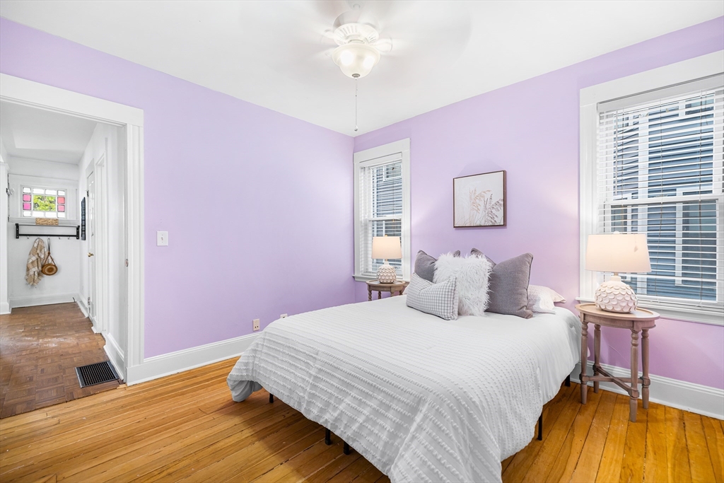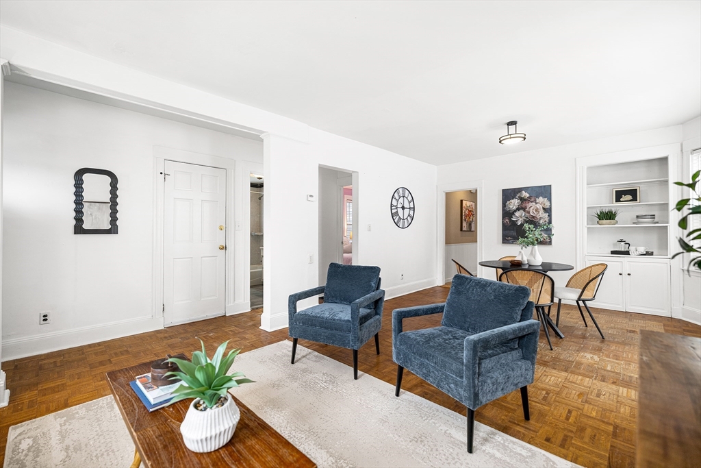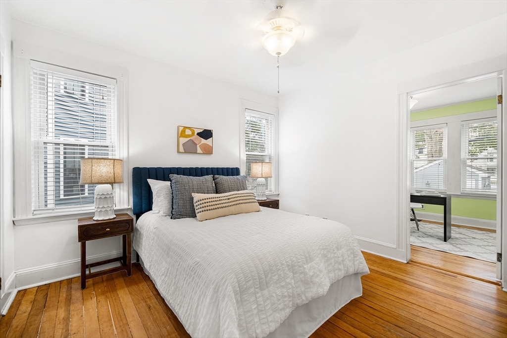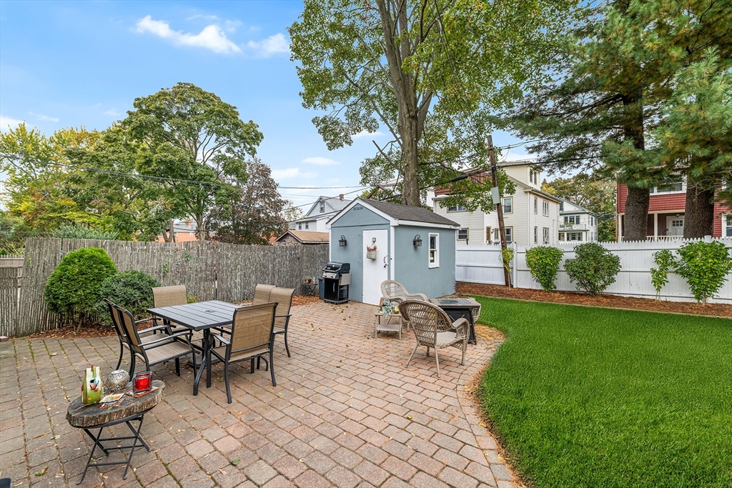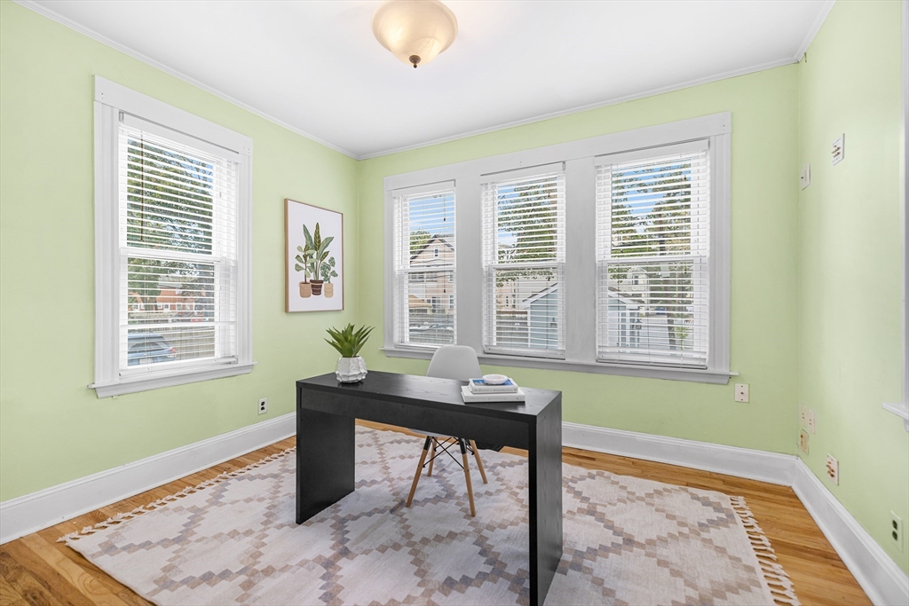 Bright and welcoming 2+ bedroom condo featuring a spacious living/dining room with adjacent kitchen, stainless appliances, in-unit laundry, and tons of storage. Both bedrooms offer hardwood floors and great closets. The rear bedroom includes an attached office that can easily serve as a third bedroom. Excellent bonus space in-unit with a large shared basement fitness room. Enjoy a fenced backyard with greenery, patio, and shed, plus plenty of driveway parking—a rare find! Updates include fencing, exterior painting, and front walk, W/D, roof, and countertops. Fantastic location close to dining, shopping, theater, and bike trail. Take advantage of the convenience in East Arlington- equidistant to Alewife and Davis Sq, and less than one mile from Arlington Center!