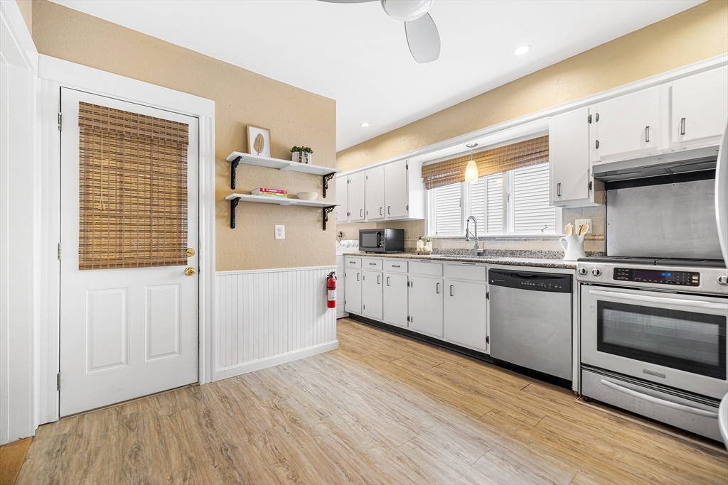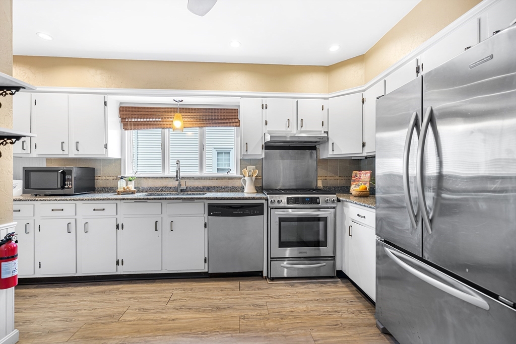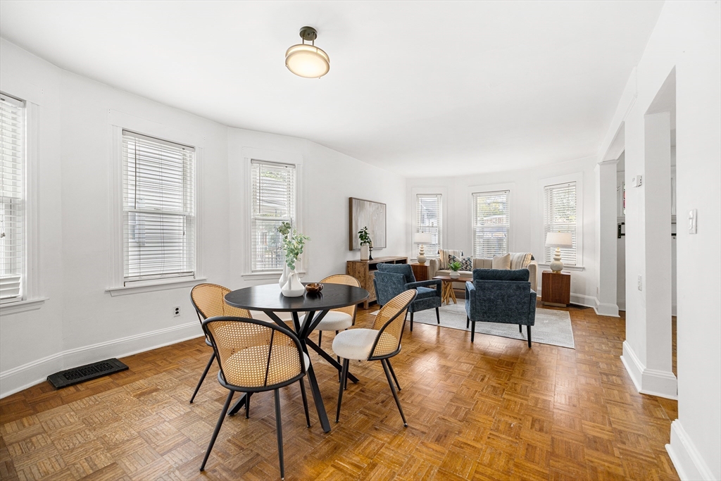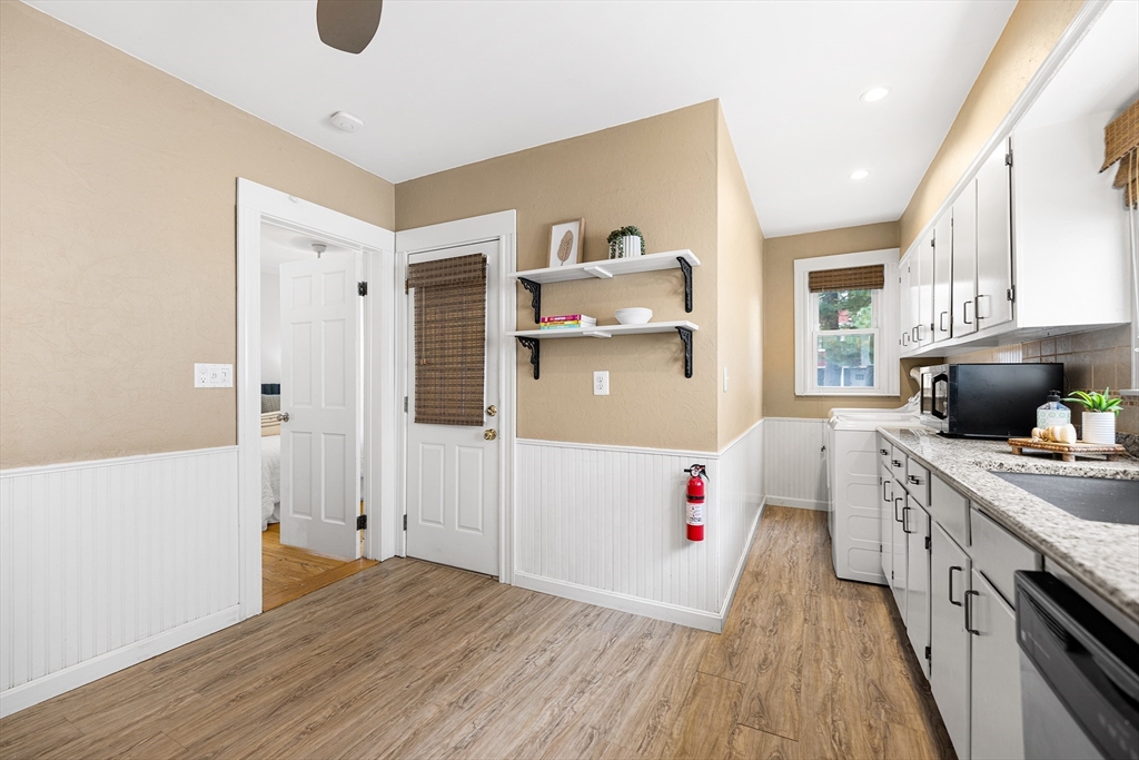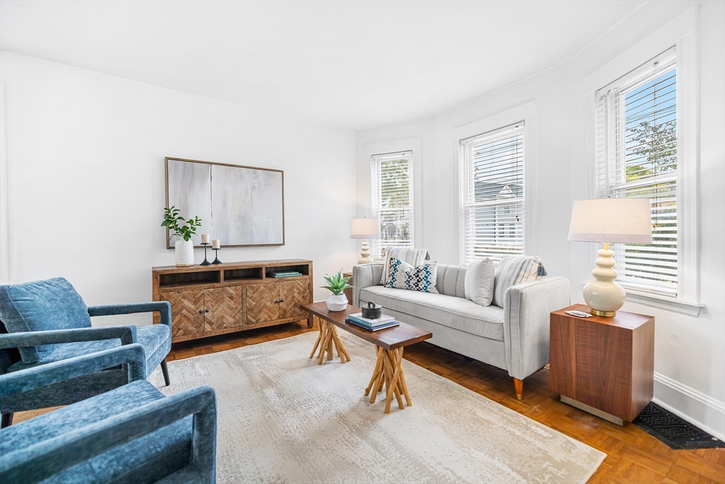 Bright and welcoming 2+ bedroom condo featuring a spacious living/dining room with adjacent kitchen, stainless appliances, in-unit laundry, and tons of storage. Both bedrooms offer hardwood floors and great closets. The rear bedroom includes an attached office that can easily serve as a third bedroom. Excellent bonus space in-unit with a large shared basement fitness room. Enjoy a fenced backyard with greenery, patio, and shed, plus plenty of driveway parking—a rare find! Updates include fencing, exterior painting, and front walk, W/D, roof, and countertops. Fantastic location close to dining, shopping, theater, and bike trail. Take advantage of the convenience in East Arlington- equidistant to Alewife and Davis Sq, and less than one mile from Arlington Center!