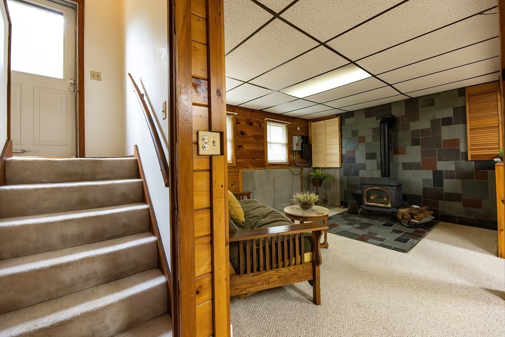 Welcome Home to 37 Sutton Rd! This inviting 3 bedroom, 2 full bathroom split-level is ready for its next chapter. The main floor features a bright living room with vaulted ceilings, beautiful exposed beams, and a cozy wood-burning fireplace, along with a open concept kitchen/dining area, three comfortable bedrooms with closets, and a full bath. The open kitchen and dining area flow nicely to a large back deck that is perfect for relaxing or entertaining. Downstairs offers a versatile bonus living area with propane stove — think family room, home office, or guest suite — plus a second full bath and access to the attached single-car garage. With solid bones and endless potential, just a few updates to suit your style will make this home truly your own. Conveniently located minutes from Rt 146, Mass Pike, Rt 20, and 395, this Millbury gem blends charm, comfort, and opportunity! Come see it today! Showings to begin Thursday 10/16.