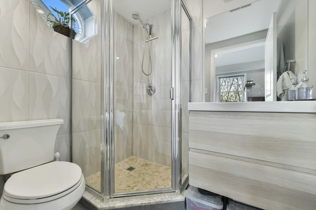 Located at 47 Sargent St U:3, Boston, MA, this attractive condominium offers a superb opportunity to own a home in great condition. Imagine preparing culinary masterpieces in the kitchen, complete with a large kitchen island where you can gather with friends, stone countertops that offer both beauty and durability, and shaker cabinets that provide ample storage; the kitchen also features a backsplash, a stovetop, and an island range hood. The open floor plan allows for effortless movement and a wonderful sense of spaciousness. Retreat to the bedroom, where an ensuite bathroom offers a private oasis, and a walk-in closet provides generous storage space. The bathroom features a walk-in shower. The property includes a balcony, perfect for enjoying the outdoors, and a single garage space. This condominium, built in 2019 and located on the second floor, offers 1224 square feet of living area, encompassing two bedrooms on opposite ends and two full bathrooms, all within a single-story layout