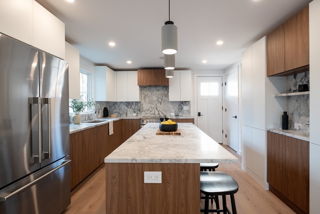 Thoughtfully reimagined and expanded 4-bedroom, 3.5-bathroom home in a coveted Needham neighborhood, steps from Perry Park and Mitchell Elementary. This comprehensive “to the studs” renovation blends classic charm with a modern floor plan, new systems, and high-end finishes. A newly built addition offers a spacious primary suite, while a second ensuite bedroom adds flexibility. Wide-plank flooring and modern light and plumbing fixtures create a warm, contemporary feel. The finished basement provides extra living space ideal for a playroom, media area, or guests. Spray foam insulation and high-efficiency natural gas systems deliver year-round comfort and energy savings. A large, level backyard is perfect for play, gardening, or entertaining. Every detail has been carefully considered to deliver a home that feels both timeless and brand new.