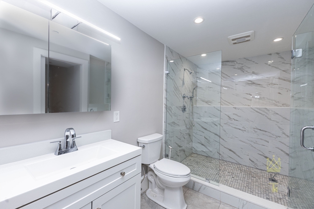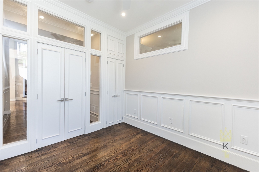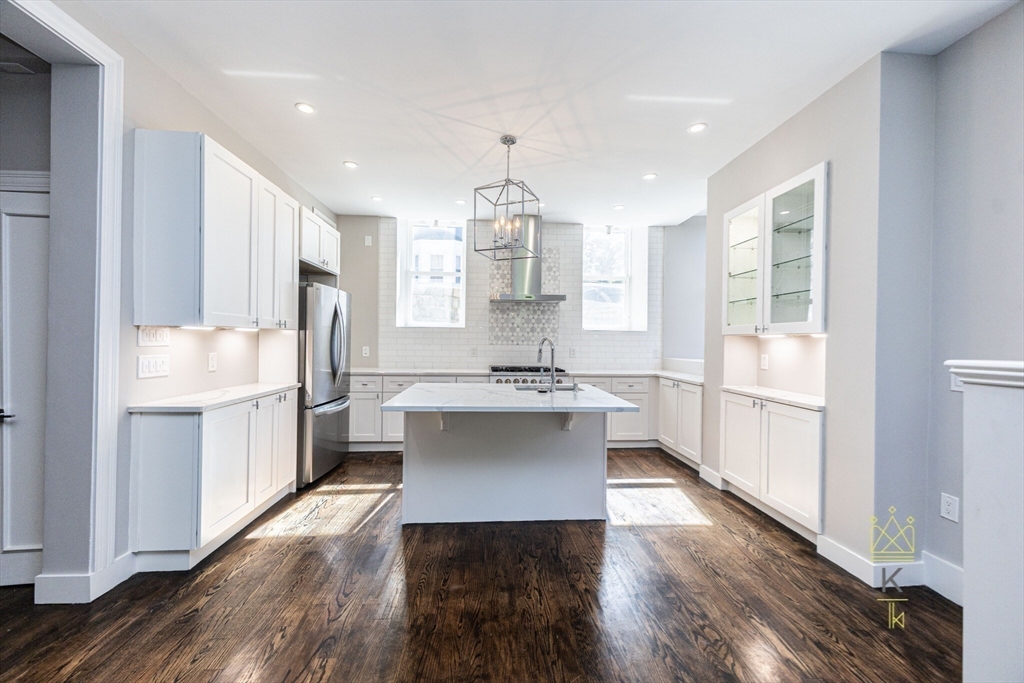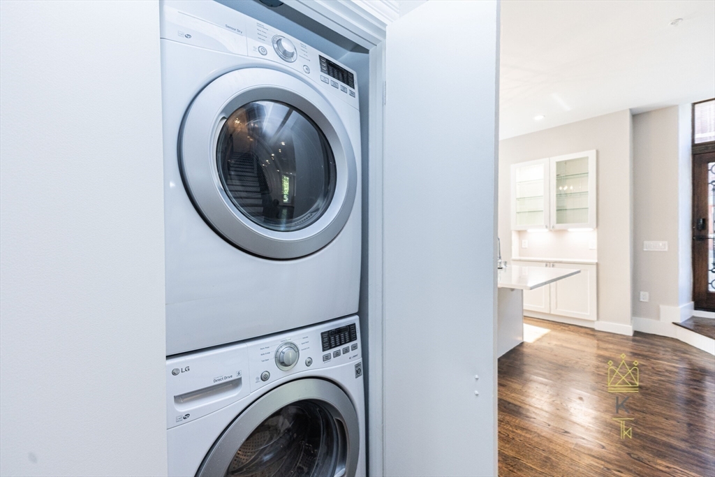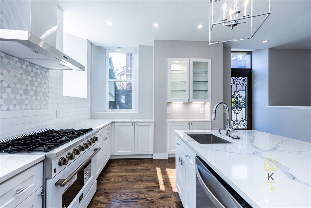 Welcome to The Residences at Regent, where timeless elegance meets modern luxury! Stunning 3.5 bed | 3 bath multi-level with modern upgrades and historic charmFeaturing rich hardwood floors, high ceilings, and custom woodwork throughout along with a welcoming elegant staircase and unique glass floor feature overlooking the lower level. The spacious chef’s kitchen has sleek white cabinetry, stainless steel appliances, a large marble island with waterfall edges, and a designer tile backsplash flowing perfectly into an open-concept living and dining area. Large bedrooms, including primary suite with ample closet space and an updated en-suite bath. The bonus half-bedroom is perfect for a home office, nursery, or guest space and the lower level includes additional space that could be used as a second family room or game room that also includes a small kitchenette and additional room.This unit has laundry, central AC plus a private patio! 1 parking spot with heat/hot water included.
