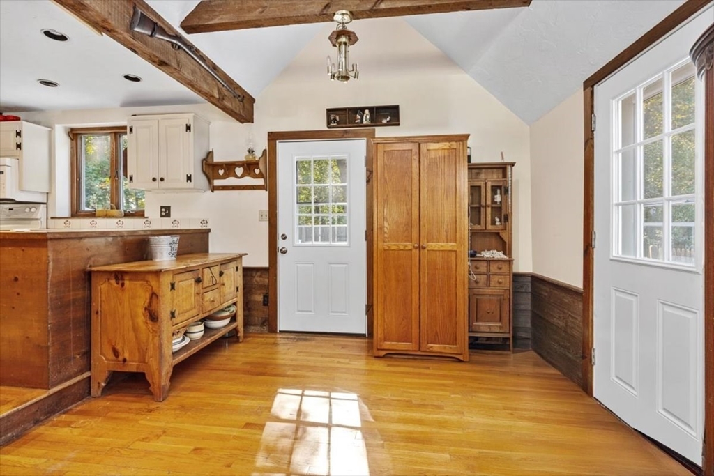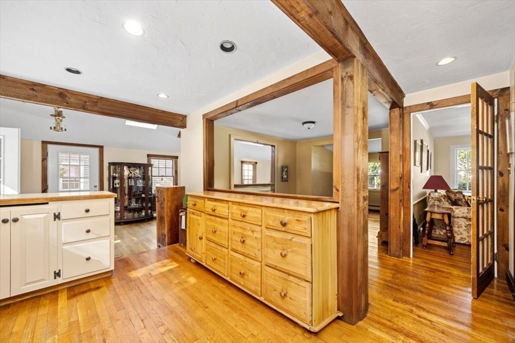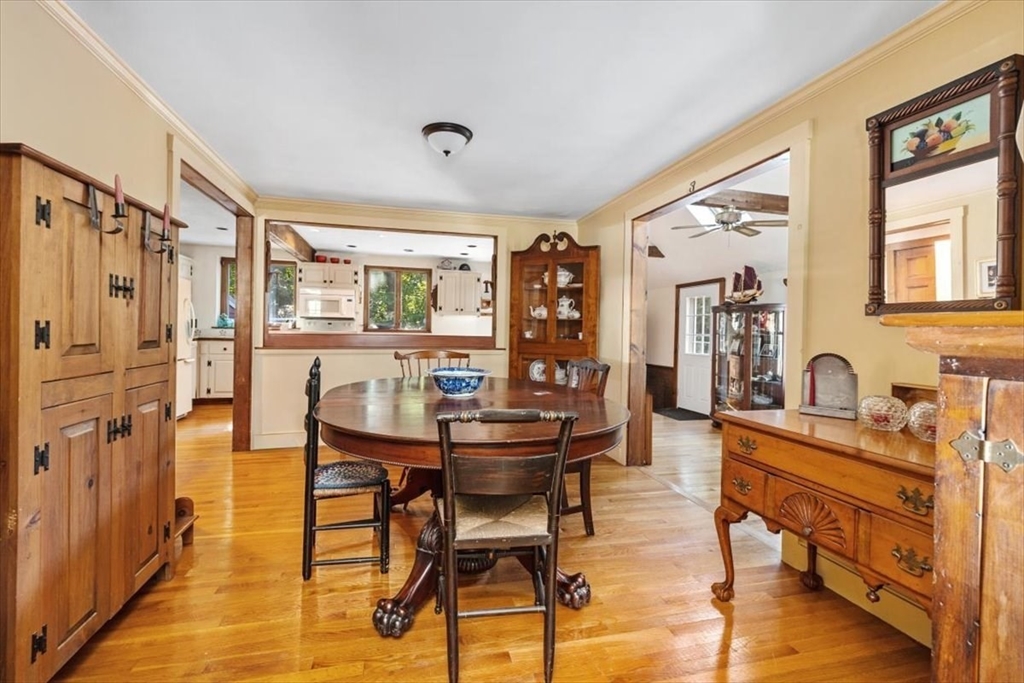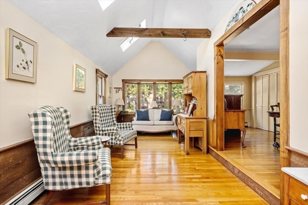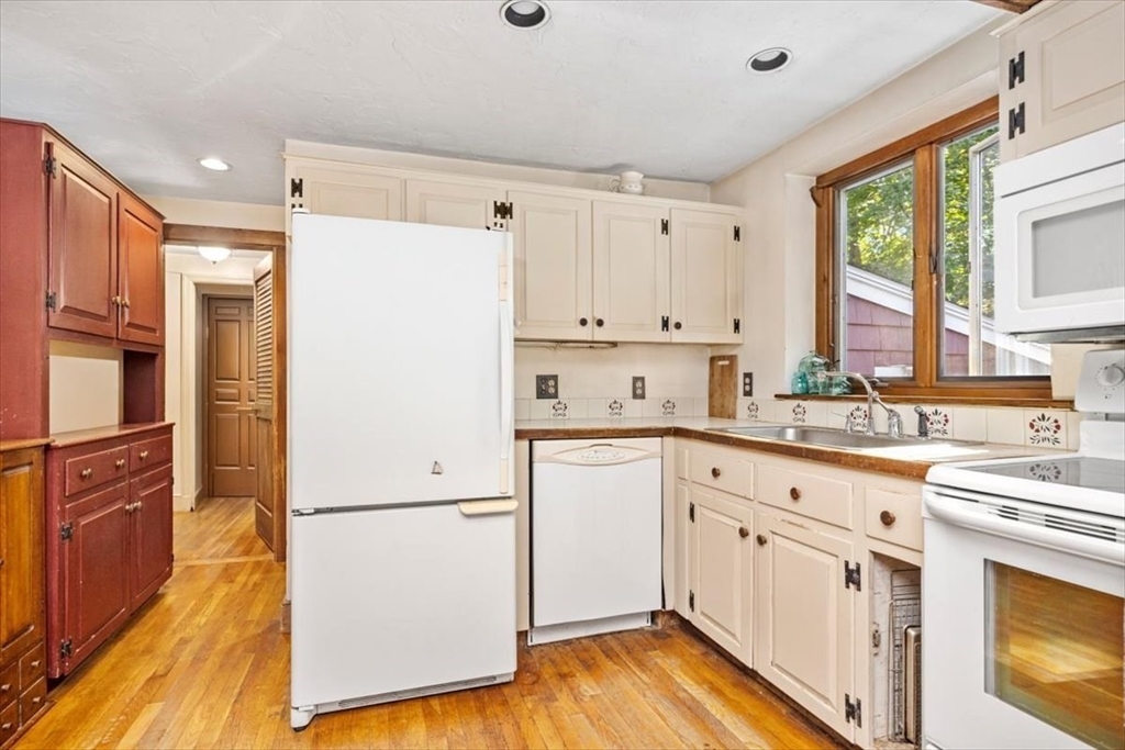 Charming Classic Cape tucked at the end of Sanborn Road, one of Hingham Center’s most sought-after locations. Lovingly cared for by current owners for many years, this 3-bedroom residence offers warmth, character, and versatile living spaces. The first floor features a spacious fireplaced living room with built-ins, dining room, and bright family room with built-ins, skylights, and cathedral ceiling. 2 bedrooms are conveniently located on the main level, with a third bedroom upstairs. Enjoy the peaceful setting just steps from the Hingham Recreation fields, new playground, local coffee shop, Hingham High School, and downtown. Commuters will love the proximity—just a 5-minute ride to the Commuter Rail and Hingham Shipyard for the Commuter Boat. A rare opportunity to own a well maintained home in a premier in-town location where properties seldom become available. New septic is Buyer's responsibility. 3 bedroom plan in progress. Property presented as-is. Needs updating. Newer boiler.