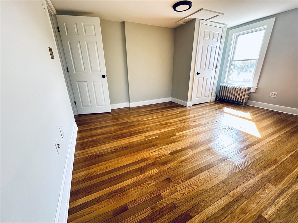 Move right in to this renovated 2 bedroom, 1 bath located on the second and third floor of a multi unit building. The main level features an updated kitchen with white cabinets, and brand new granite countertops. Hardwood floors have just been refinished and the whole unit has been repainted. On the main level you will find a white, tiled full bathroom with extra large shower head. The living room, which is light and bright and features hardwood floors and a storage closet. Moving upstairs you will find two bedrooms, each with its own closet. Laundry is located in the basement, but must be accessed from the rear of the building. Off street parking is available for up to two vehicles in the common parking lot behind the building. Utilities are not included. Excellent credit required and pets considered. No smoking on the property.