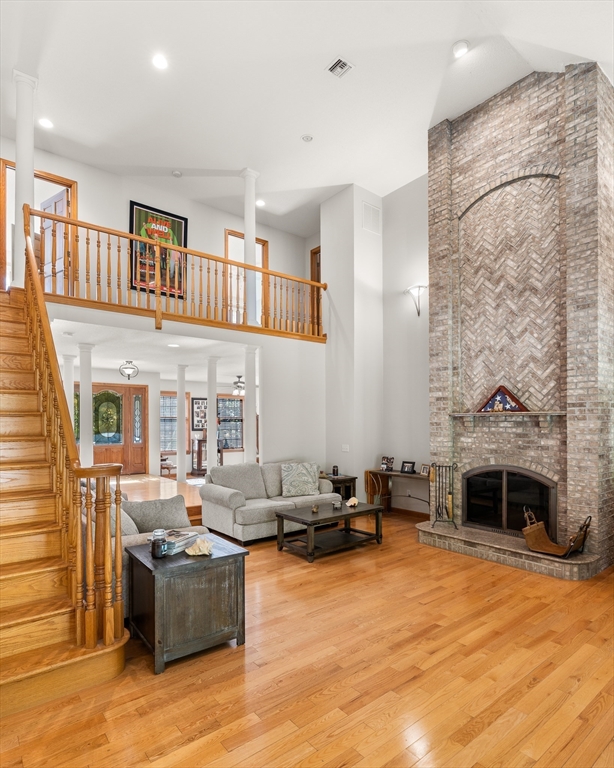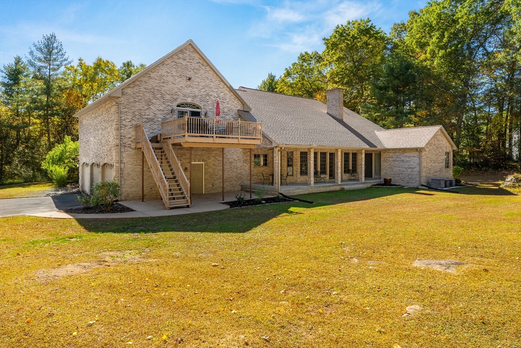 A TIMELESS CLASSIC is this stately property nestled on 10 tranquil acres offering modern updates and spacious living. The bright, airy living room showcases a stone fireplace, vaulted ceiling, ideal for both relaxing and entertaining. The kitchen features ample cabinetry and countertop space, and breakfast bar. A formal dining room and an adjacent sitting room offer gleaming hardwood. The first-floor primary suite serves as a private retreat with an ensuite bathroom, walk-in shower, jetted tub, double vanity, a large bedroom, and a private office. The residence includes multiple bedrooms and bathrooms for comfort and privacy. The balcony loft has a built-in wet bar perfect for entertaining. The massive great room, with full bathroom and walk-in closet, is roughed for conversion into an accessory apartment, providing versatile living options. Highlights include a heated oversized 3-car garage with 11’ ceilings. Conveniently located near Great Horse, MGM, and Bradley International.