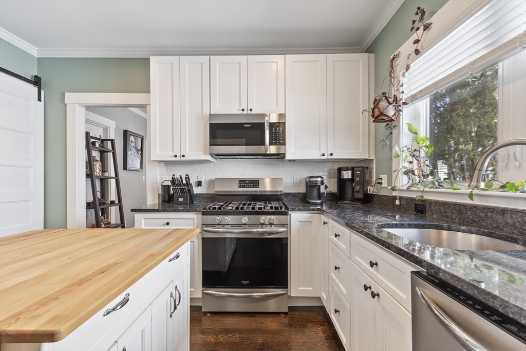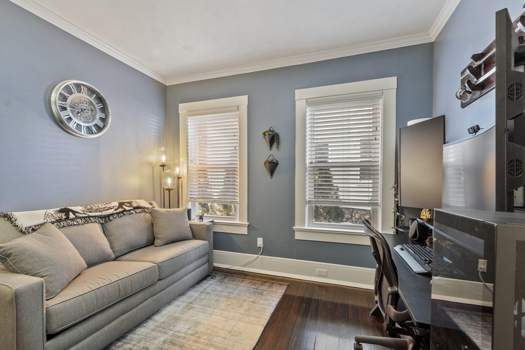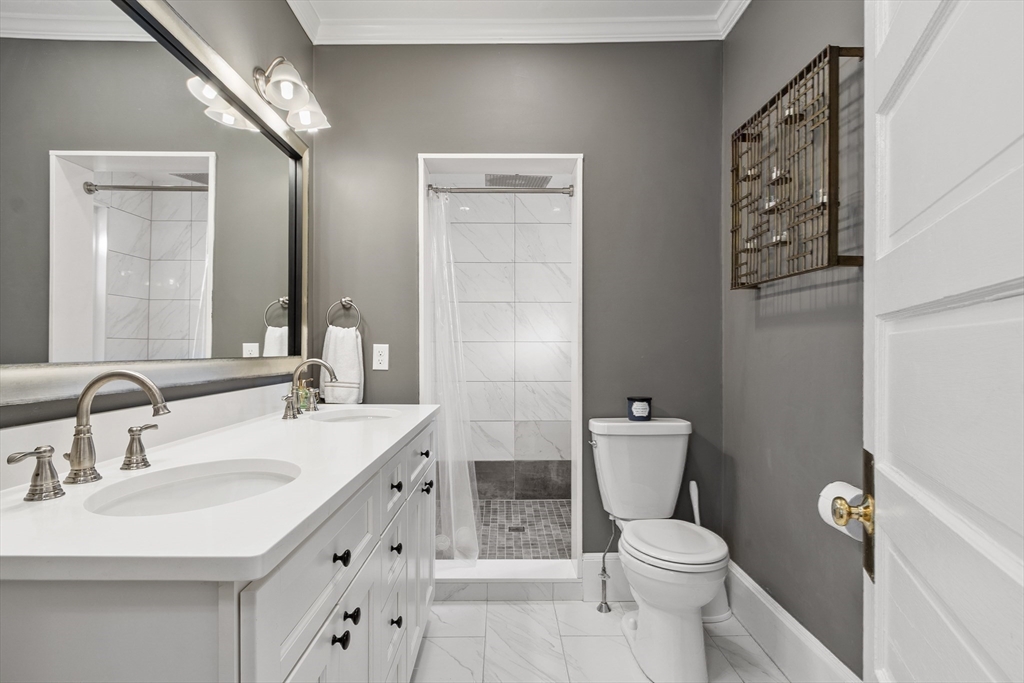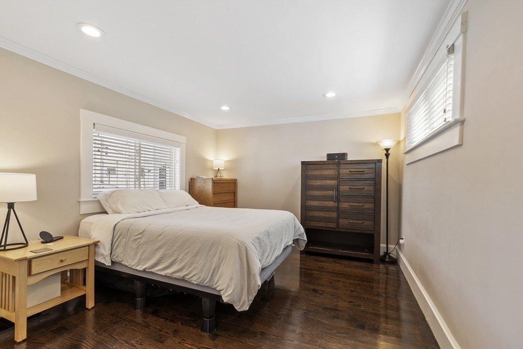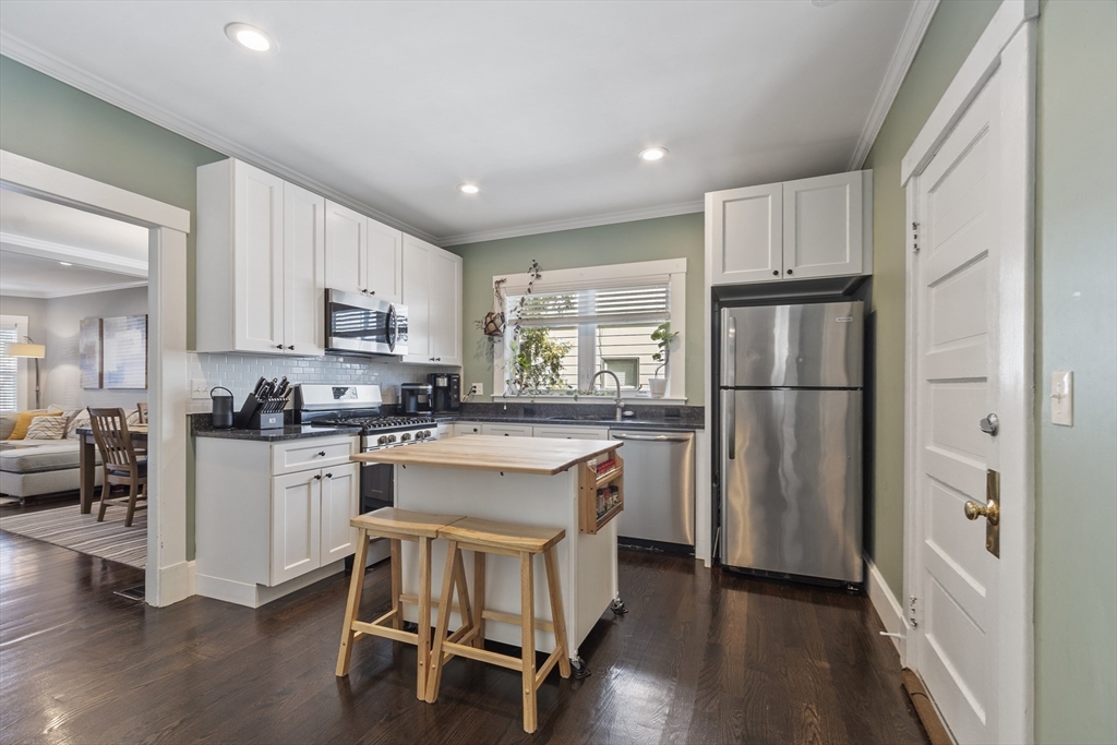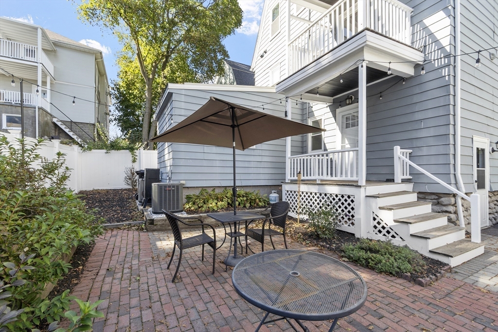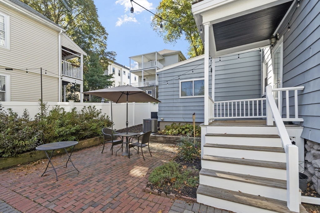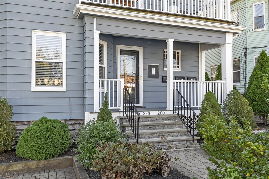 Welcome to 276 Belmont Street, a beautifully renovated 2-bedroom, 2-bath condo at the crossroads of Watertown, Belmont, and Cambridge. Just minutes from Harvard Square, Arsenal Yards, Boston Landing, and downtown Boston, with easy access to Storrow Drive and the 73 bus line for quick transit to Harvard Square. Renovated in 2018 with many updates since, this move-in ready home blends modern comfort with classic charm. The open layout connects living and dining areas, featuring recessed lighting, crown moldings, and refinished dark-stained hardwood floors. The kitchen offers shaker cabinets, granite countertops, and stainless-steel appliances. The primary suite has double closets and a spa-like bath with a quartz double vanity and oversized rain shower. Additional highlights include in-unit laundry hookups, gas heat and central air, updated electrical, Trex front porch, new patios, private basement storage, driveway parking, and nearby cafés and restaurants. Turn-key and ready to move in
