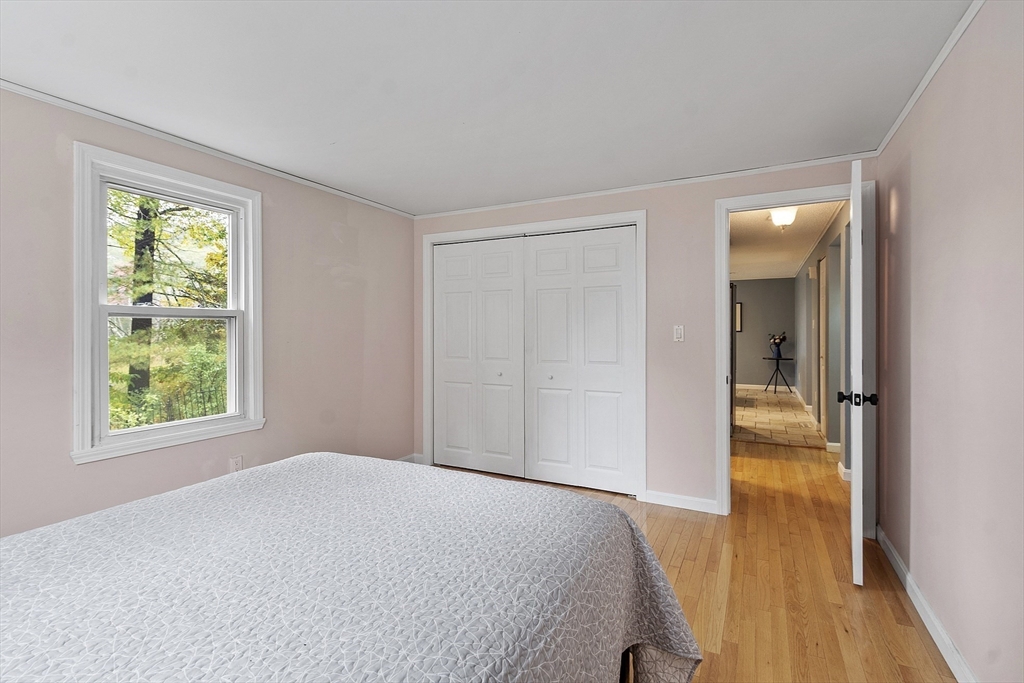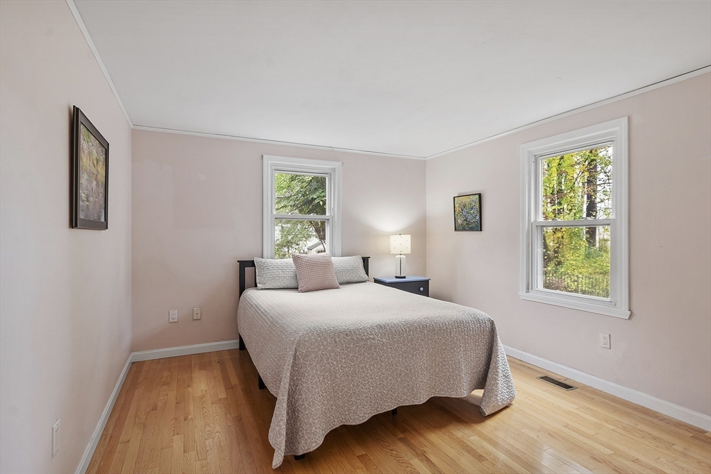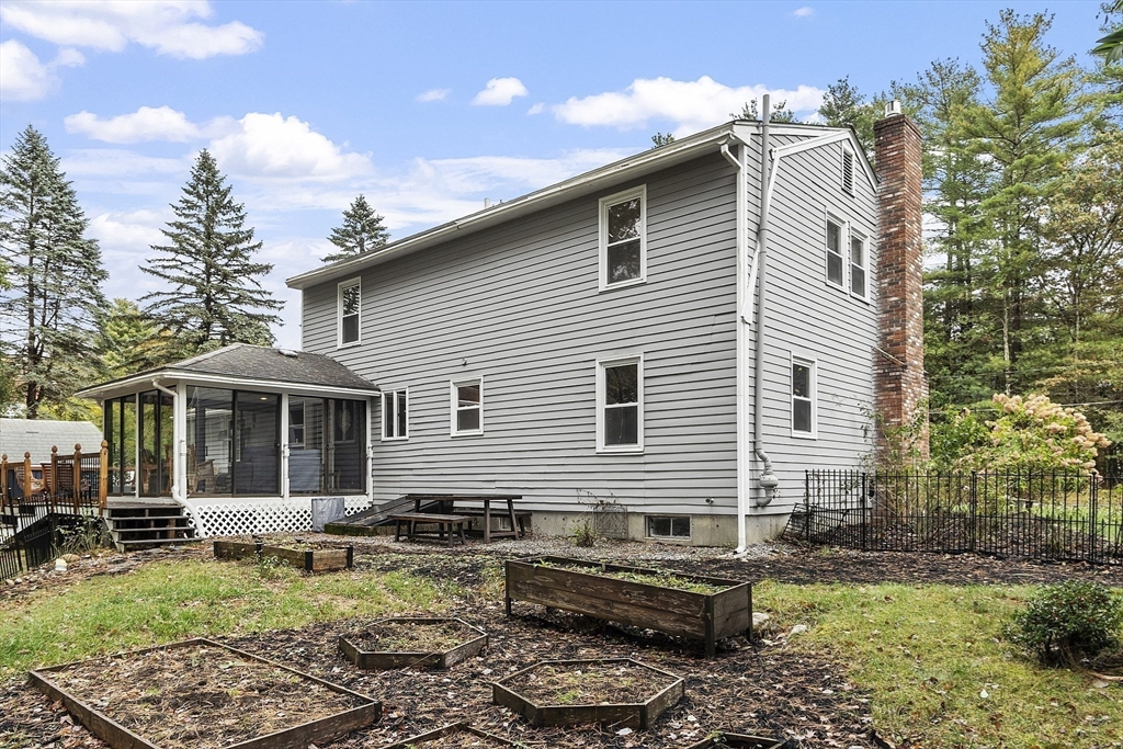 Welcome to this inviting South Westford gem, perfectly situated in a quiet neighborhood with sidewalk & no through traffic. Resting on a level two-acre property with a fenced back yard w/ wooded border, the setting provides both beauty & privacy. Inside, hardwood floors, abundant natural light, & thoughtful updates shine. The heart of the home features a kitchen with stainless steel appliances, induction cooking, granite counters, & crisp white cabinetry. Gather in the family room by the gas fireplace, or unwind in the heated sunroom overlooking nature. Upstairs, the spacious main suite boasts a walk-in closet, office nook, & full bath. With updated bathrooms, a flexible first-floor bedroom, a finished lower level, & energy-saving solar panels, this home offers comfort & efficiency. Recent upgrades include roof, furnace, garage doors, & water heater which adds peace of mind. This home is move-in ready close to schools, shopping, & Route 110 convenience! OFFERS DUE OCT 21, BY 12PM.