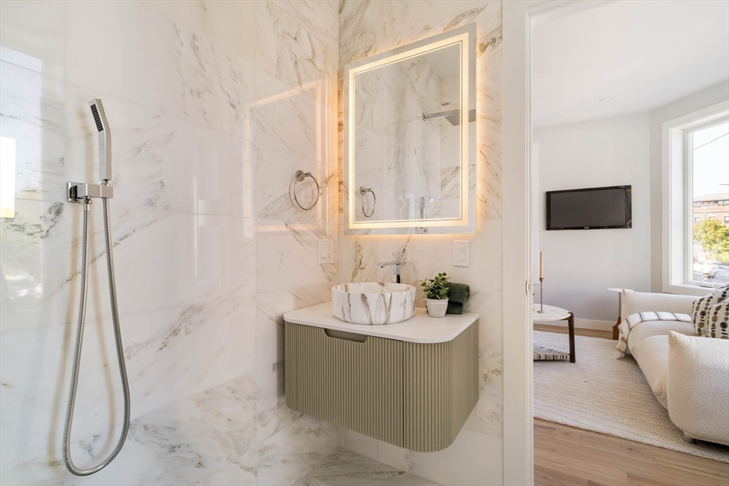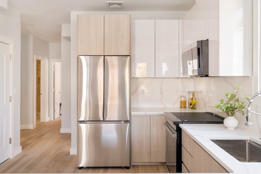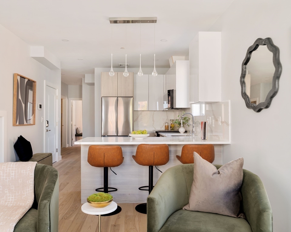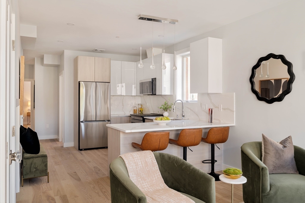 Welcome to 181 Maverick Street, Unit 2 – East Boston’s premier new construction condo in the heart of Jeffries Point! This stunning 2 bed, 2 bath home with a dedicated office is part of a boutique 4-unit corner building, thoughtfully built from the ground up. Situated on the highly visible corner of Maverick and Orleans Street, you're just steps from vibrant Maverick Square, the MBTA Blue Line, and Boston’s scenic waterfront. Unit 2 boasts an open-concept floor plan filled with natural light, sleek modern finishes, and generous ceiling height. The chef's kitchen features sleek cabinetry, quartz countertops, and high-end stainless steel appliances, flowing seamlessly into a spacious living area – perfect for entertaining. The primary suite offers a spa-like bath and ample closet space, while the additional bedroom and office provide versatility for guests or remote work. Enjoy the comfort of energy-efficient systems, central A/C, in-unit laundry, and hardwood floors throughout.