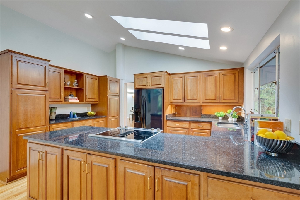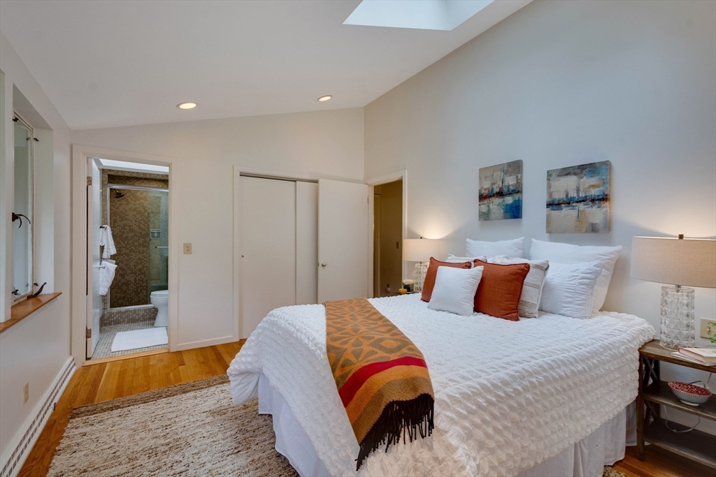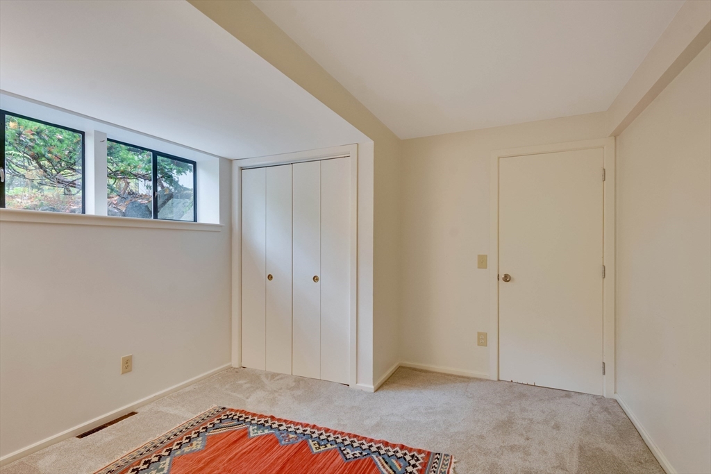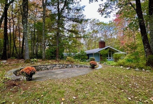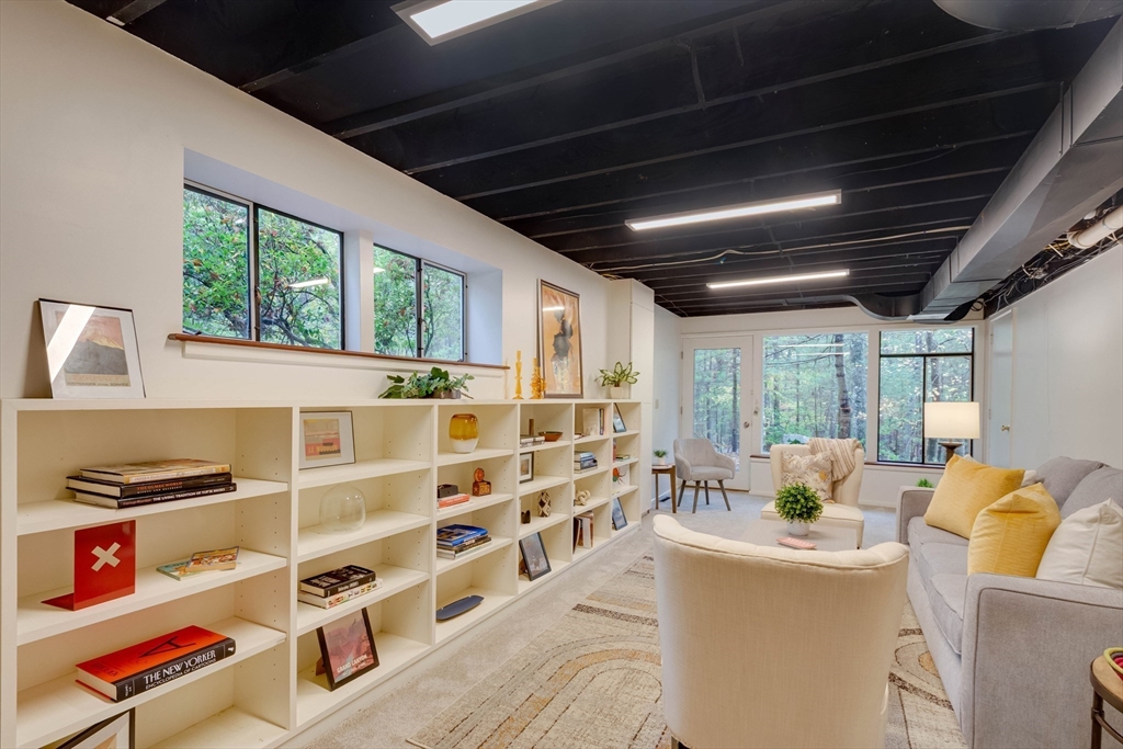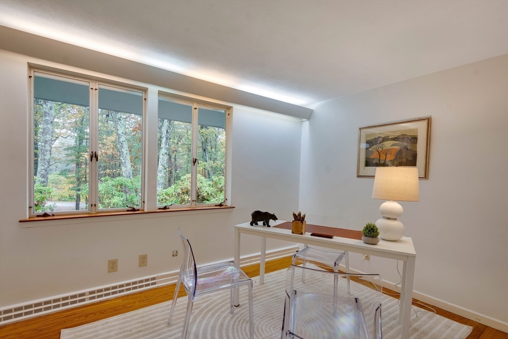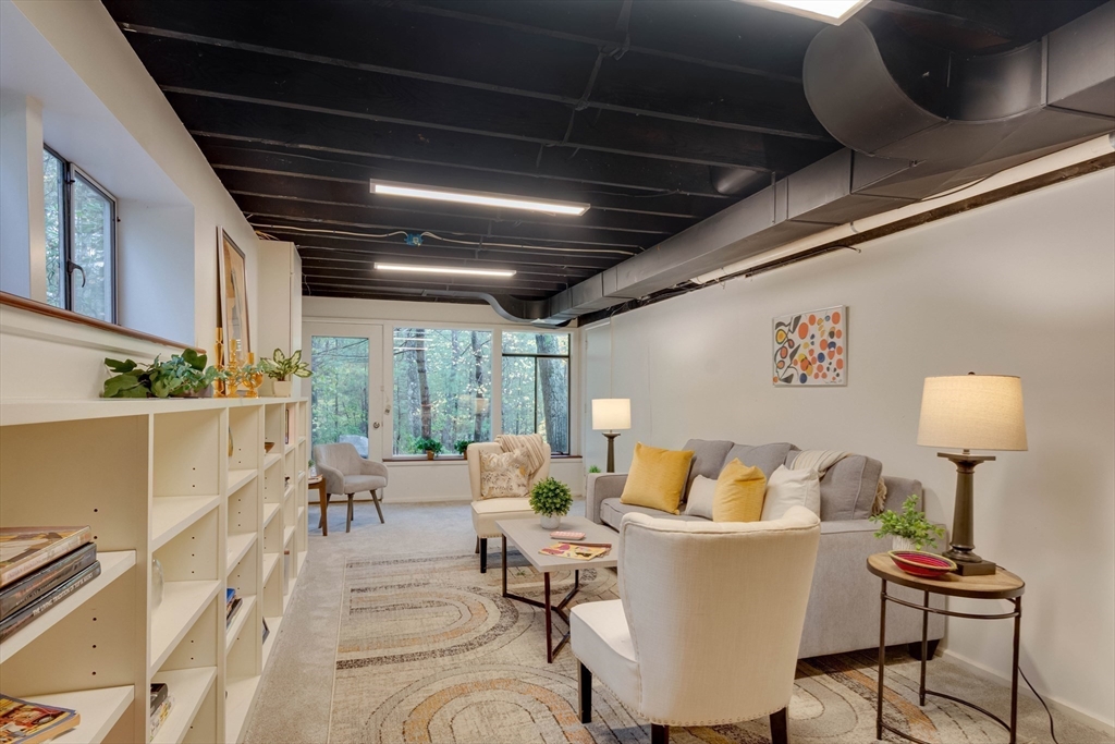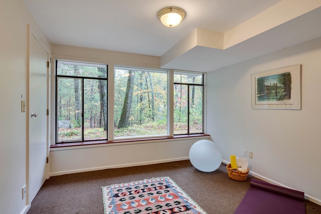 Located in the historic Brown's Wood neighborhood and designed by architect Stanley Meyers, this striking Mid-Century Modern residence has soaring cathedral ceilings, walls of glass, and an open floorplan. The main level offers effortless single-floor living, while the lower level with separate entrance provides flexible space for a private office, fitness area, or au pair opportunity. A floor-to-ceiling brick fireplace anchors the living area for cozy winter evenings, while a three-season sunroom/porch and adjoining deck invite relaxed outdoor living. Surrounded by lush perennial gardens, stone paths through the woodlands, and a private patio, this home offers an exceptional connection to nature. Additional highlights include a two-car garage and forced air heating by gas. Deeded access to the nearby coveted Valley Pond Swim and Boat Club enhances the community experience. All within easy reach of Lincoln’s town center, expansive network of trails, as well as major commuting routes.