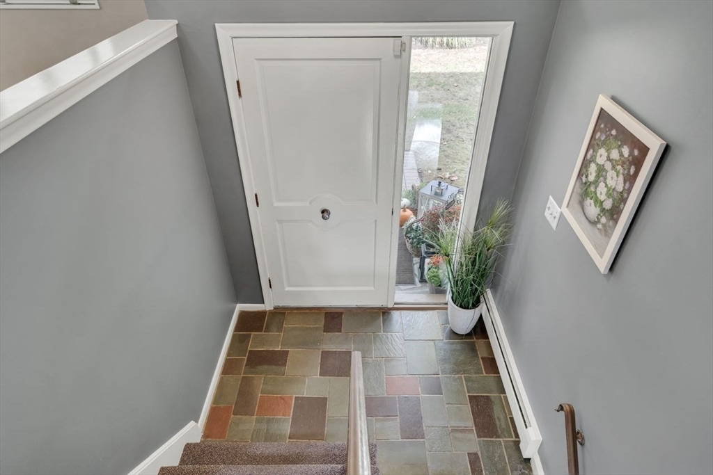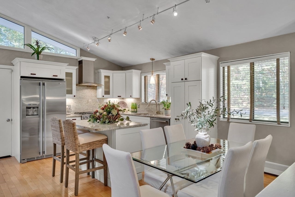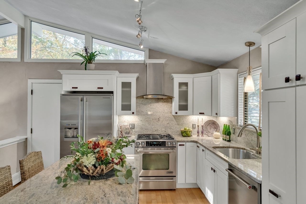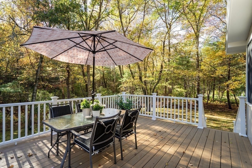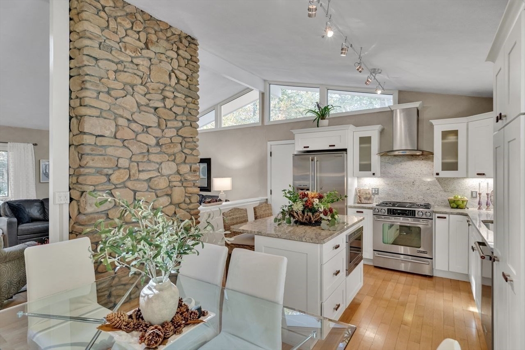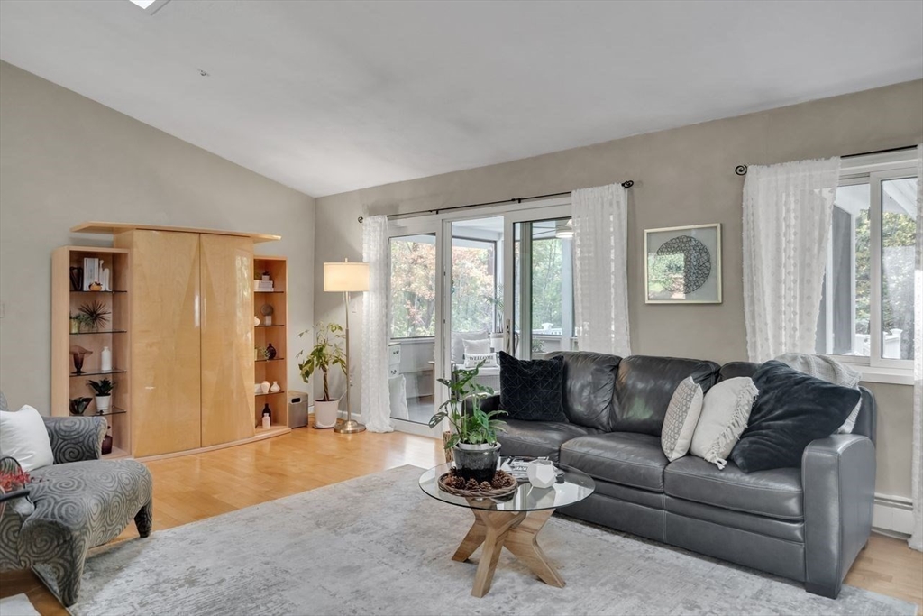 Welcome to 6 Westward Circle, a stunning home in one of North Reading’s most sought-after neighborhoods, located at the back entrance of Hood Elementary School. This meticulously maintained property is perfect for families and entertaining. Inside, you'll find an updated kitchen with a charming dining area, and a spacious living room with a cathedral ceiling and a floor-to-ceiling river rock wood-burning fireplace. French doors lead to a large screened-in porch, ideal for outdoor gatherings. Outside, a newer attached porch overlooks 1.25 acres of landscaped yard bordering conservation land—great for barbecues and sunset dinners. The main level features a spacious primary bedroom with a spa-like ensuite, plus three additional bedrooms and two full updated bathrooms. The huge family room with another fireplace and walk-out slider adds space and convenience. Recent updates include a Brand new Septic tank, heating, and electrical. More than a house, It's a place where memories are made.