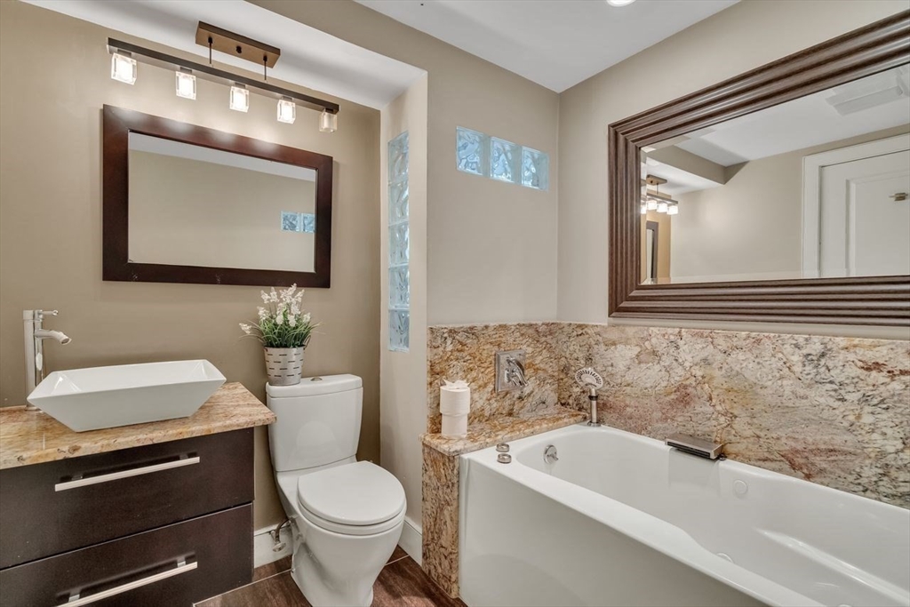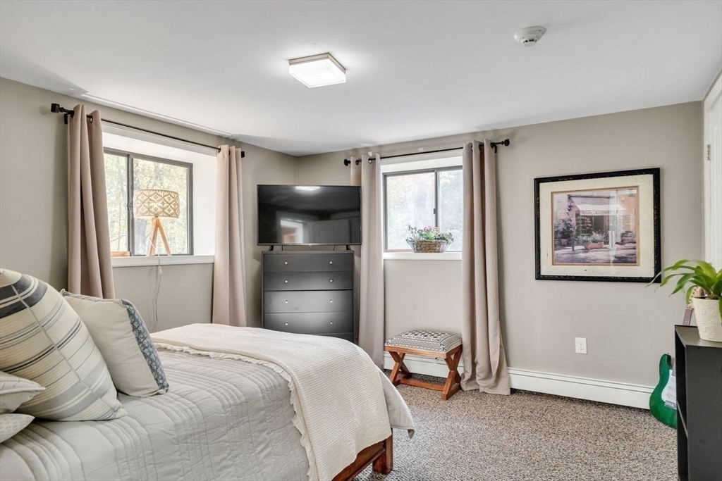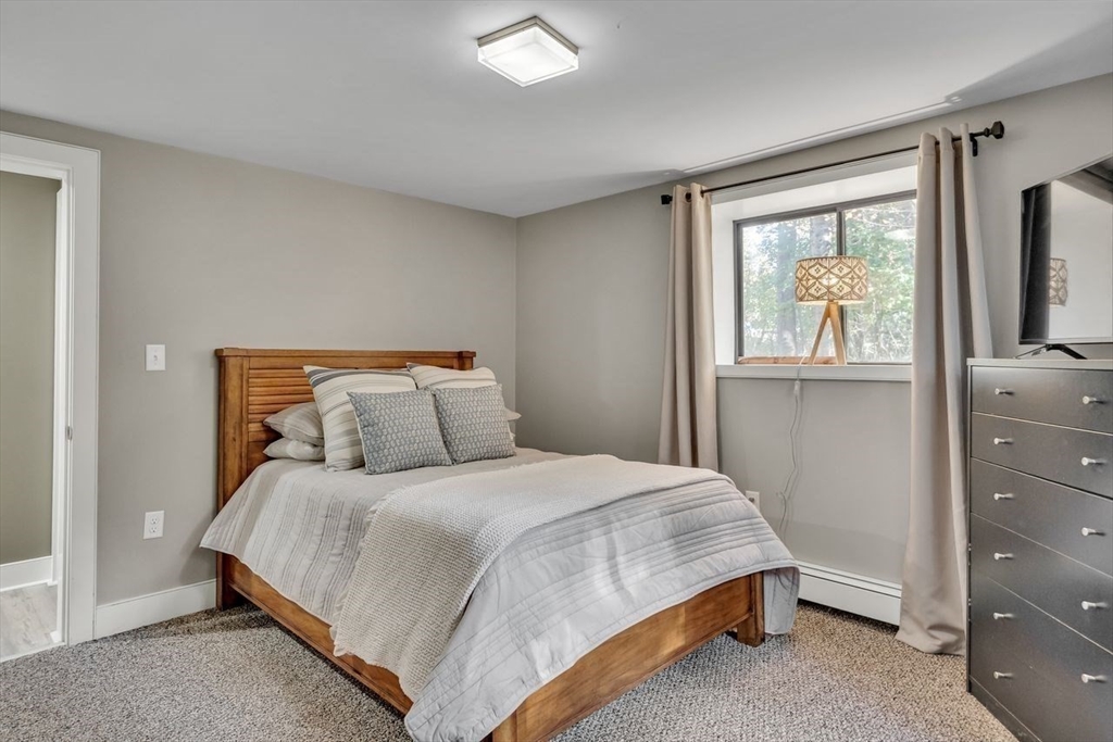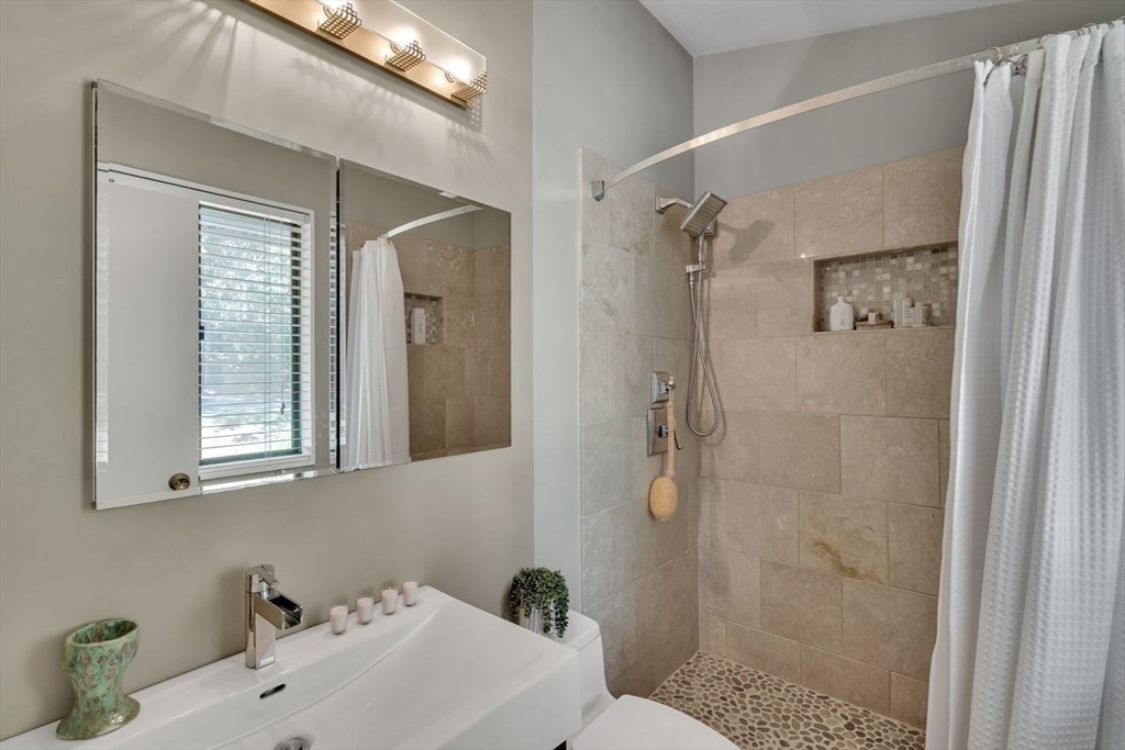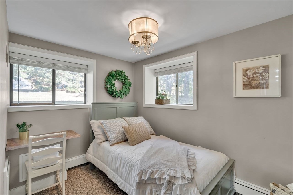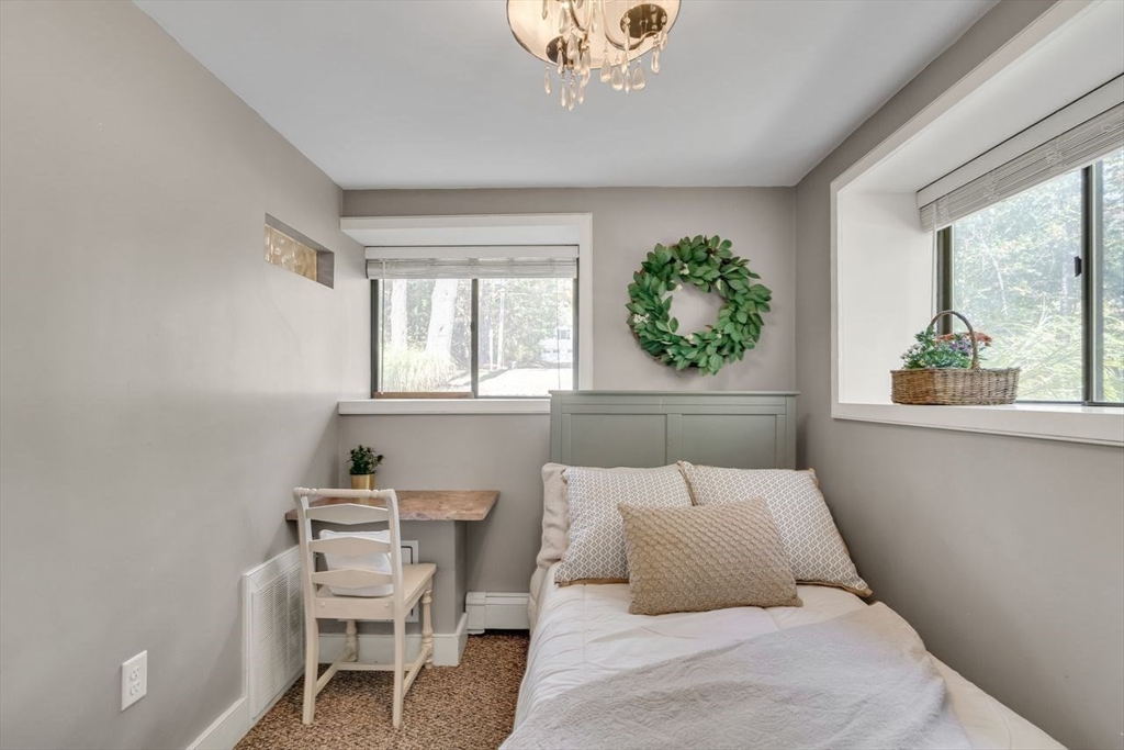 Welcome to 6 Westward Circle, a stunning home in one of North Reading’s most sought-after neighborhoods, located at the back entrance of Hood Elementary School. This meticulously maintained property is perfect for families and entertaining. Inside, you'll find an updated kitchen with a charming dining area, and a spacious living room with a cathedral ceiling and a floor-to-ceiling river rock wood-burning fireplace. French doors lead to a large screened-in porch, ideal for outdoor gatherings. Outside, a newer attached porch overlooks 1.25 acres of landscaped yard bordering conservation land—great for barbecues and sunset dinners. The main level features a spacious primary bedroom with a spa-like ensuite, plus three additional bedrooms and two full updated bathrooms. The huge family room with another fireplace and walk-out slider adds space and convenience. Recent updates include a Brand new Septic tank, heating, and electrical. More than a house, It's a place where memories are made.