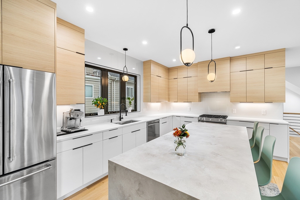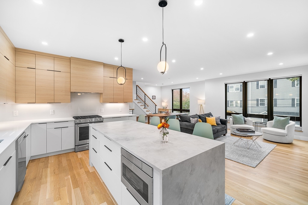 Experience the perfect blend of style and functionality in this 2023 new construction townhome on the Newton line, nestled in a highly sought-after neighborhood. Enjoy cooking and entertaining in the sleek custom kitchen featuring quartz countertops, stainless steel appliances, and a spacious center island that flows into the bright dining area and fireplaced living room. The serene primary suite offers a spa-like tiled shower and a custom walk-in closet. Two more generous bedrooms and a full guest bath complete the upper level. The first floor includes a versatile bonus room ideal for an office or guest space, another full bath, and direct access to a private basement for extra storage. Additional highlights include hardwood floors, premium finishes throughout, two-zone gas heat and central air, a one-car garage with workspace, a private deck, a patio, and a beautifully sized yard—everything you need for comfortable, modern living.