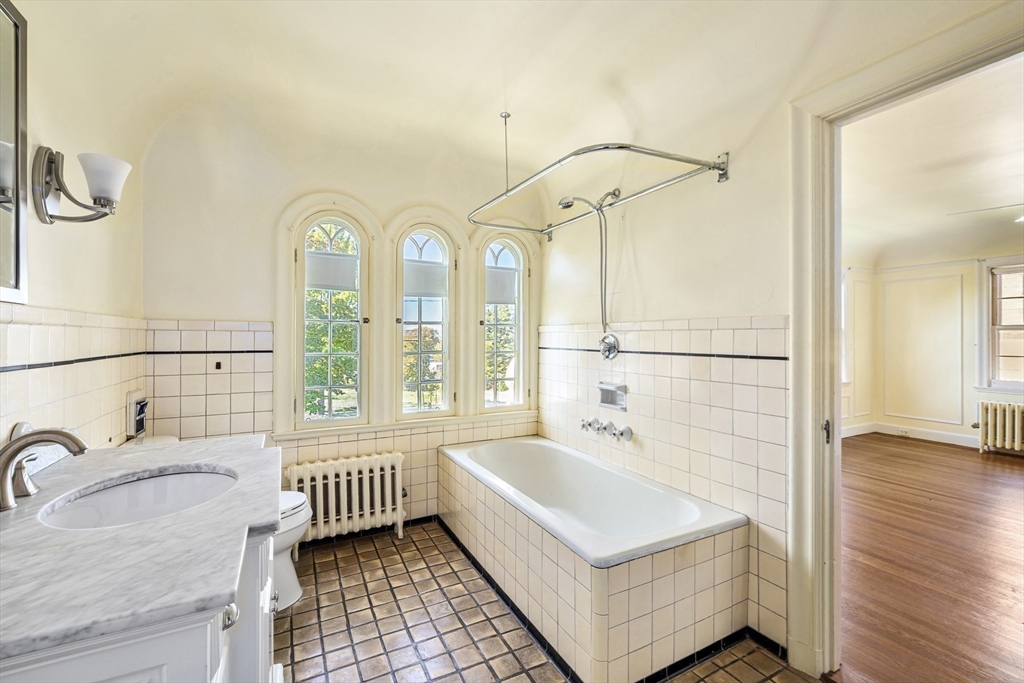 Set in the heart of the Highlands, one of Fall River’s most desirable neighborhoods, this Mediterranean Revival home is an architectural gem. Surrounded by other grand residences, the property is distinguished by its classic stucco exterior, terra cotta tile roof, and graceful setback, all framed by mature plantings that offer both privacy and presence. Inside, the home impresses with a custom interior rich in detail: floor-to-ceiling arched windows, curved ceilings, dark hardwood floors, built-in bookcases, and a tiled sunroom complete with decorative fountain. The spacious first-floor layout is open and airy, ideal for both formal entertaining and everyday living. Offering 5 bedrooms and 3.5 baths, this home also features a grand entry foyer, attached two-car garage, and a rear screened-in patio. With timeless design and significant square footage, this is a rare opportunity to own a prominent property with room to further personalize and elevate. Open House Sat 10/18 11-12:30pm