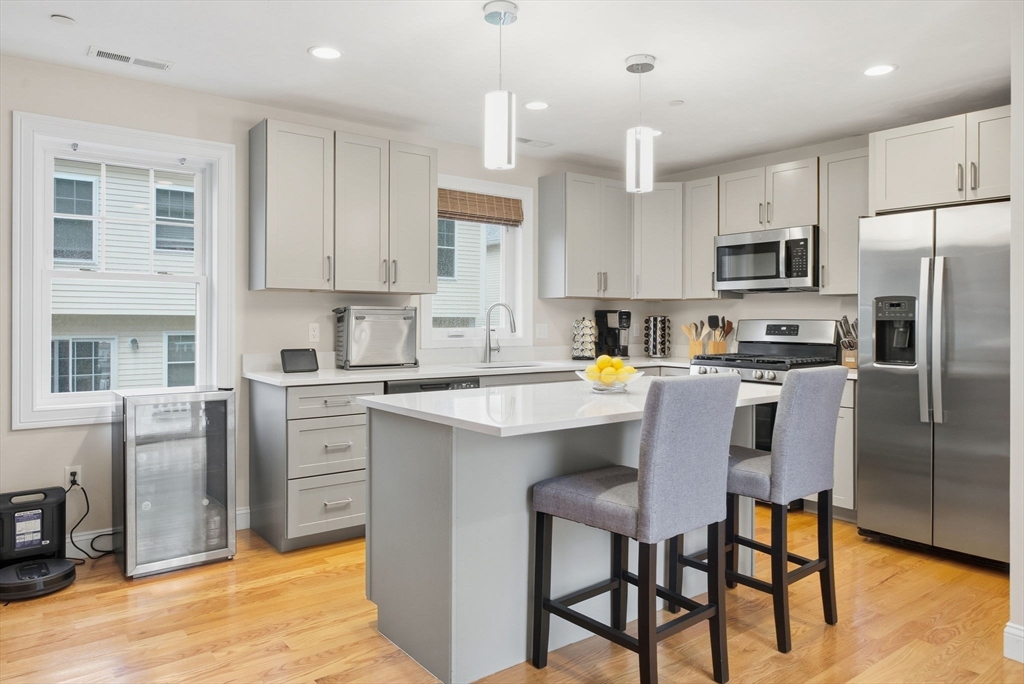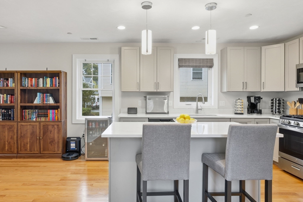 Beautiful 2023 build, 2-level END unit townhome offering an open-concept layout perfect for modern living. The spacious main level with many options for your lifestyle & plenty of space for an office area that flows seamlessly into a stylish kitchen featuring quartz countertops, stainless steel appliances, an island & a slider leading to a private composite deck for outdoor enjoyment. Gleaming hardwood floors, recessed lighting, and thoughtful finishes highlight the main level, which also includes a half bath and laundry area. Upstairs, find two comfortable bedrooms and a full bath with quartz counters and Kohler fixtures. Enjoy energy-efficient living with a Navien tankless water heater, gas heat, and an American Standard HVAC system. Prime location, near the town library and Livingston Park—home to farmer’s markets, food trucks, and local events. Conveniently close to restaurants, entertainment, and shopping, with easy access to both I-93 and I-95 for a quick commute to Boston or NH!