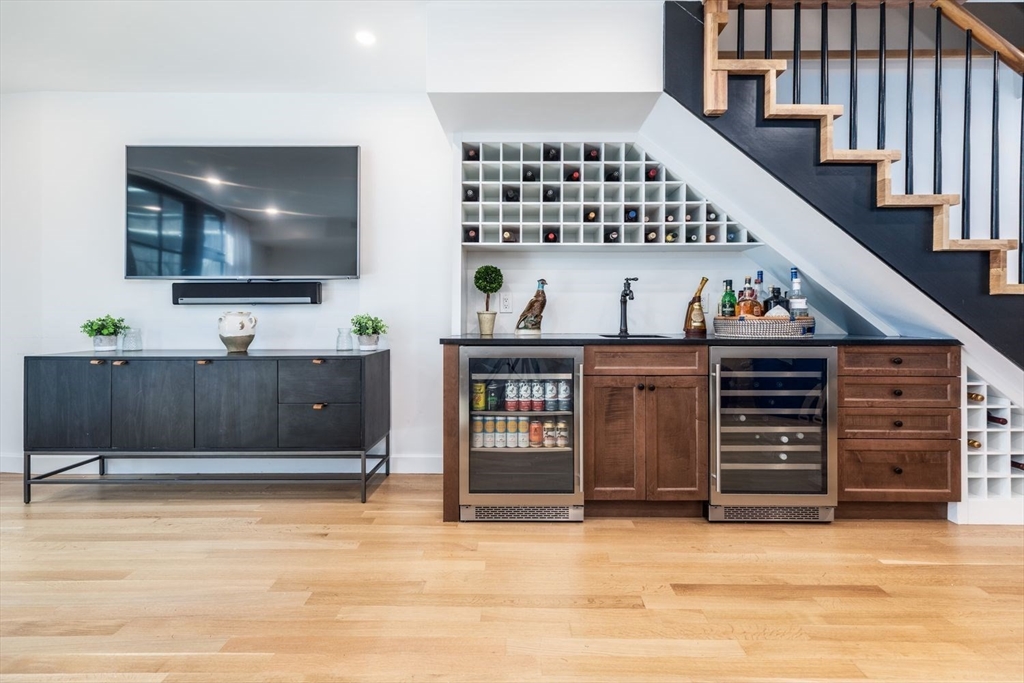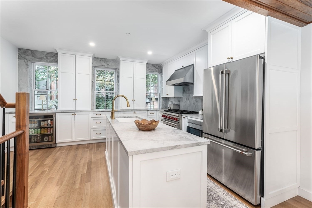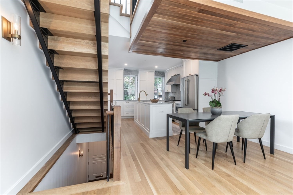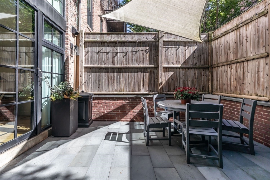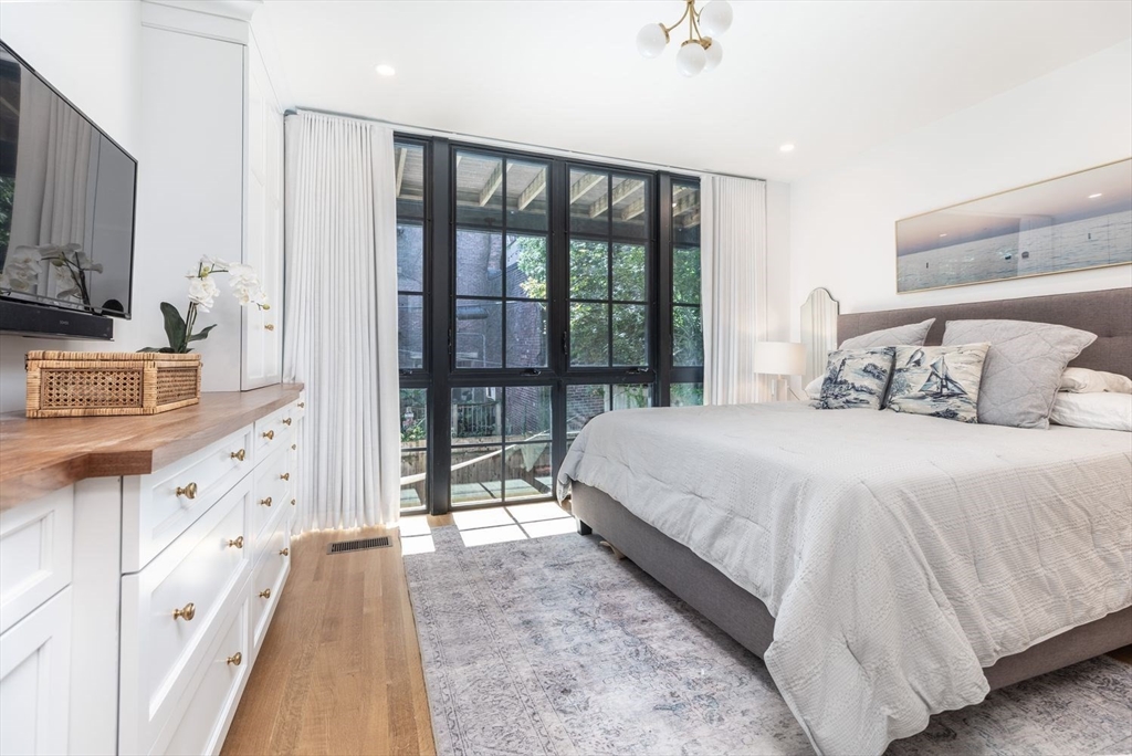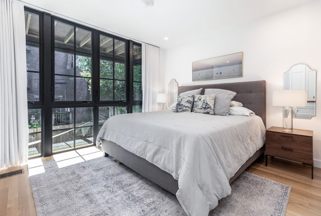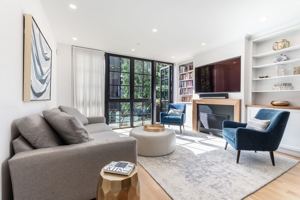 In the South End's Golden Triangle where eveyone wants to be! This single family gem designed by Adam Grassi was custom built by the current owners & is flourishing w/high-end finishes. Offering 3 outdoor spaces, 3 bedrooms & 2 living areas, this bespoke property is highlighted by a custom floor to ceiling South facing glass window and door system allowing for an abundance of light the most of the day. Marvelous steel stringer staircase from top to bottom is another centerpiece. Custom chef’s kitchen w/3 windows overlooking quiet one-way Lawrence Street is outfitted with gas Wolf oven/quartzite counters. Spacious dining/entertaining style living areas w/walnut mantled gas fireplace/built-ins feeds to rear deck perfect for al fresco dining. King-sized primary w/gorgeous built-ins w/walk-in closet/en-suite bath/double sinks/step-in shower/heated floors. 2 full sized guest beds are serviced by a tasteful guest bath. Family room w/wet bar leads to bluestone patio. Only 500FT to garage pkg.