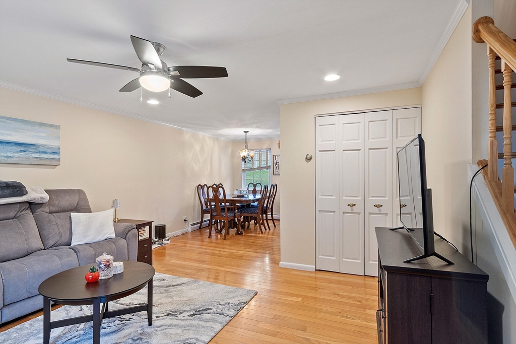 Village Green Condos —where comfort and convenience come together! This beautifully maintained home offers easy living with a monthly condo fee that covers gas heat, hot water, cooking, water/sewer master insurance, exterior maintenance, snow removal, lawn care—making budgeting simple & stress-free. Inside, you’ll find a kitchen with granite countertops, a tile backsplash and crown molding that continues through the dining area and living room for a touch of elegance. Neutral décor makes it move-in ready. Upstairs are 2 generous bedrooms, offering plenty of space. Lower-level laundry room includes a workbench and sink, adding practicality to the home. Pets are welcome and town trash and recycling pickups are included. Enjoy an ideal location close to Merrimack College, restaurants, shopping and public transportation, schools are within walking distance and there's easy highway access. Affordable, low-maintenance living at its best! Open Houses Sat,10/18 11-12:30. Sun, 10/19 2-3pm.