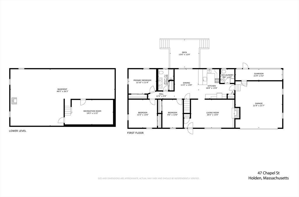 Welcome to 47 Chapel Street in the sought-after town of Holden. This beautifully maintained and updated ranch offers over 1,650 sq ft of living space, ideal for raising a family or anyone looking for the ease of single-level living with bedrooms, laundry, and main living areas all on one floor. The home features three bedrooms, one and a half baths, and stunning hardwood floors throughout. The open kitchen and dining area provide a warm, inviting flow perfect for everyday life or entertaining. Downstairs, the large finished basement offers flexible space for a family room, gym, office, or play area. Set on a massive 1.25-acre lot with a huge backyard, this property combines space, charm, and convenience just minutes from Worcester. Thoughtfully cared for and move-in ready, this one is not to be missed.