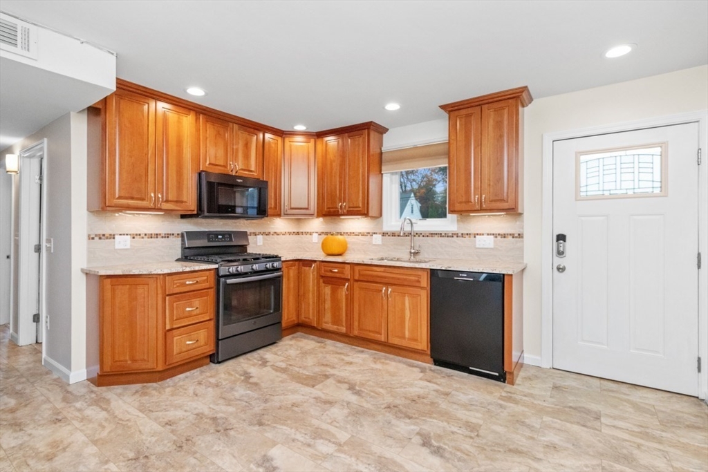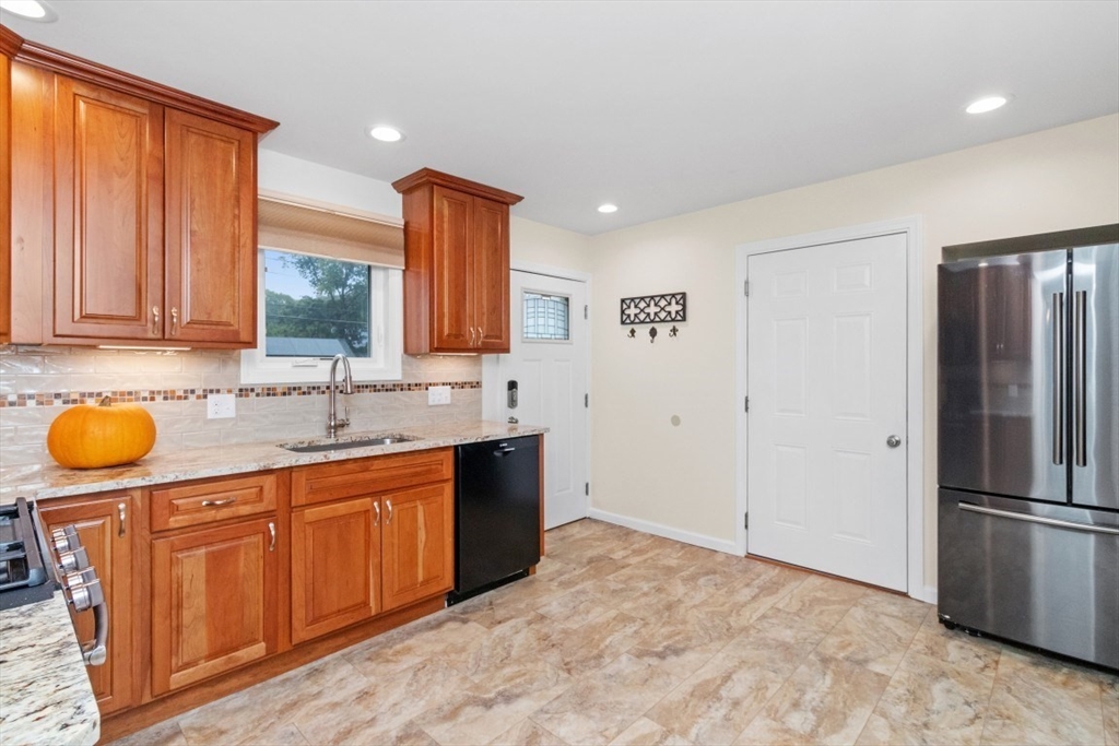 Great opportunity for buyers! This well-maintained 3-bedroom, 2-bath home offers modern updates and excellent expansion potential. The first floor features a newly renovated kitchen with granite countertops, tile backsplash, new cabinetry, and appliances including a gas range, dishwasher, refrigerator, and disposal. The updated first-floor bath includes tile flooring, a large shower, and modern fixtures. A recently installed 3-zone mini split system provides efficient heating and cooling throughout both levels. The second floor offers a spacious bedroom, full bath with washer and dryer, and a comfortable family room. There is also potential to expand over the garage or add dormers to increase living space. Enjoy the level lot with beautifully landscaped gardens and a large storage shed. Conveniently located near Route 135, Route 9, the Mass Pike, and the Commuter Rail.