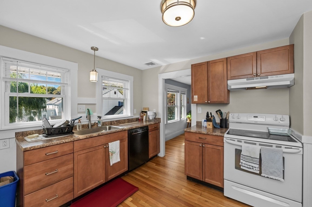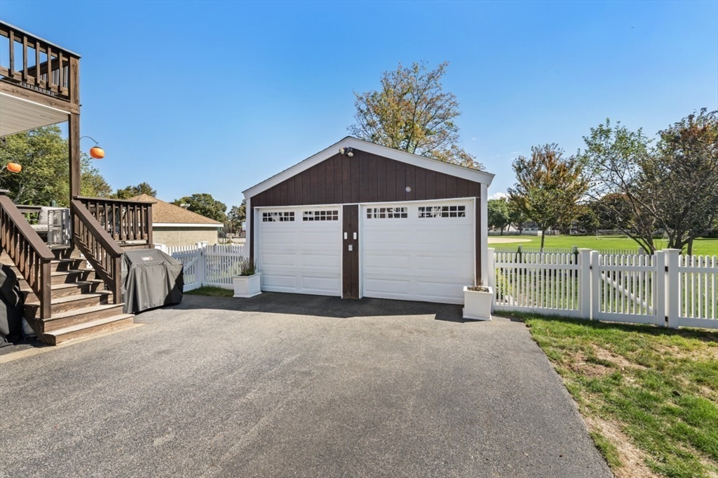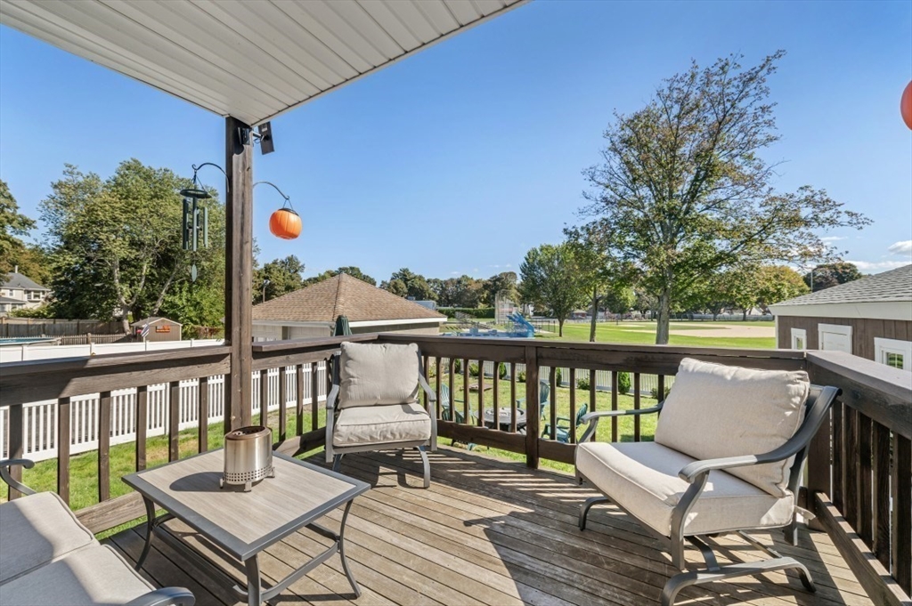 This sought-after West Side location offers a peaceful residential setting just minutes from Wakefield’s town center, with easy access to Lake Quannapowitt, local shops, and restaurants. The neighborhood is known for its classic suburban charm and convenient proximity to major highways and the commuter rail. This well-maintained multi-family home features similar layouts in both units, each offering two bedrooms, a dining room, hardwood floors, renovated pantries, and patio/decks.The owner’s unit includes a renovated kitchen with Shaker cabinets, stainless steel appliances, and granite counters-an excellent opportunity for owner-occupants or investors alike. Enjoy relaxing summer days at this beautifully landscaped property with an inviting front porch and a fenced-in yard abutting Moulton Playground. Additional highlights include a walk-up attic for storage, two laundry hookups in the basement, a two-car garage, and ample off-street parking.