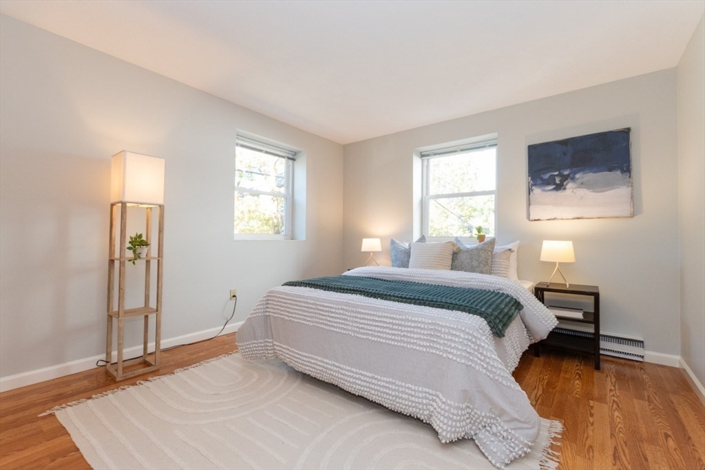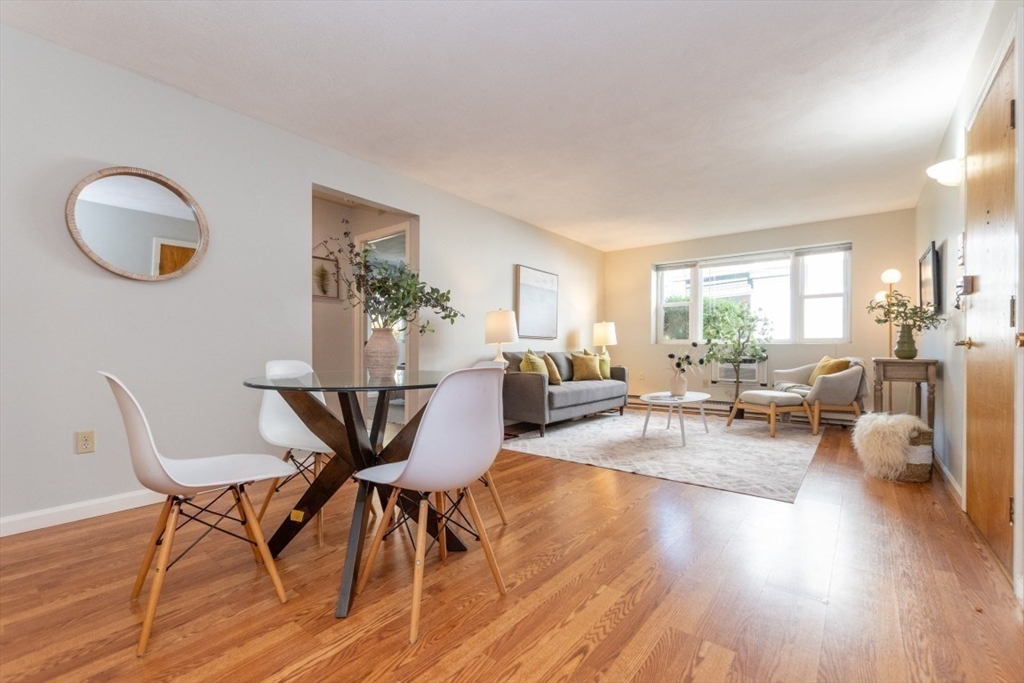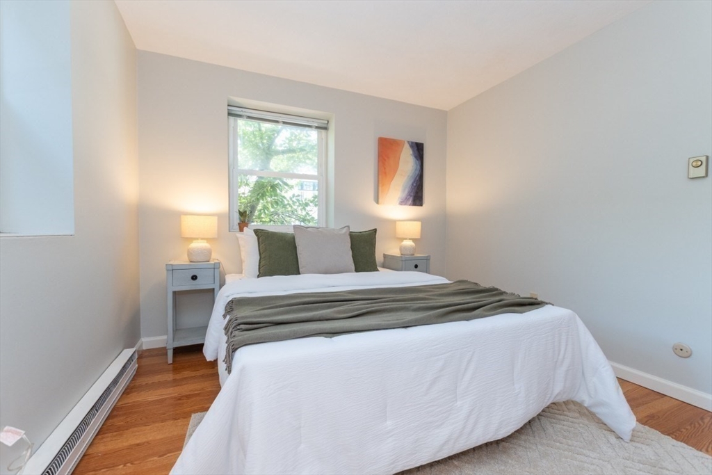 Enjoy convenient Mid Cambridge living in this sun-filled two-bedroom, one-bath condominium, perfectly located just minutes from Harvard Square, Harvard University, and near MIT. Nestled on a charming, tree-lined street, this home features a practical design for living comfort and entertaining. This turnkey unit includes an open living, dining, and kitchen with a breakfast bar. There are 2 bedrooms with large closets, and the bathroom is modernized with a tub and shower. The unit is freshly painted, and everything feels clean and welcoming. Laundry is available in the building, private storage, and one parking space are also included. This is a perfect starter home, rental, or pied-a-terre!